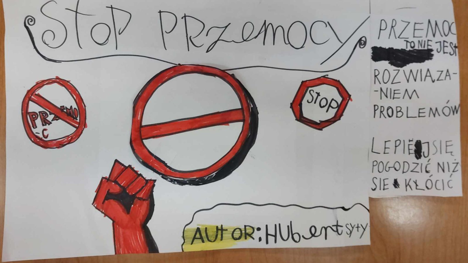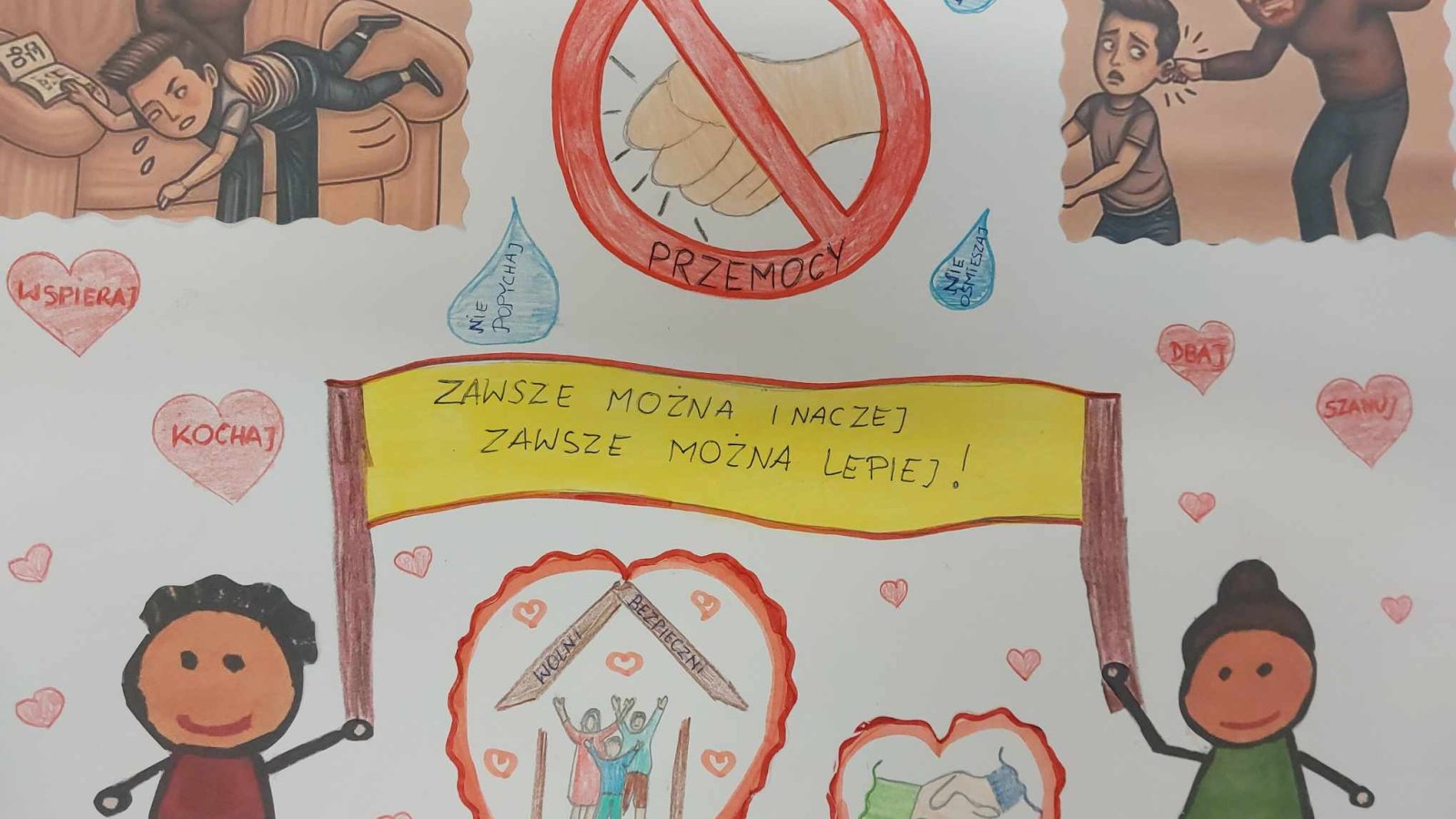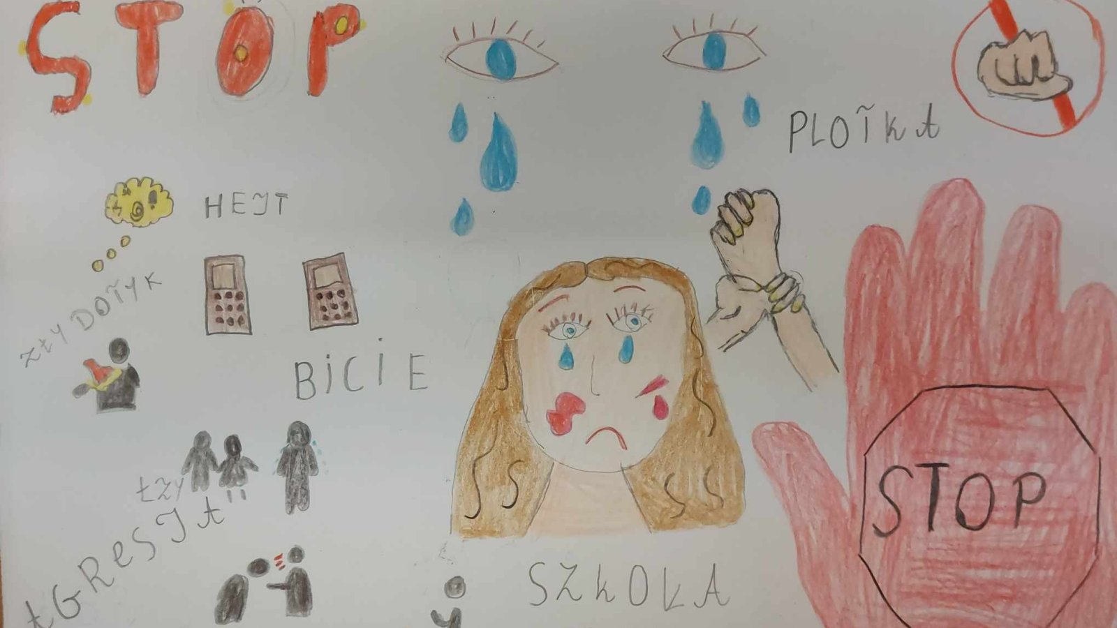 Wprawdzie Ogólnopolska Kampania Dzieciństwo Bez Przemocy dobiegła końca i wiele działań już za nami, to mamy przyjemność poinformować o wynikach konkursu "Stop Przemocy", który skierowany był do uczniów naszej szkoły. Zdajemy sobie sprawę, że jego tematyka nie była łatwa, tym bardziej cieszymy się, że uczniowie podjęli to wyzwanie i na konkurs wpłynęło 52 prace. Wszyscy wykazali się kreatywnością i ogromną wrażliwością na temat przewodni konkursu. Nagrodzonych zostało 20 prac. Dziękujemy za zaangażowanie i życzymy wielu twórczych sukcesów.