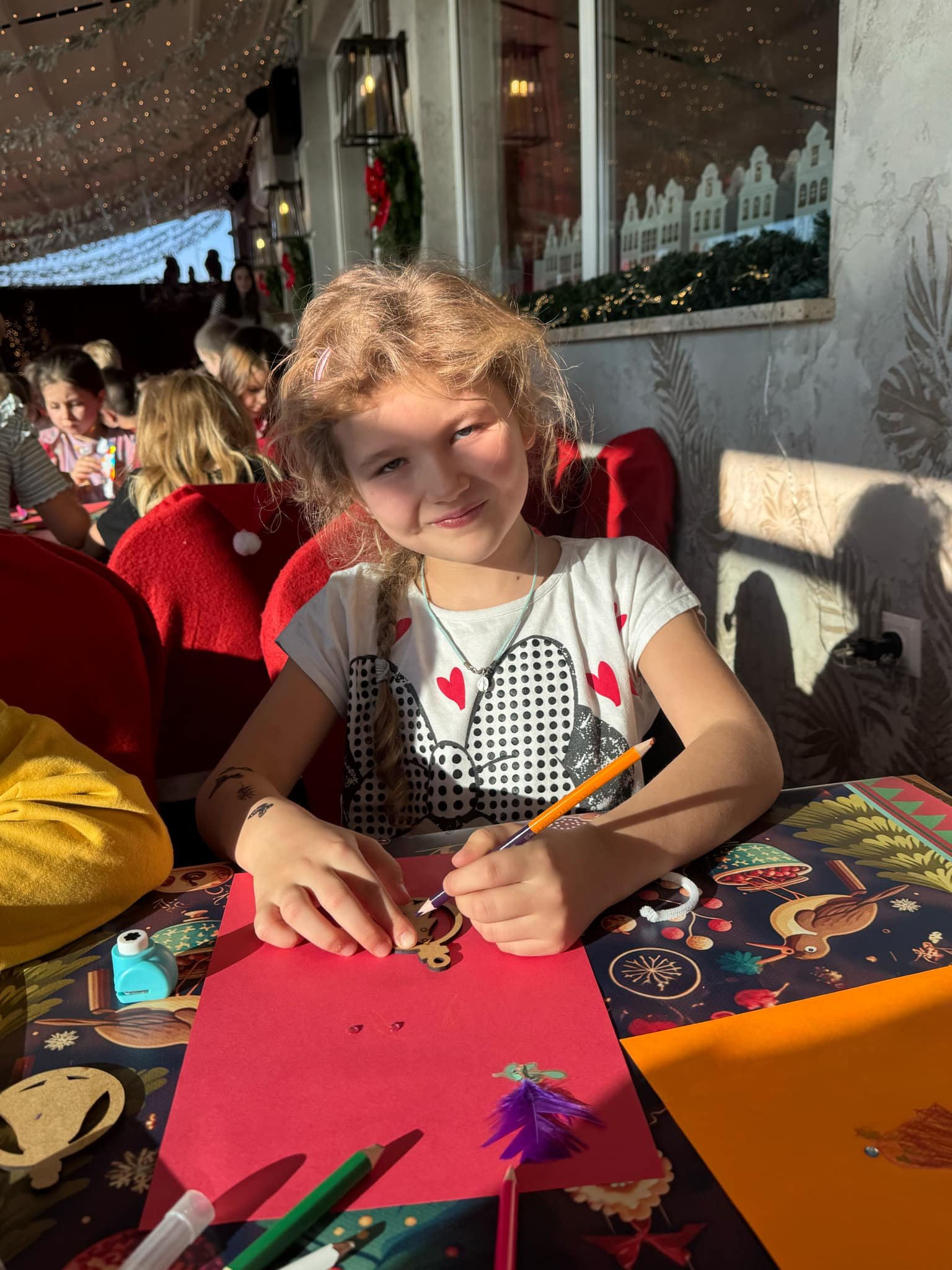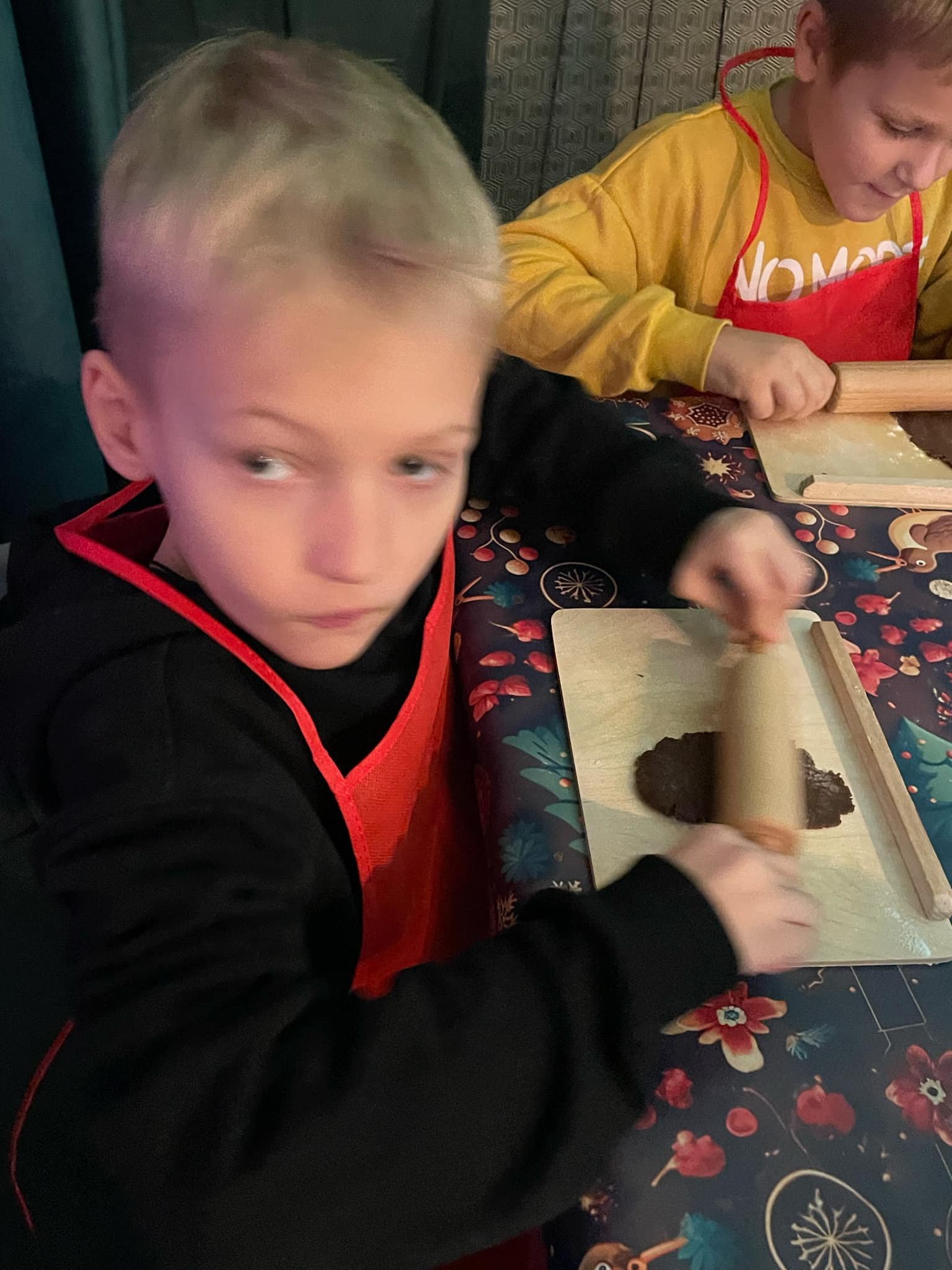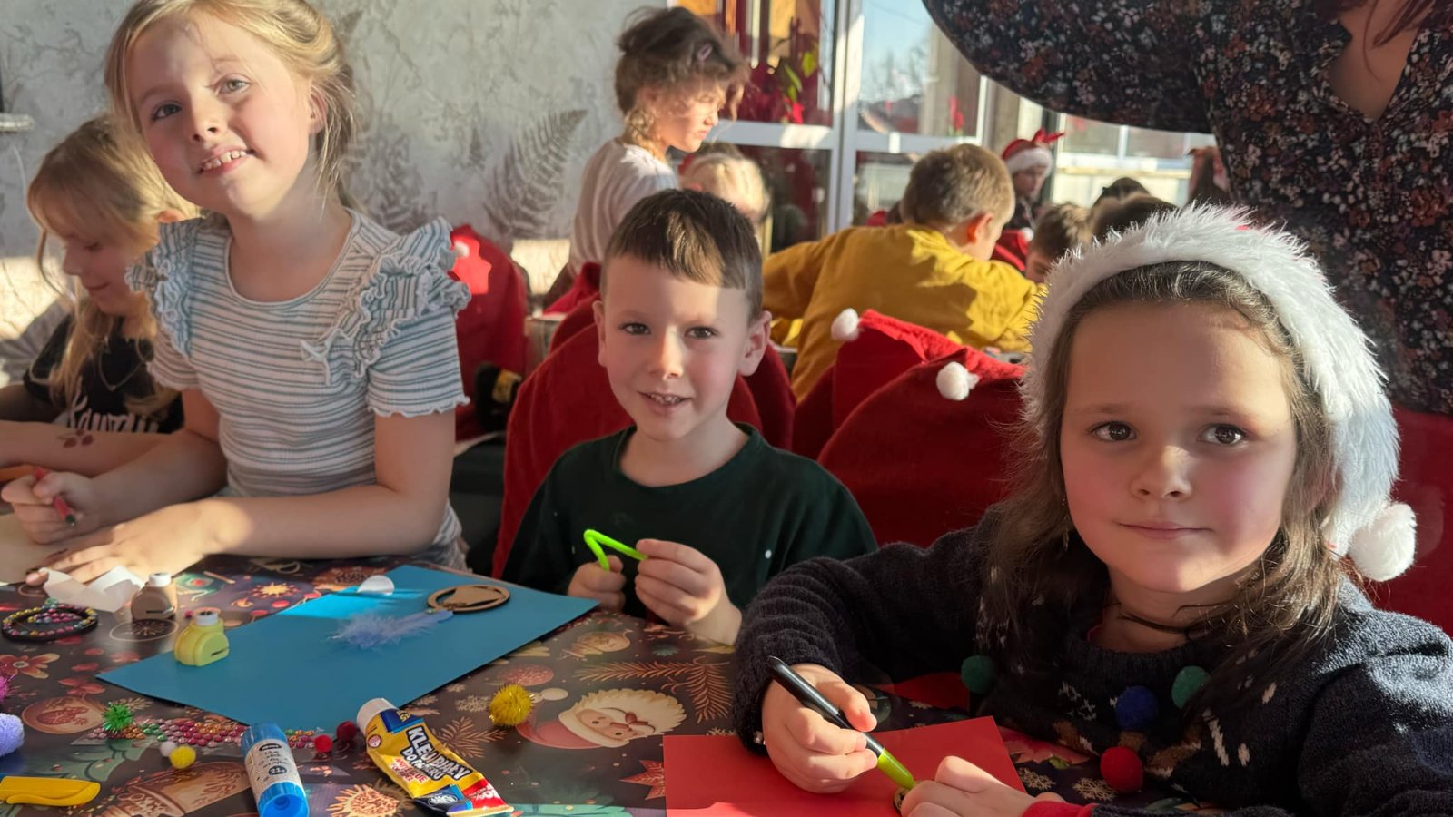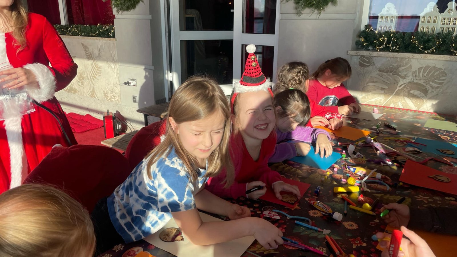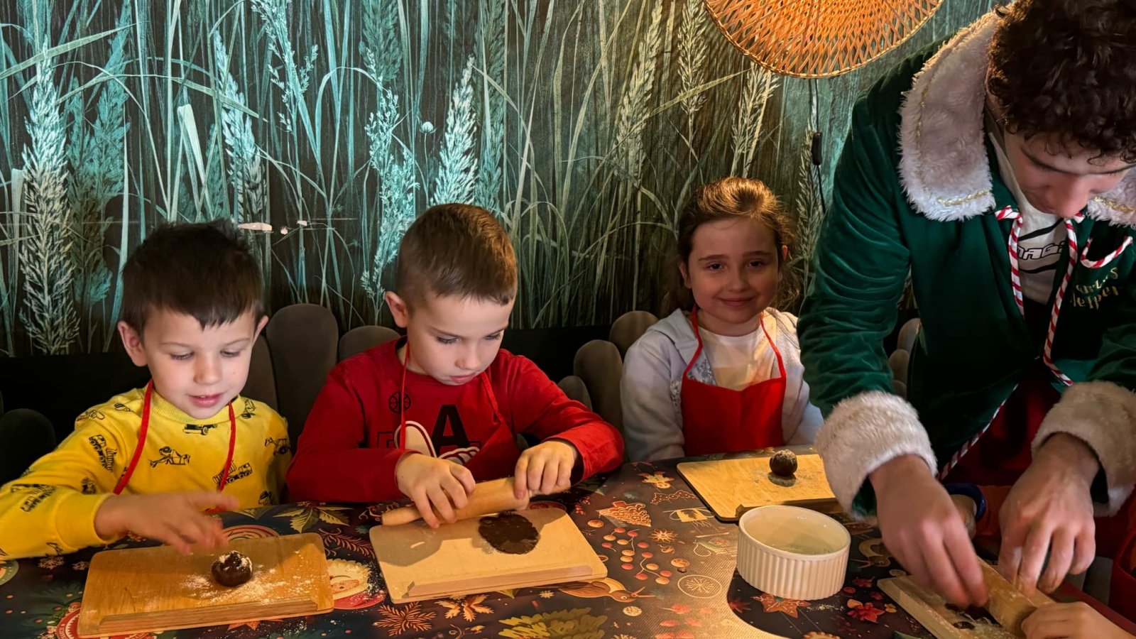 Pierwszym punktem programu były warsztaty pieczenia pierniczków. Dzieci z zapałem wałkowały ciasto, wycinały kształty choinek, gwiazdek i serduszek. Gotowe pierniczki, jeszcze ciepłe, nie tylko pięknie wyglądały, ale i smakowały wyśmienicie! Po słodkich warsztatach uczniowie wzięli udział w konkursie na zgadywanie świątecznych zagadek. Pytania dotyczyły tradycji bożonarodzeniowych, kolęd i postaci związanych ze świętami. Wspólne zgadywanie wywołało mnóstwo śmiechu i rywalizacji. Kolejną atrakcją było dekorowanie bombek. Dzieci, z pomocą elfów, malowały kule różnokolorowymi farbami i ozdabiały je brokatem. Każda bombka była wyjątkowa i odzwierciedlała kreatywność małych artystów. Poza tym uczniowie przygotowali piękne laurki dla Świętego Mikołaja, na których dziękowali za prezenty i składali mu życzenia świąteczne.