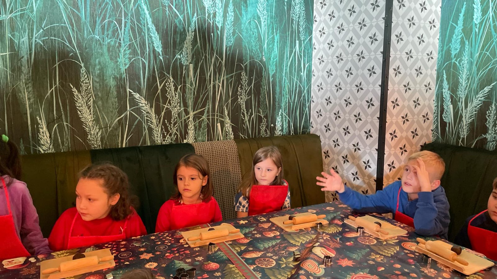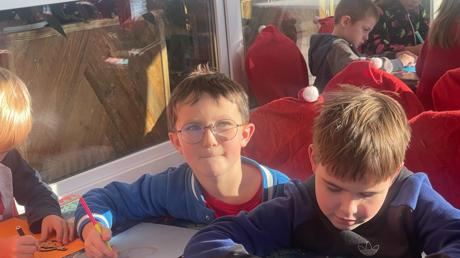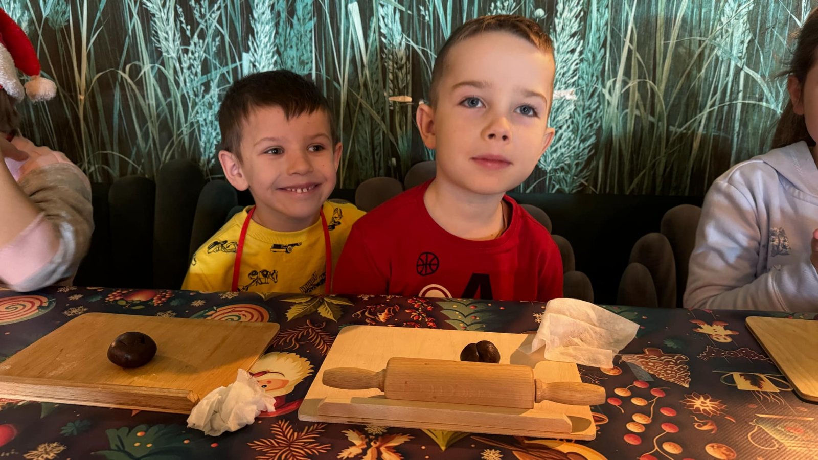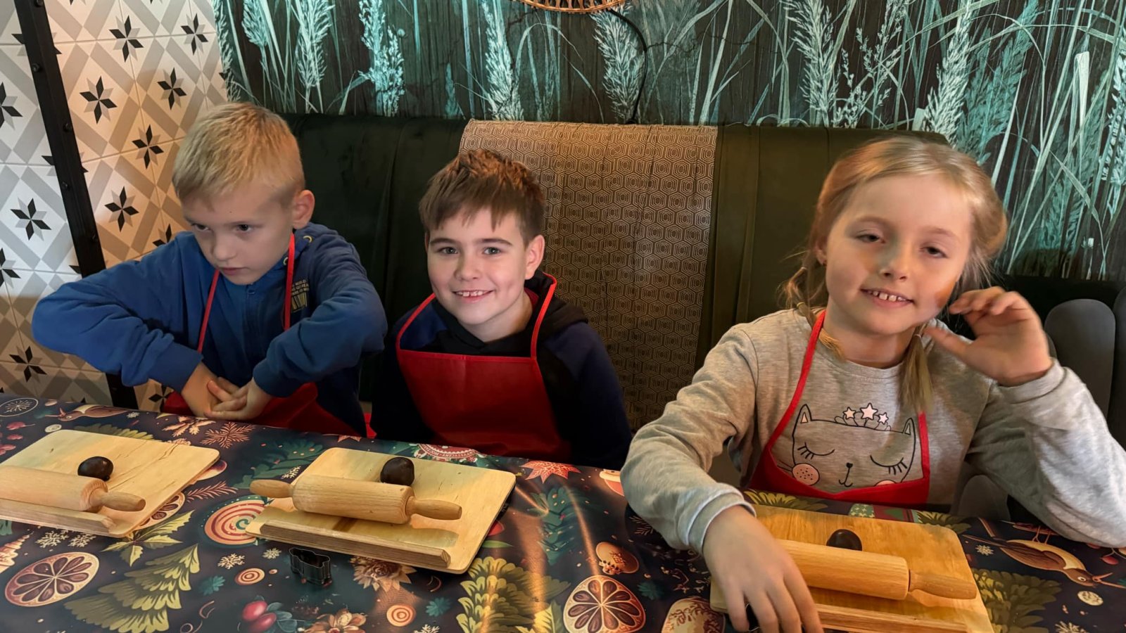 Pierwszym punktem programu były warsztaty pieczenia pierniczków. Dzieci z zapałem wałkowały ciasto, wycinały kształty choinek, gwiazdek i serduszek. Gotowe pierniczki, jeszcze ciepłe, nie tylko pięknie wyglądały, ale i smakowały wyśmienicie! Po słodkich warsztatach uczniowie wzięli udział w konkursie na zgadywanie świątecznych zagadek. Pytania dotyczyły tradycji bożonarodzeniowych, kolęd i postaci związanych ze świętami. Wspólne zgadywanie wywołało mnóstwo śmiechu i rywalizacji. Kolejną atrakcją było dekorowanie bombek. Dzieci, z pomocą elfów, malowały kule różnokolorowymi farbami i ozdabiały je brokatem. Każda bombka była wyjątkowa i odzwierciedlała kreatywność małych artystów. Poza tym uczniowie przygotowali piękne laurki dla Świętego Mikołaja, na których dziękowali za prezenty i składali mu życzenia świąteczne.