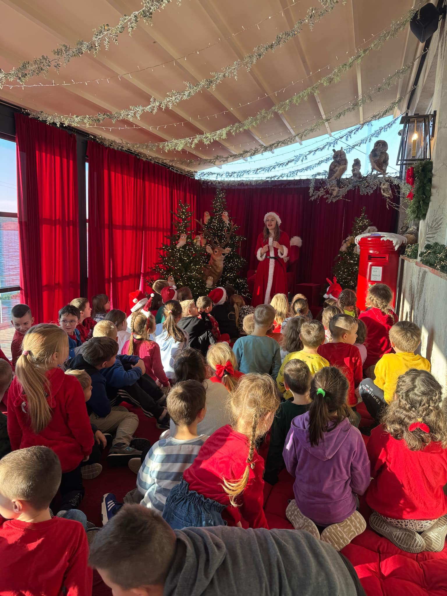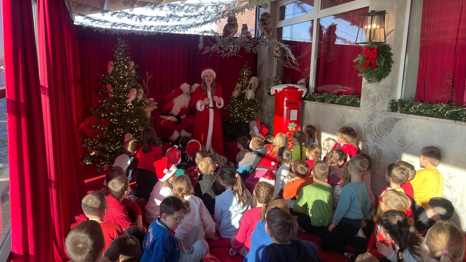 W zeszłym tygodniu uczniowie klas pierwszych naszej szkoły mieli wyjątkową okazję odwiedzić magiczną Pracownię Świętego Mikołaja. Wycieczka ta była pełna radości, śmiechu i niezapomnianych świątecznych atrakcji, które wprowadziły wszystkich w bożonarodzeniowy nastrój. Już na początku dzieci zostały powitane przez samego Świętego Mikołaja oraz jego pomocników – panią Mikołajową i wesołe elfy. Kraina Świętego Mikołaja, udekorowana kolorowymi lampkami, pachnąca choinkami i cynamonem, przeniosła uczniów w świat pełen świątecznych cudów.