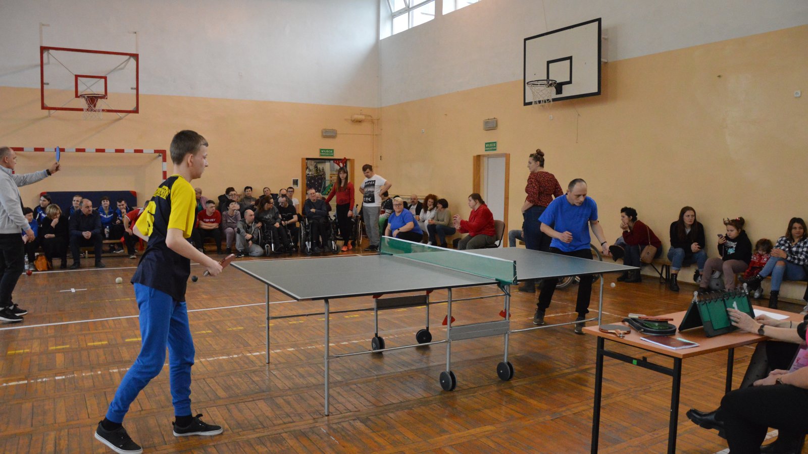 W sobotę 7 grudnia, już po raz dwudziesty pierwszy odbył się Mikołajkowy Turniej Sportowy Osób z Niepełnosprawnością. Na zaproszenie organizatorów Stowarzyszenia Pomocy Dzieciom Niepełnosprawnym „Krok za Krokiem” w Zamościu Koło Terenowe w Biłgoraju oraz Warsztatów Terapii Zajęciowej w Biłgoraju w naszej placówce spotkali się podopieczni domów pomocy społecznej, warsztatów terapii zajęciowej, uczniowie naszej szkoły, a także ich rodziny, opiekunowie i zaproszeni goście. Wśród konkurencji indywidualnych rozgrywane były między innymi: unihokej, dart, golf, przysiady, natomiast w konkurencji turniejowej były to warcaby, tenis stołowy i piłkarzyki. Każdy uczestnik wykazał się ogromnym zaangażowaniem w poszczególnych konkurencjach, a spotkanie przebiegało w atmosferze radości i wzajemnego wsparcia. Na zakończenie turnieju wszyscy zostali uroczyście udekorowani medalami, dyplomami i upominkami. Dziękujemy naszym uczniom i ich rodzicom! Wszystkim uczestnikom gratulujemy !!!