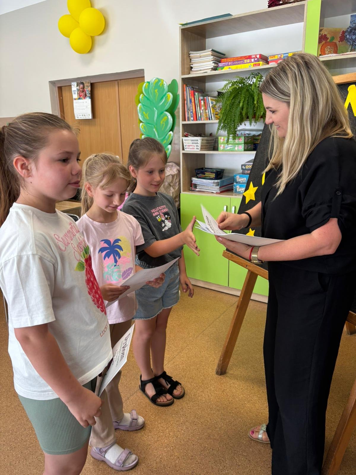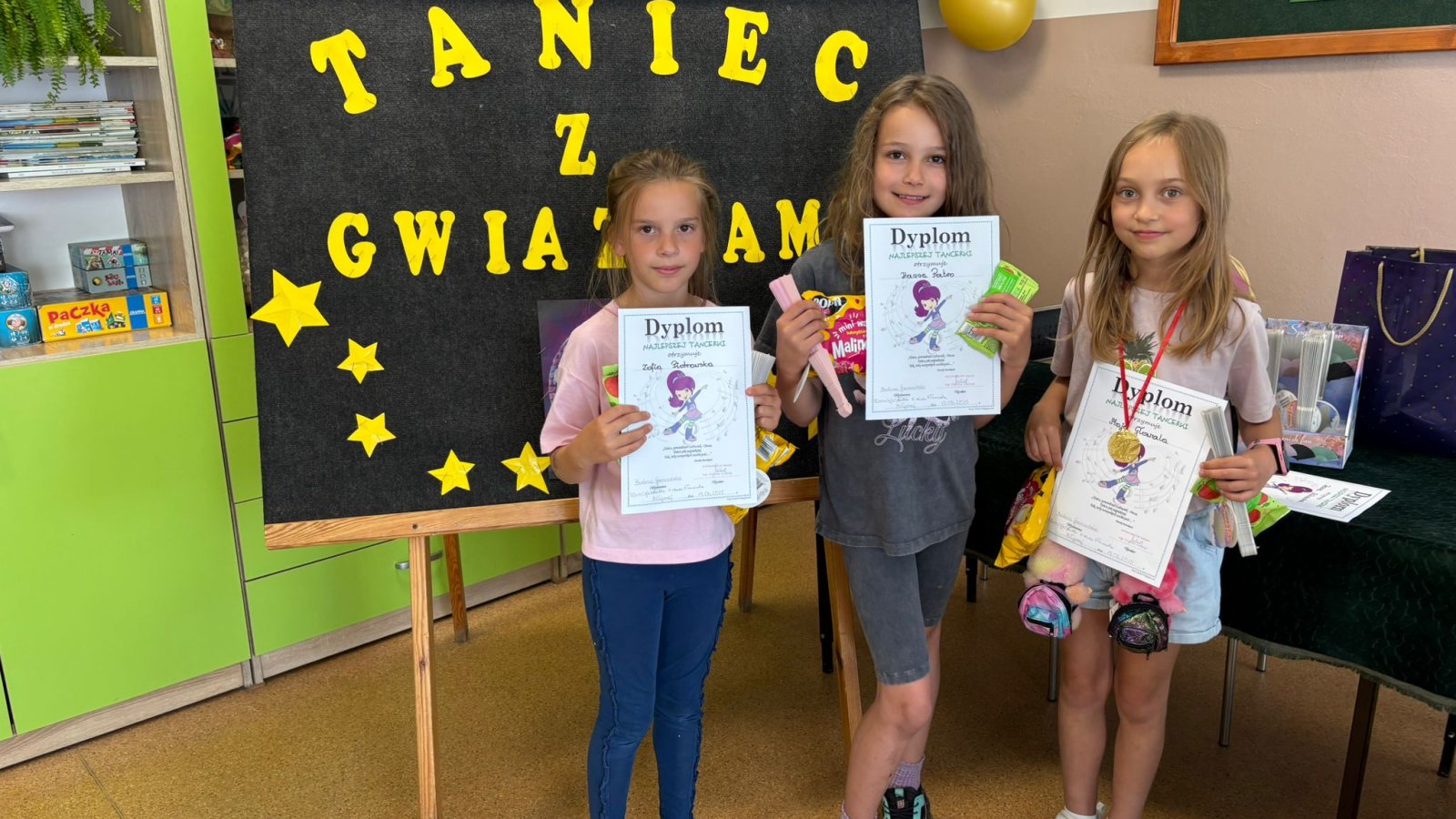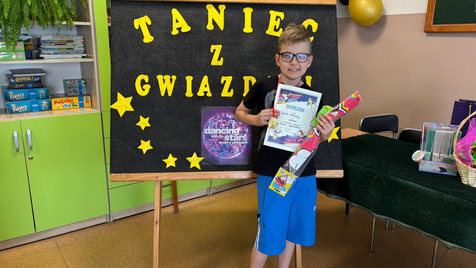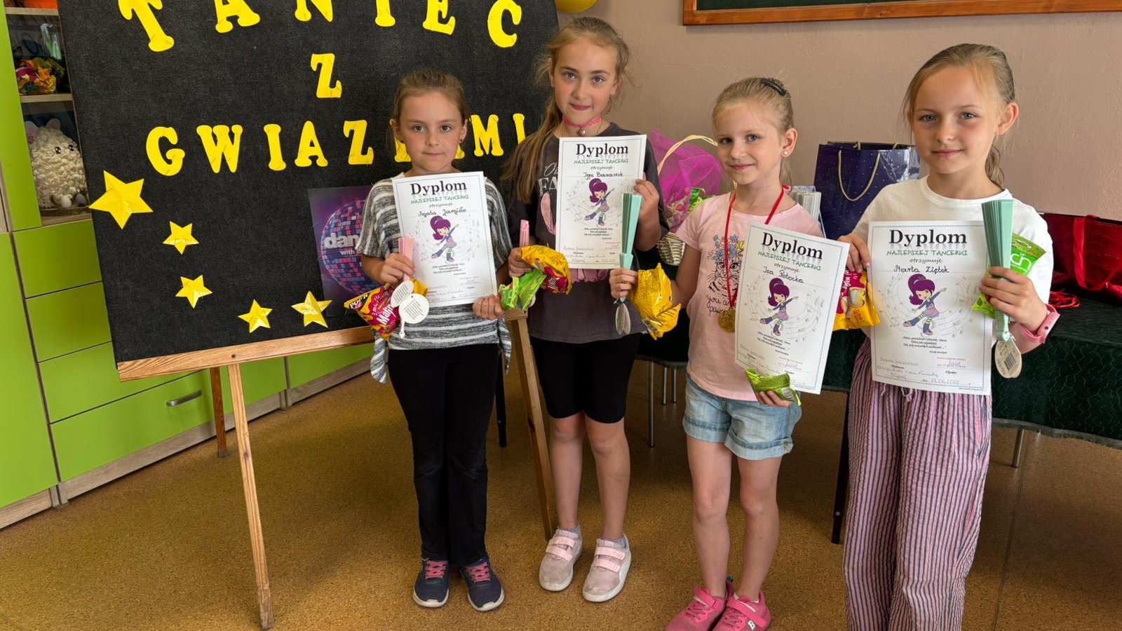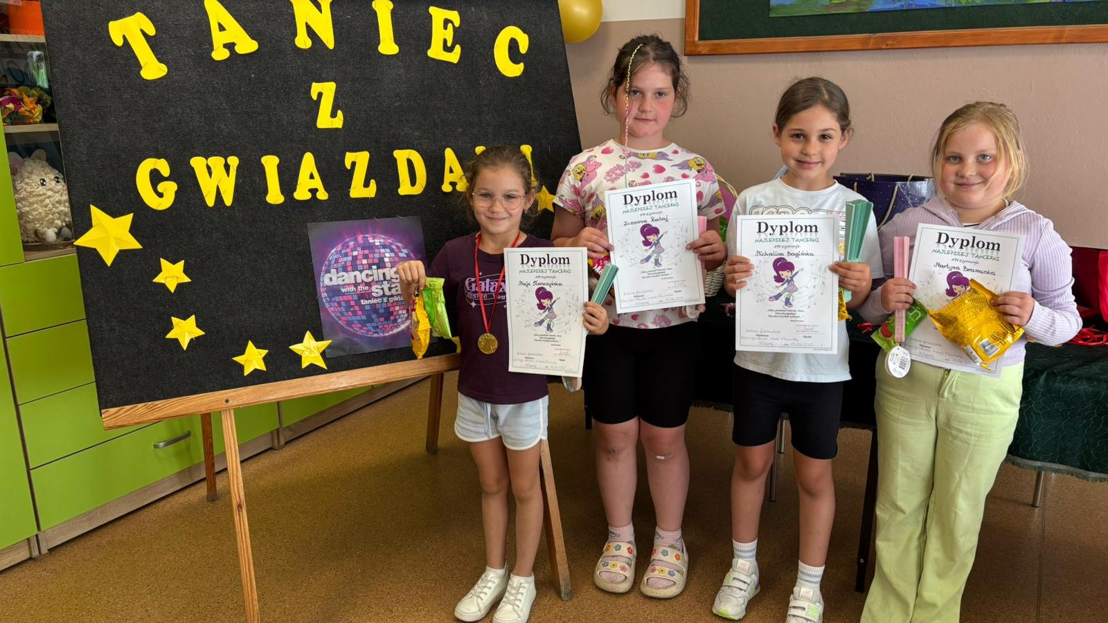 W naszej szkole również tanecznych talentów nie brakuje. Przekonaliśmy się o tym podczas świetlicowego konkursu „Taniec z gwiazdami” dla uczniów z klas I – III. Konkurs odbył się 17 czerwca i przyciągnął zespoły taneczne oraz indywidualnych tancerzy. Każdy uczestnik zaangażował wszystkie partie ciała i wykazał się poczuciem rytmu, a co najważniejsze taniec sprawił mu ogromną radość. Nad przebiegiem konkursu czuwało jury, które oceniało tancerzy. To nie było łatwe zadanie. Każdy zasłużył na najwyższe miejsce. Dnia 24 czerwca ogłoszone zostały wyniki. Tancerze otrzymali medale, dyplomy i drobne upominki. Wszystkim towarzyszył uśmiech i poczucie, że warto było zatańczyć w konkursie.