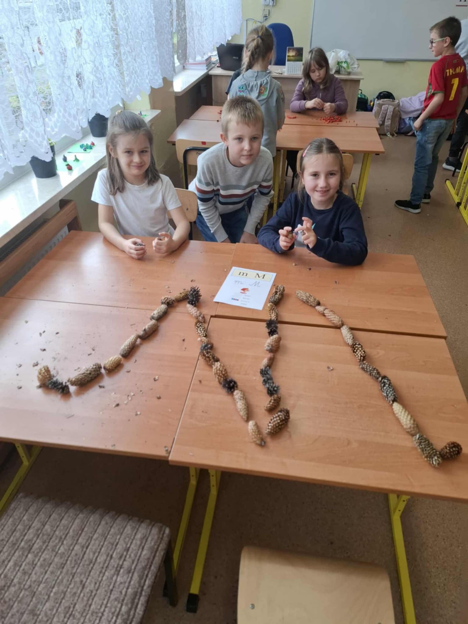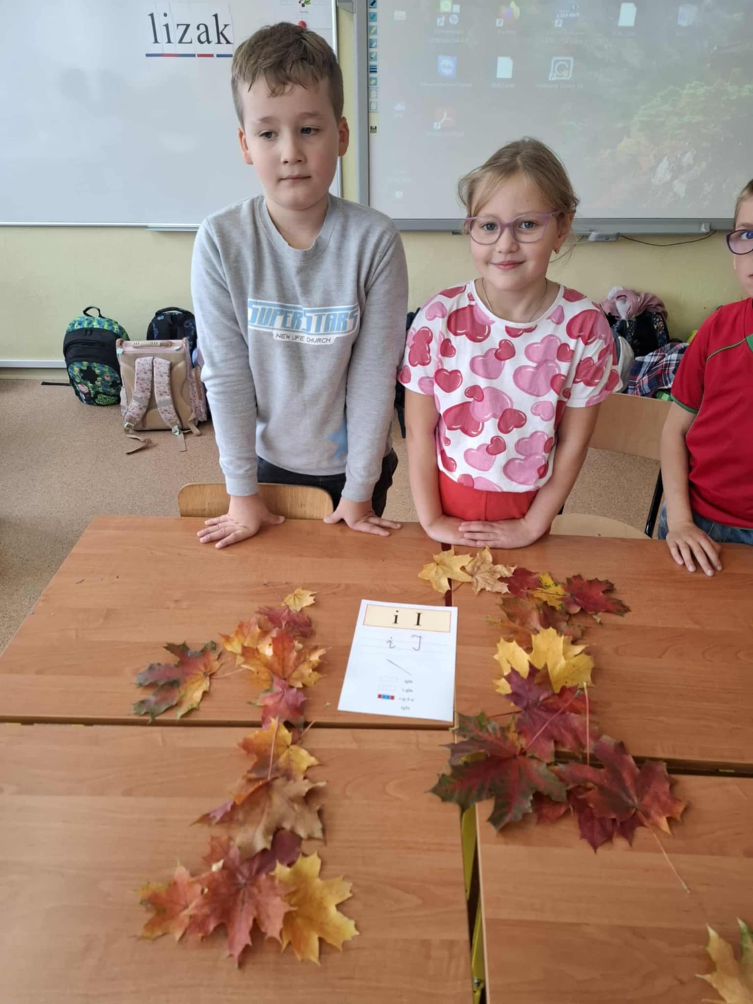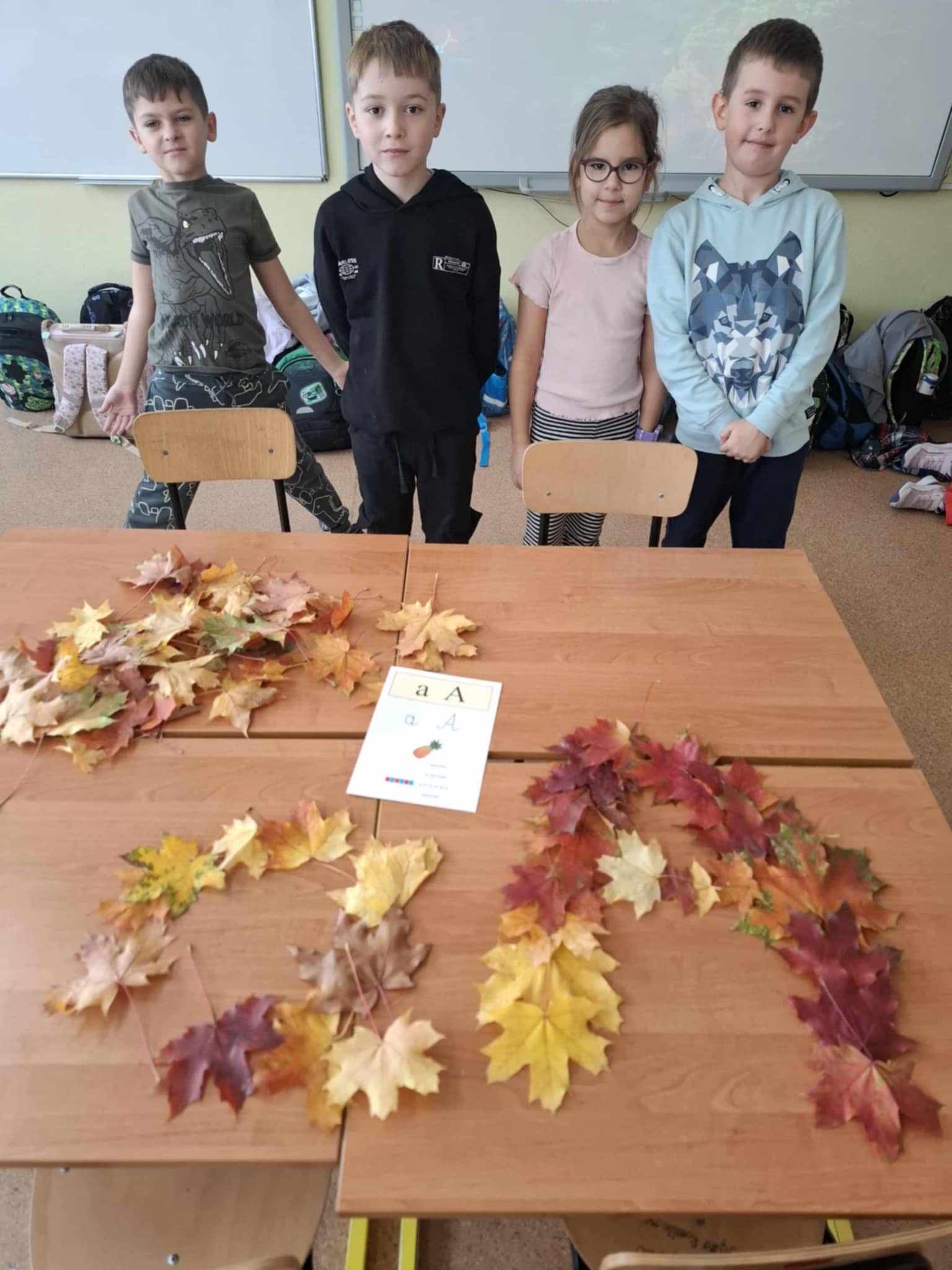 Uczniowie klasy 1a wzięli udział w kolejnym etapie międzynarodowego projektu edukacyjnego „LITERKI W AKCJI”. Tym razem zadanie było wyjątkowo kreatywne i pachniało jesienią! Pierwszaki miały za zadanie ułożyć poznane litery z darów jesieni – takich jak kasztany, żołędzie, liście, szyszki czy jarzębina. Dzieci z ogromnym zaangażowaniem przystąpiły do pracy, a sala lekcyjna zamieniła się w prawdziwą jesienną pracownię. Powstały przepiękne kompozycje literowe. Uczniowie mogli powtórzyć poznane litery, rozwijać swoją wyobraźnię oraz współpracować w grupach. Zadanie przyniosło wszystkim wiele radości i stało się świetną okazją do nauki przez zabawę.