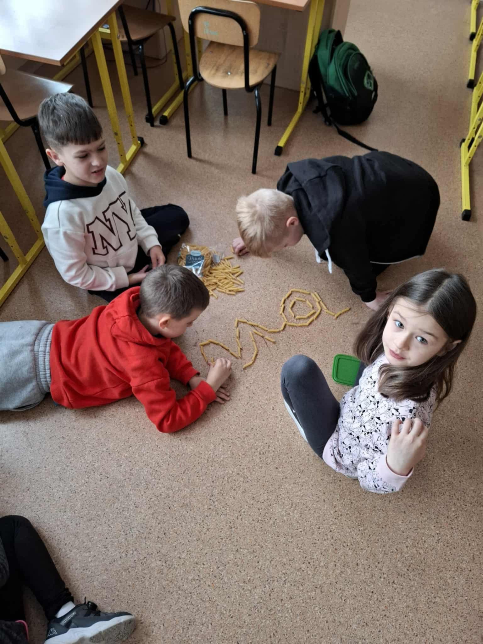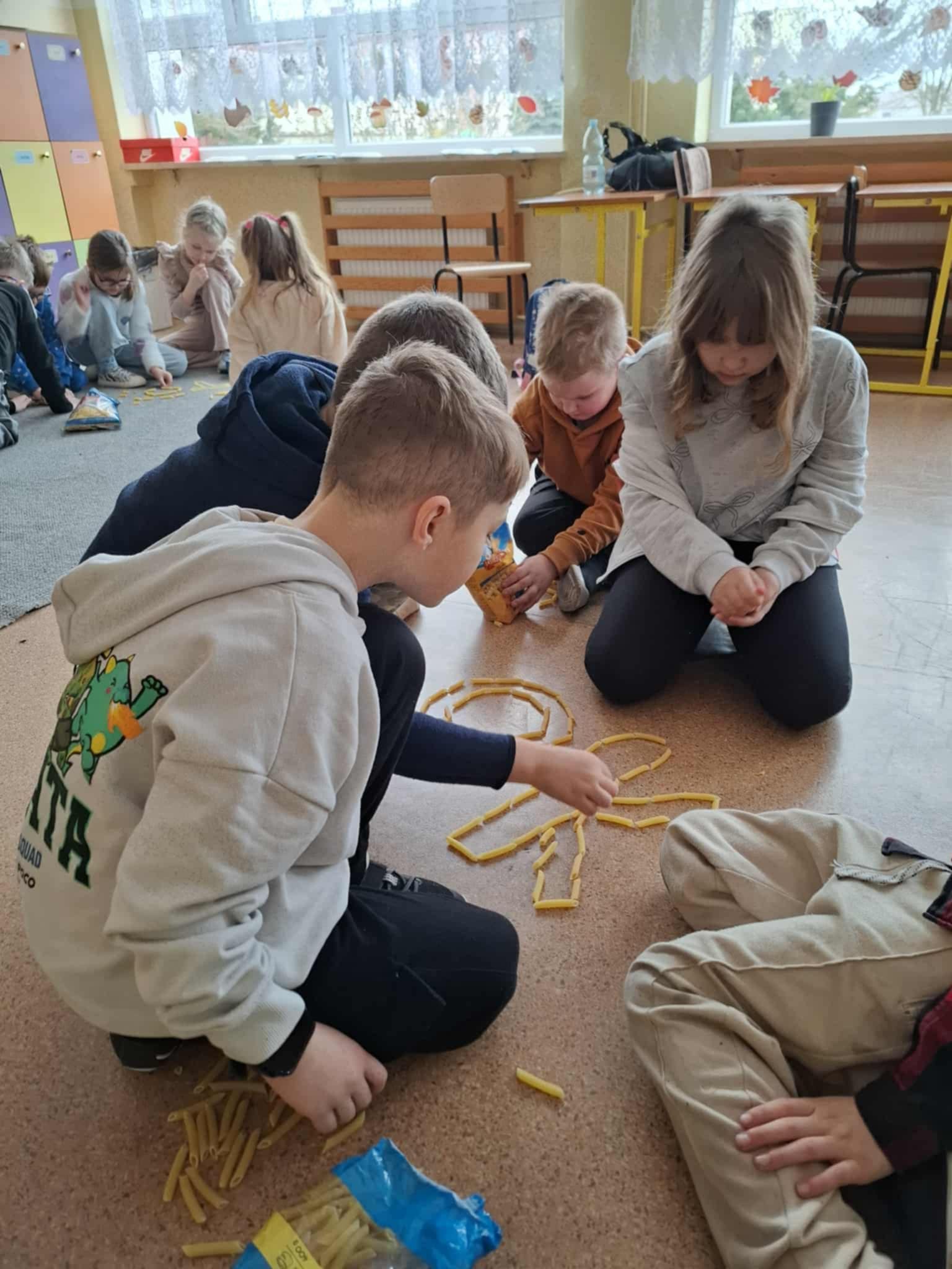 Uczniowie klasy 1a z ogromnym zaangażowaniem przystąpili do realizacji trzeciego zadania w ramach międzynarodowego projektu edukacyjnego „Literki w akcji”. Tym razem młodzi odkrywcy słów i liter poznawali tajniki języka poprzez twórczą zabawę – układali litery oraz wyrazy z… makaronu!