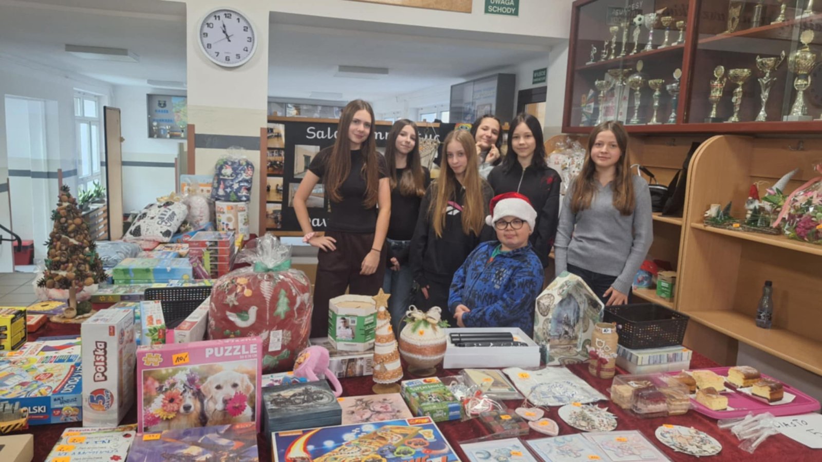 Z okazji Mikołajek w dniu 4 grudnia 2025r. nasza szkoła zorganizowała wyjątkową loterię fantową, której celem było wsparcie naszego ucznia Adama Iwanejko, który zmaga się z chorobą DMD (dystrofia mięśniowa Duchenne’a). Inicjatywę tę podjęła pani Sylwia Hankus, nauczycielka naszej szkoły, z wielkim sercem i zaangażowaniem. Panie Anna Łubiarz, Anna Pałubska oraz uczniowie klas 7b i 8b również aktywnie uczestniczyli w akcji. Loteria cieszyła się ogromnym zainteresowaniem wśród uczniów, nauczycieli i rodziców. Wspólne działania przyniosły nie tylko radość z możliwości wygrania fantów, ale przede wszystkim pokazały, jak wielka jest moc wspólnego dobra i solidarności. Udało się zebrać 8 215, 36 zł. Całkowity dochód z loterii zostanie przeznaczony na zbiórkę na leczenie Adama, który potrzebuje naszej pomocy i wsparcia w walce z chorobą.