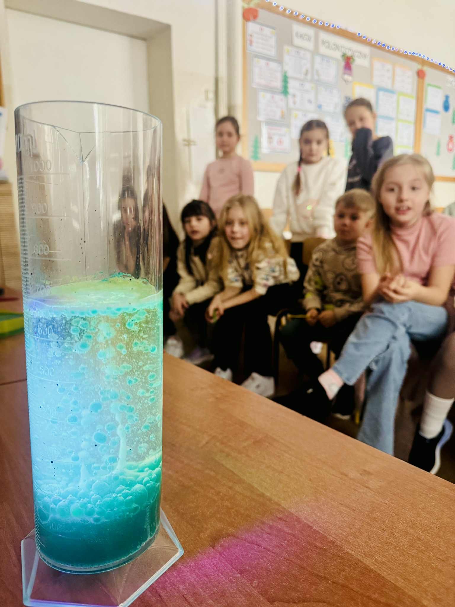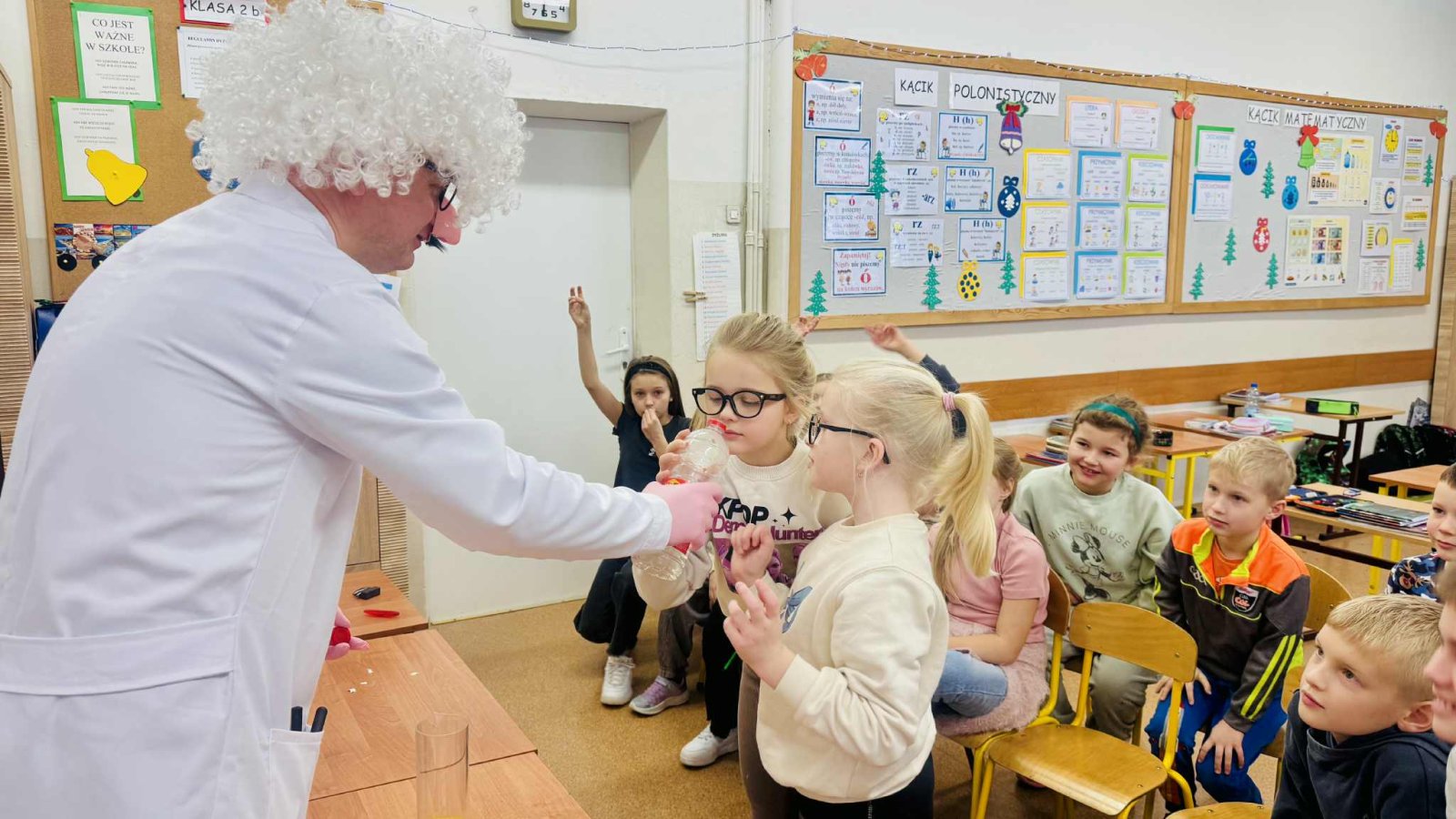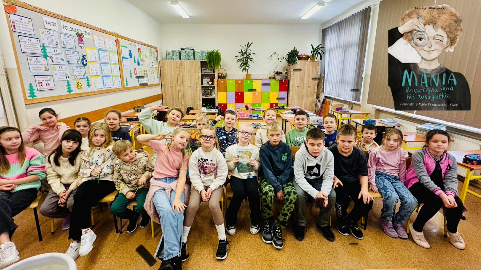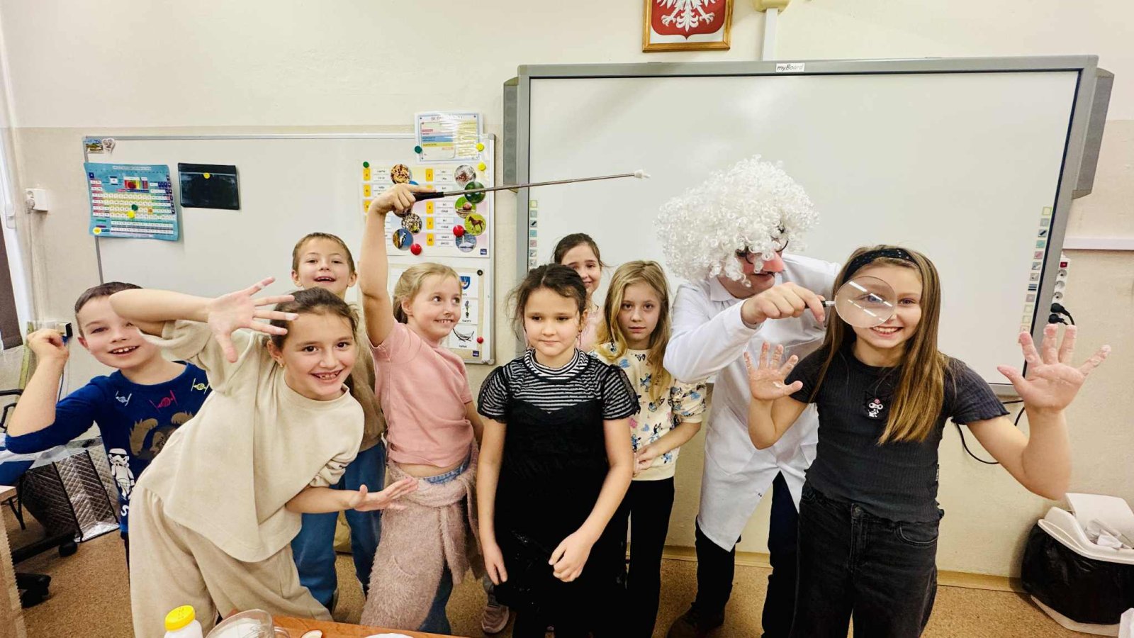 Z tej okazji klasę odwiedził pan prof. Jan Konewka, który w ciekawy i przystępny sposób przybliżył dzieciom podstawowe zagadnienia naukowe. Uczniowie mieli możliwość samodzielnego obserwowania prostych doświadczeń, eksperymentowania oraz zadawania pytań. Zajęcia wzbudziły ogromne zainteresowanie i zachęciły dzieci do aktywnego udziału w odkrywaniu świata. Spotkanie było doskonałym uzupełnieniem omawianej lektury, a jednocześnie wartościową lekcją pokazującą, że nauka może być fascynującą przygodą. Postać Marii Skłodowskiej-Curie stała się dla uczniów inspirującym przykładem tego, że ciekawość, wytrwałość i pasja mogą prowadzić do wielkich osiągnięć.