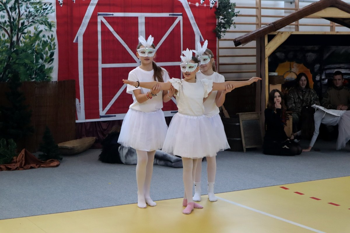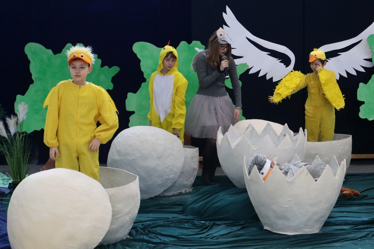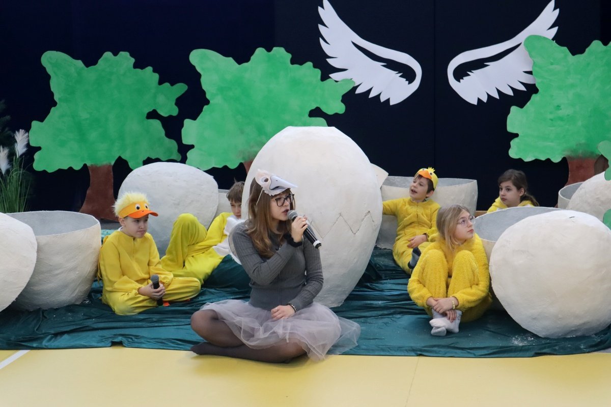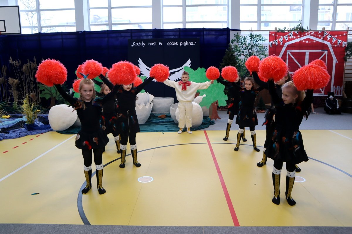 Najważniejszym punktem dnia było przedstawienie pt. „Brzydkie Kaczątko”, przygotowane przez uczniów i nauczycieli. Wybór tej baśni nie był przypadkowy. Historia małego kaczątka, które doświadcza odrzucenia i braku akceptacji, a ostatecznie odnajduje swoje miejsce i odkrywa własną wartość, stała się piękną metaforą przesłania tego dnia. Młodzi aktorzy z ogromnym zaangażowaniem wcielili się w swoje role, wzruszając i skłaniając do refleksji zgromadzoną publiczność. Wspólna praca nad spektaklem była także przykładem integracji w praktyce- współdziałania, wzajemnej pomocy i budowania relacji opartych na szacunku.