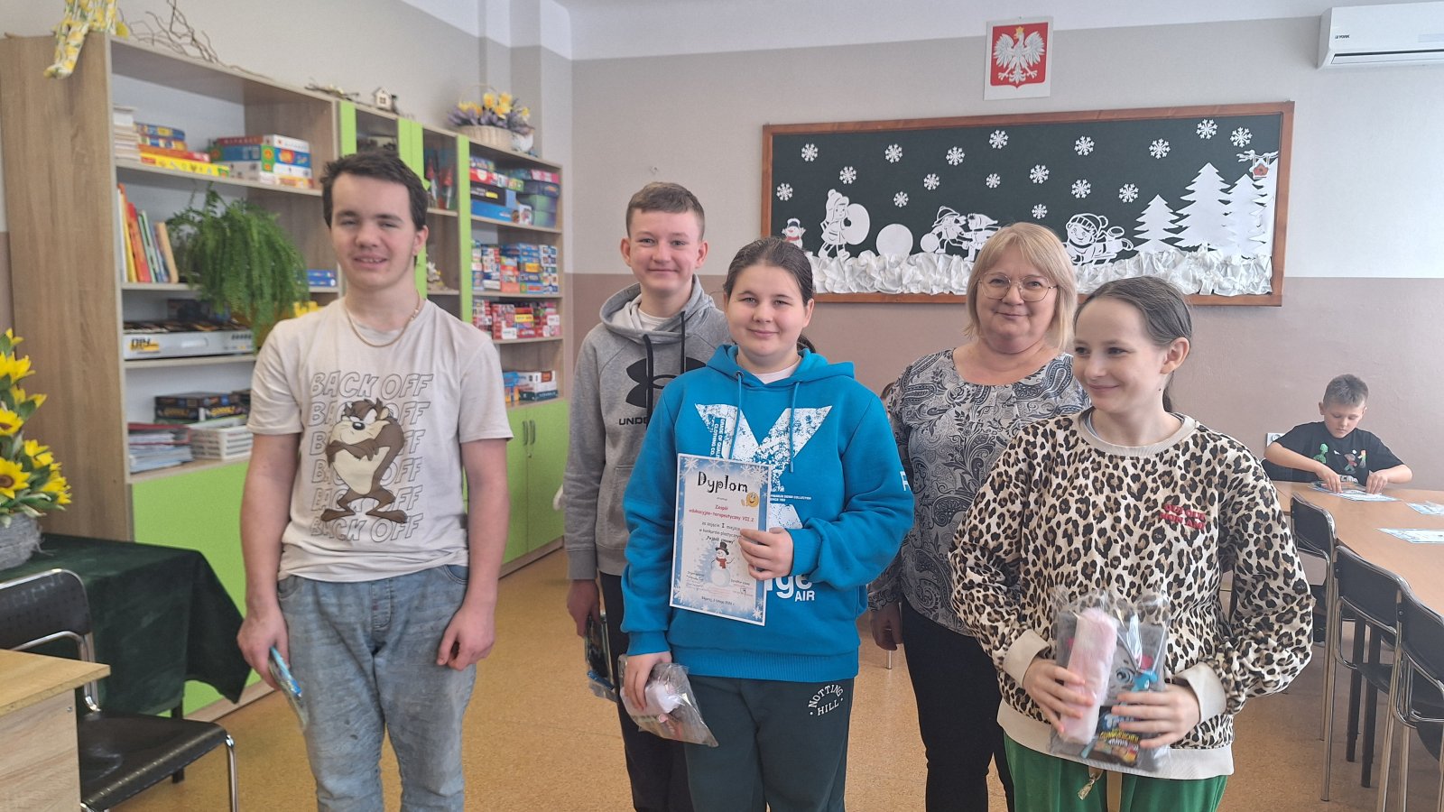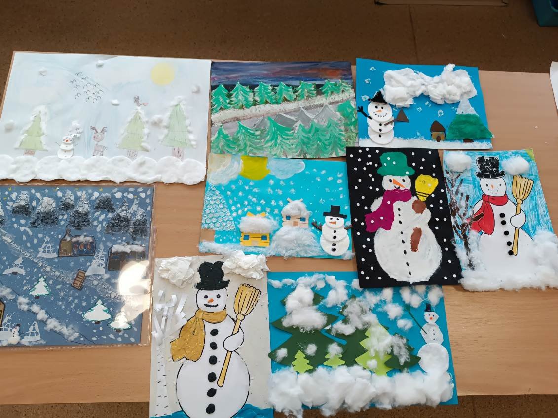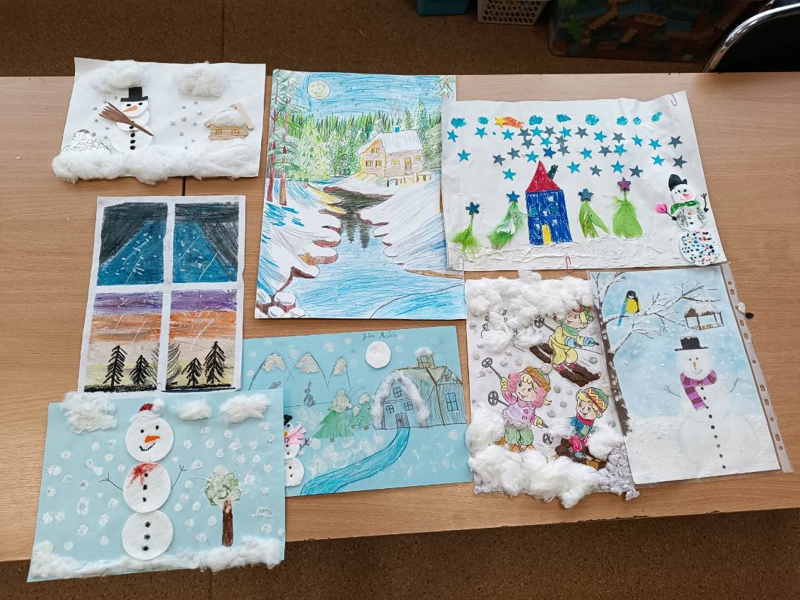Zima, zima, zima, pada, pada śnieg…Zima to przepiękna pora roku, która w tym roku, wyjątkowo, świat obdarowała pieknym, śnieżnym, białym puchem. 11 lutego 2026 r. w świetlicy szkolnej odbyło się uroczyste podsumowanie oraz wręczenie dyplomów i nagród w konkursie plastycznym „Pejzaż zimowy”. Celem konkursu było rozwijanie wyobraźni i kreatywności dzieci, doskonalenie umiejętności plastycznych oraz uwrażliwianie na piękno zimowej przyrody. Uczniowie wykazali się dużym zaangażowaniem i pomysłowością, prezentując prace wykonane różnymi technikami plastycznymi. Wszystkie prace cechowały się oryginalnością oraz starannością wykonania. Komisja konkursowa miała niezwykle trudne zadanie, ponieważ każda z prac była piękna i niepowtarzalna.