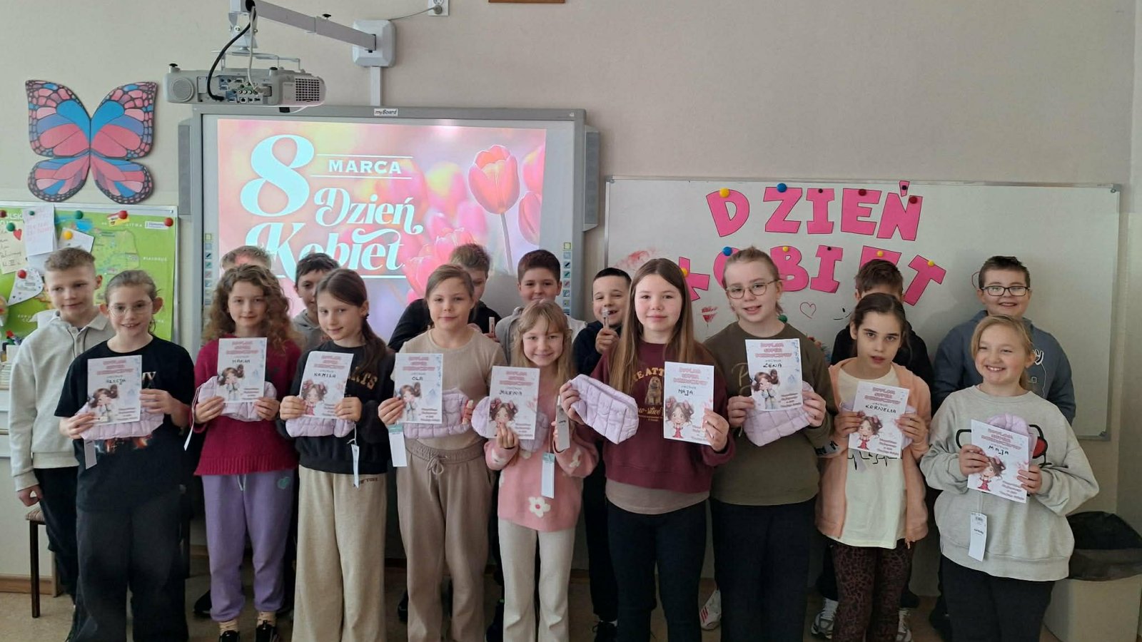 W naszej szkole Dzień Kobiet obchodzony był w bardzo miłej i radosnej atmosferze. Uczniowie zadbali o to, aby wszystkie dziewczynki poczuły się wyjątkowo. Chłopcy z klas 2a i 3a przygotowali dla swoich koleżanek drobne upominki, a także specjalne dyplomy i miłe niespodzianki. Każda dziewczynka została wyróżniona, obdarowana uśmiechem oraz serdecznymi życzeniami.