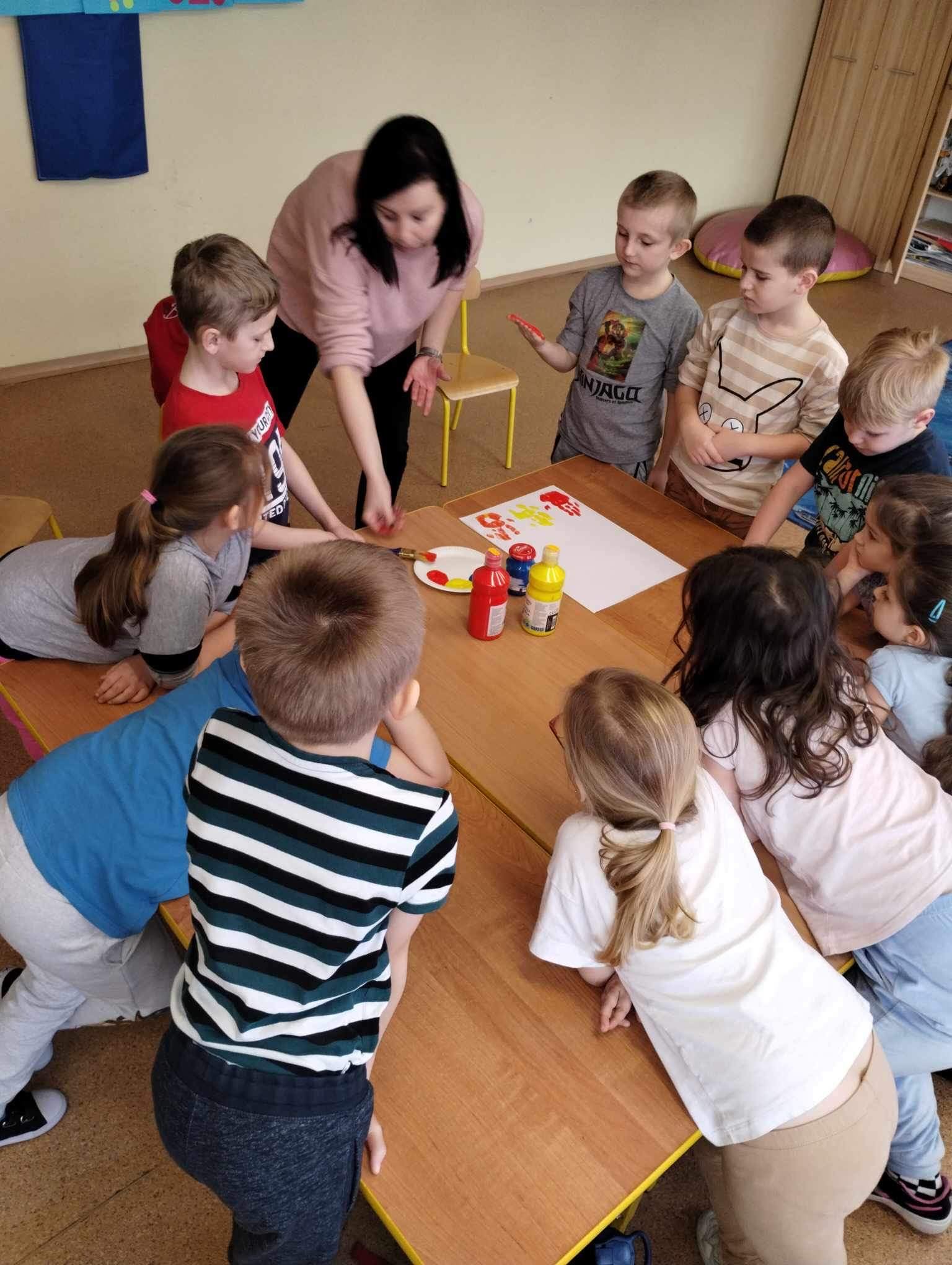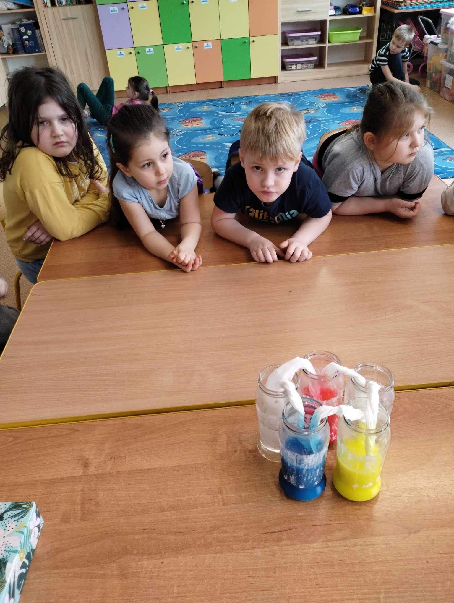 Uczniowie oddziału przedszolnego mieli okazję przekonać się w jaki sposób powstają kolory. Podczas zajęć dzieci mogły obejrzeć oraz samodzielnie wykonać eksperymenty. Sprawdziły jak wiele różnych kolorów można wyczarować z trzech podstawowych barw: czerwonej, niebieskiej i żółtej. Rysowały tajemnicze niewidoczne rysunki, które dopiero po użyciu ognia ukazały się w całości. Każde dziecko uwielbia eksperymentować. Samodzielne wykonywanie nieskomplikowanych doświadczeń to nie tylko świetna zabawa, ale także okazja do zdobycia wiedzy i odkrywania w sobie pasji. Należy wykorzystać każdą nadarzającą się okazję, by pokazać dzieciom, jak kolorowy jest świat.