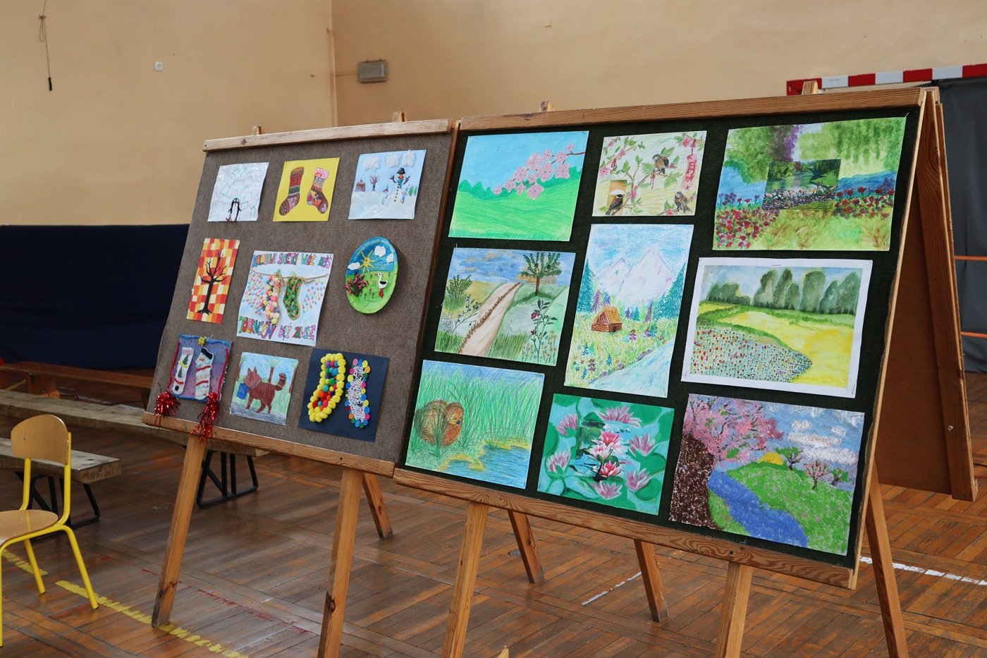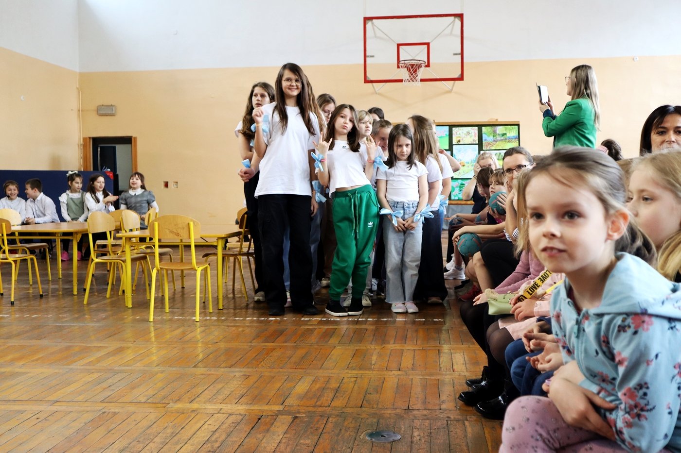 Szkoła to nie tylko nauka, lekcje, zadania domowe, ale też bardzo ważna aktywność i sprawność ruchowa. Tą w ćwiczeniach ruchowych, zademonstrowały uczennice klas IV. Na zakończenie części artystycznej wystąpił uczeń klasy VIc- Filip Bednarz, który zaśpiewał piosenkę anglojęzyczną Alana Walkera pt. „All falls down”. Kolejnym punktem sobotniego spotkania była możliwość zapoznania się z bogatą twórczością uczniów klas I – III i wychowanków świetlicy szkolnej. Następnie zaproszono wszystkich do wspólnego zwiedzania szkoły, sal lekcyjnych, pracowni techniczno – fizycznej, biologicznej, gabinetów pedagoga, psychologa i logopedy. W bibliotece przywitały dzieci panie bibliotekarki, które z niecierpliwością wyczekiwać będą we wrześniu nowych czytelników.