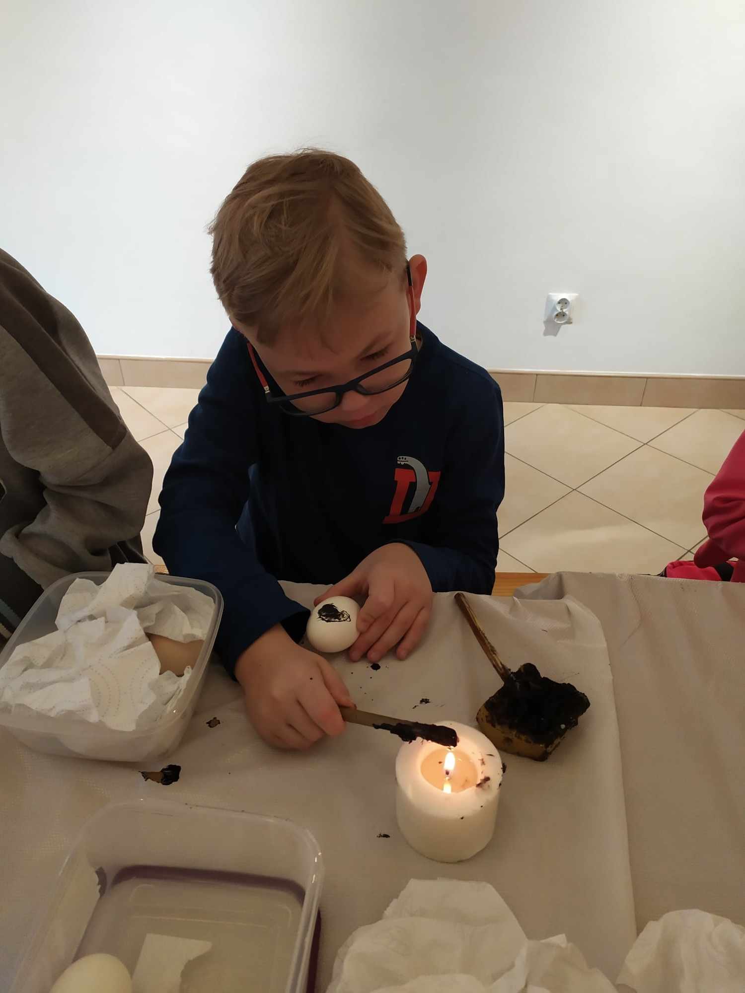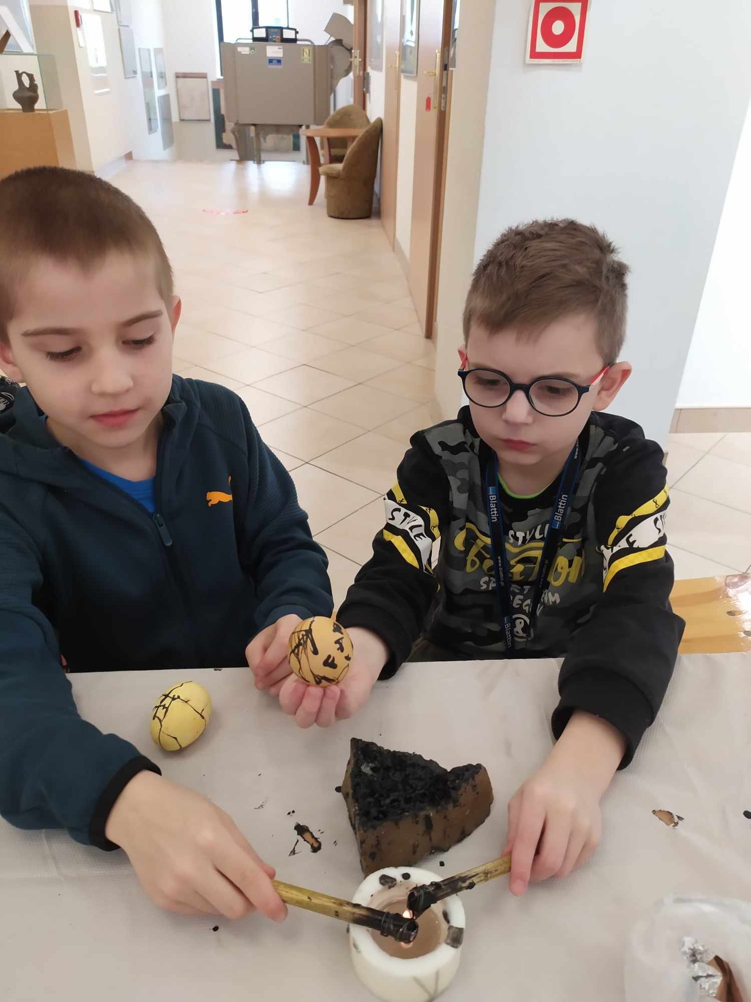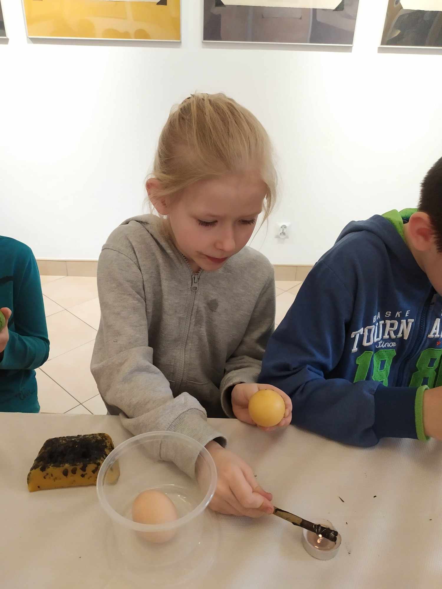 Nasi uczniowie z klasy 2a i 1b mieli okazję poznać najstarszą technikę tworzenia pisanek, dzięki uprzejmości Muzeum Ziemi Biłgorajskiej w Biłgoraju. Na specjalnie przygotowanych dla nich warsztatach rysowali roztopionym woskiem po jajku, następnie zanurzali w barwniku. Jako narzędzi do pisania używali patyków, które zakończone były ostrym metalowym elementem, aby powstałe linie na pisance były cienkie i estetyczne. Powstało wiele pięknych i efektownych pisanek.