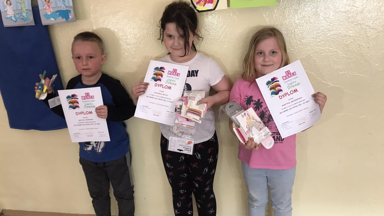 Z tej okazji nasza szkoła zorganizowała konkurs plastyczny „KOLOROWE SKARPETKI NIE DO PARY”. Celem i założeniem konkursu było uświadomienie potrzeby tolerancji i szacunku wobec osób z zespołem Downa, propagowanie idei poszanowania drugiego człowieka oraz rozwijanie kreatywności i wrażliwości artystycznej uczniów.