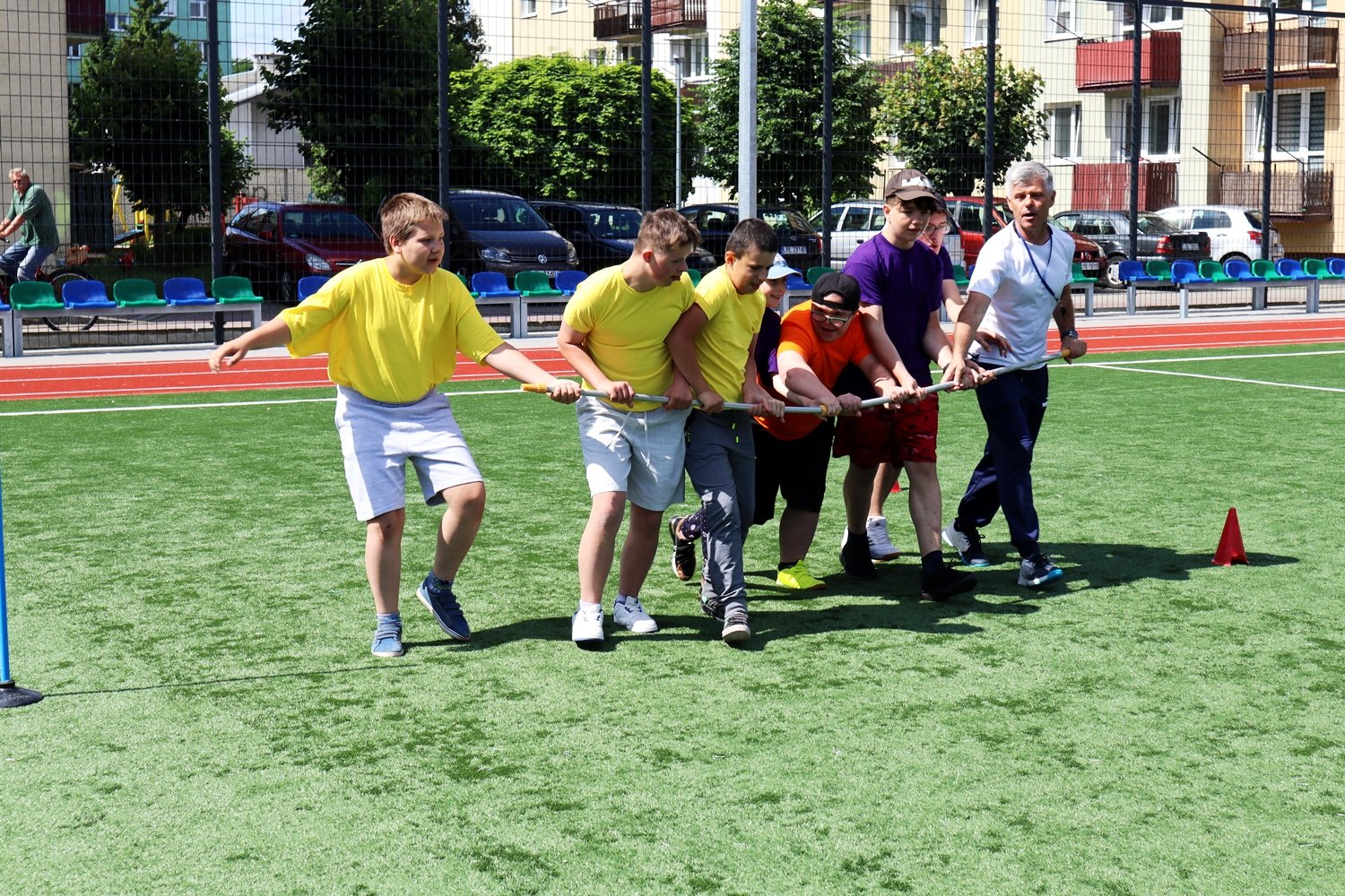 W dniu 12 czerwca 2024 roku, na nowopowstałym boisku szkolnym przy Szkole Podstawowej nr 3 z Oddziałami Integracyjnymi w Biłgoraju odbyła się Spartakiada Sportowo – Rekreacyjna dla uczniów niepełnosprawnych uczęszczających do zespołów edukacyjno – terapeutycznych w naszej szkole.