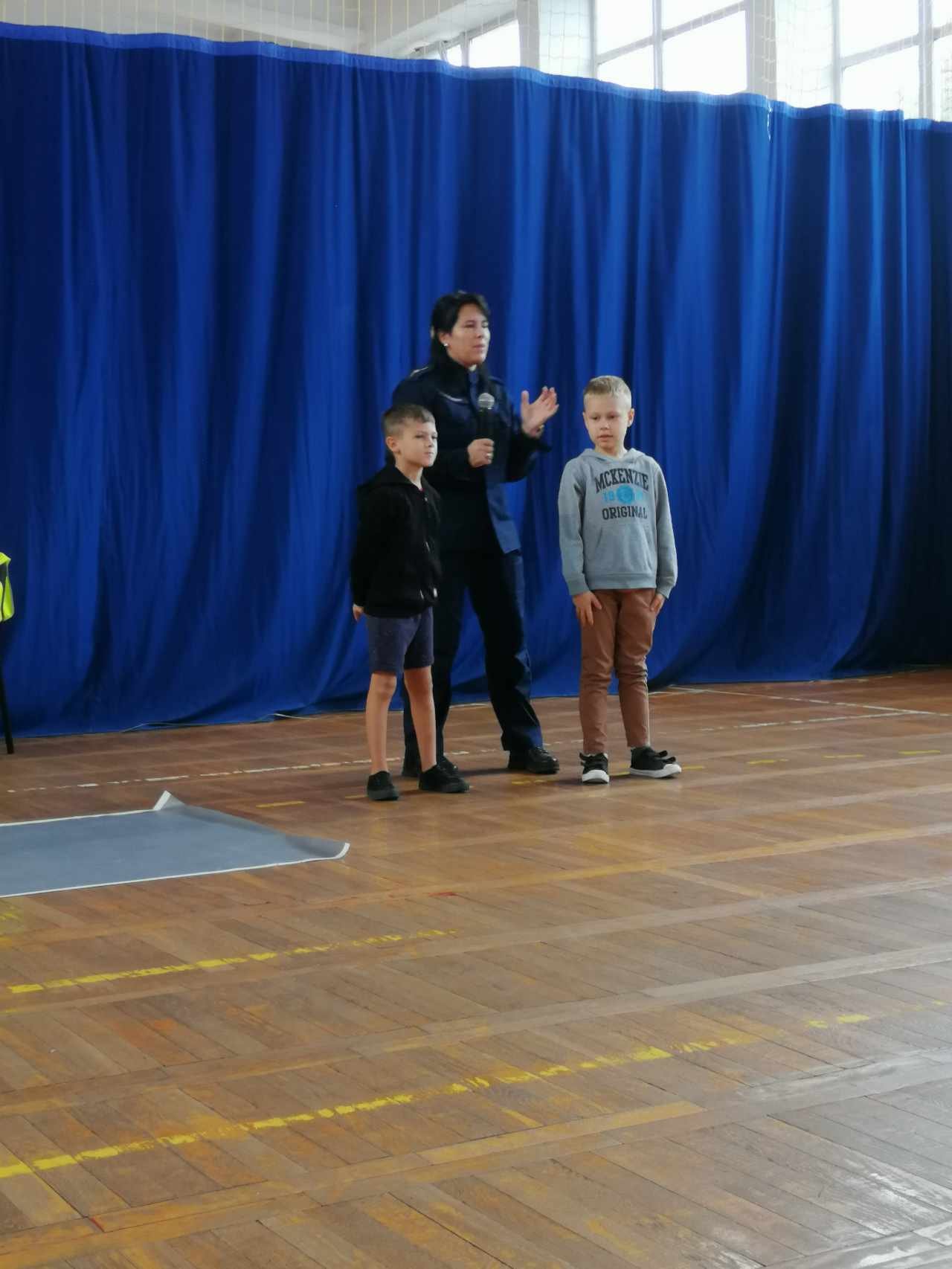 Najmłodsi mieli okazję porozmawiać z policjantką o zachowaniu bezpieczeństwa podczas poruszania się po ulicy, chodniku i jazdy rowerem. Ponadto podkreślała, jak ważną rolę pełnią elementy odblaskowe, które każdy uczeń powinien posiadać. Małym słuchaczom przypomniane były numery alarmowe i sposoby wzywania pomocy. Funkcjonariuszka poruszyła również tematykę właściwego zachowania się w domu oraz zagrożeń wynikających z kontaktów z nieznajomymi. Kolejnym ważnym tematem była pozycja bezpieczna podczas ataku przez psa. Dzieci czynnie i z wielkim zaangażowaniem uczestniczyły w spotkaniu, dzieliły się swoimi spostrzeżeniami i doświadczeniami oraz zadawały bardzo dużo pytań.