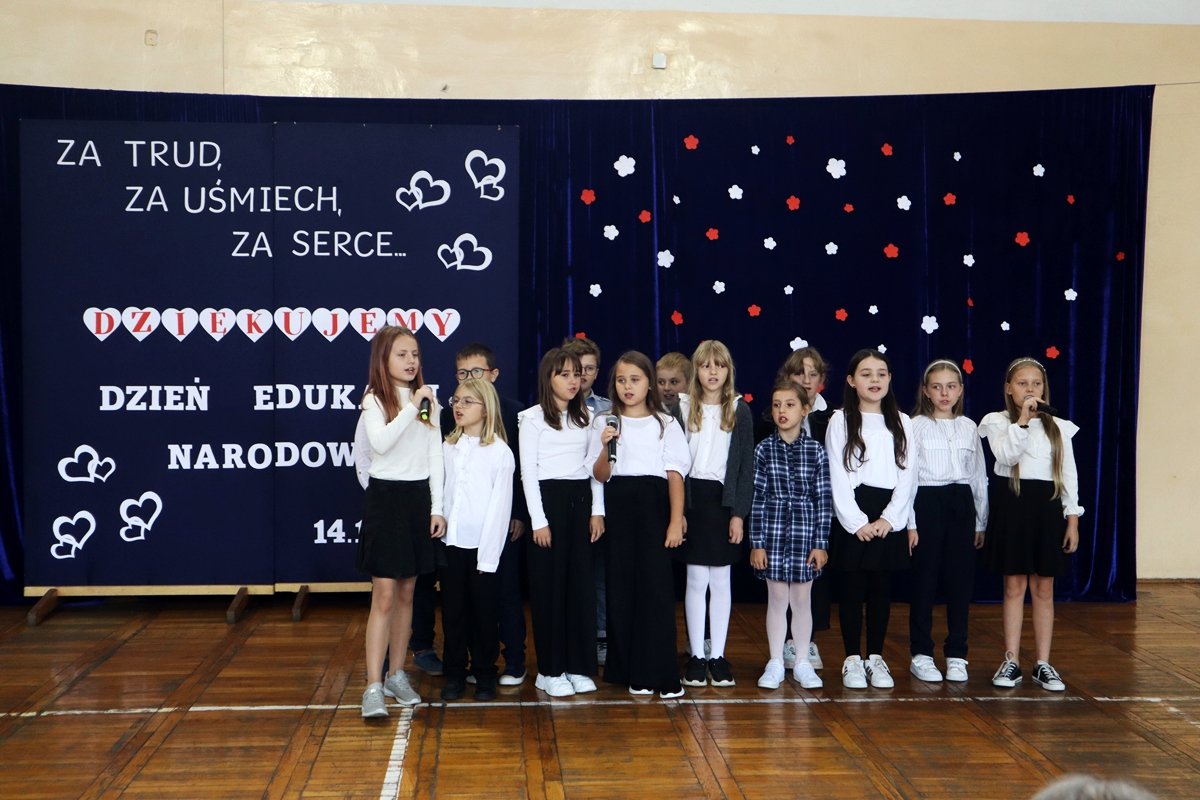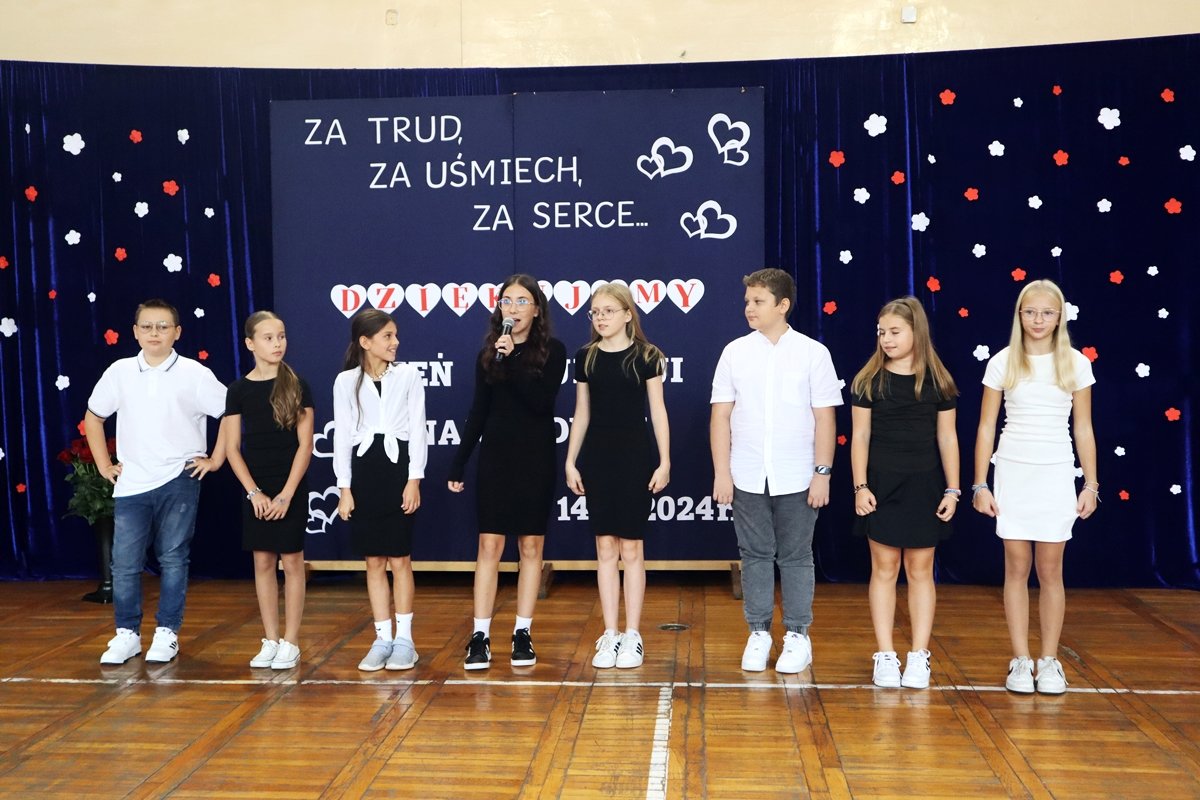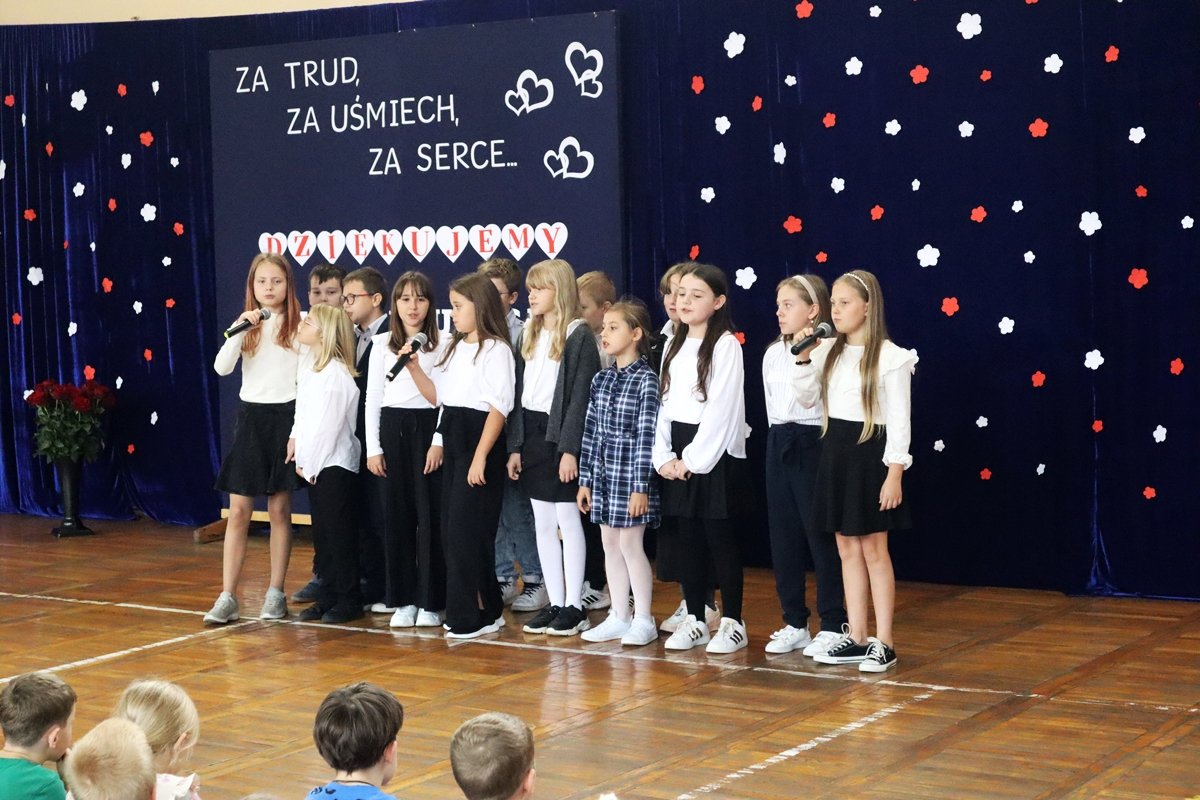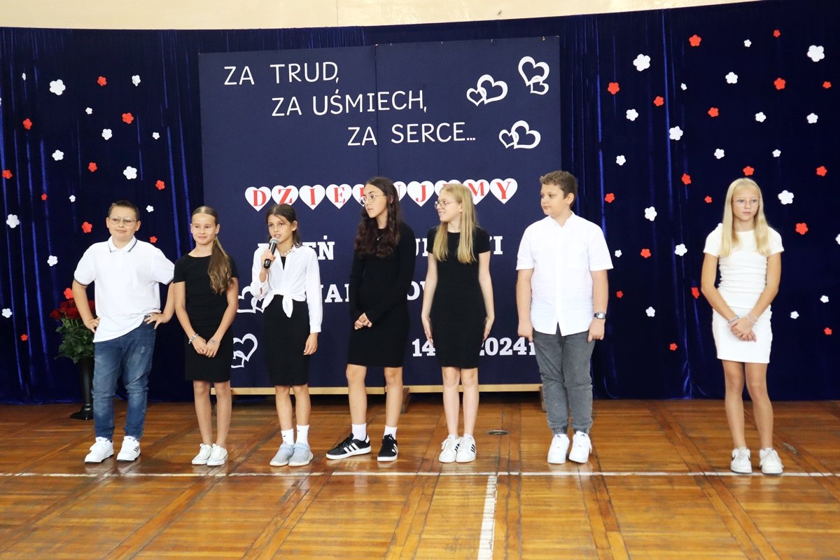 11 października w naszej szkole odbyła się akademia zorganizowana pod czujnym okiem nauczycieli języka angielskiego. Uczniowie uświetnili ten wyjątkowy dzień piosenkami, wierszykami oraz życzeniami w kierunku nauczycieli i pracowników obsługi, którzy dbają o to, aby w szkole było bezpiecznie. Na część artystyczną uroczystości składały się humorystyczne scenki z życia szkoły, a także wiązanka refleksji na temat życia szkoły i zawodu nauczyciela. Na zakończenie pięknej uroczystości głos zawarł dyrektor szkoły Jan Majewski, który złożył najserdeczniejsze życzenia wszystkim pracownikom szkoły, podziękował za trud włożony każdego dnia w kształcenie i wychowanie młodych pokoleń oraz wręczył Nagrody Dyrektora wyróżnionym pracownikom szkoły.