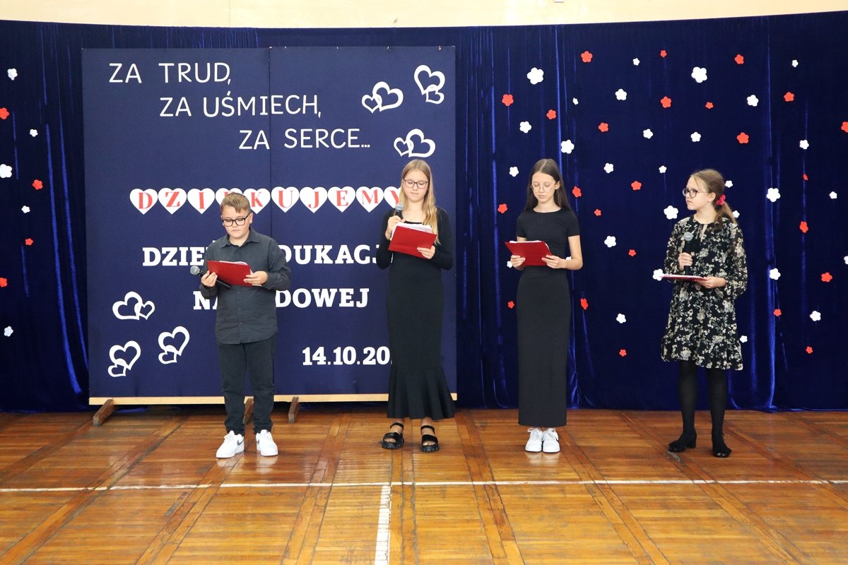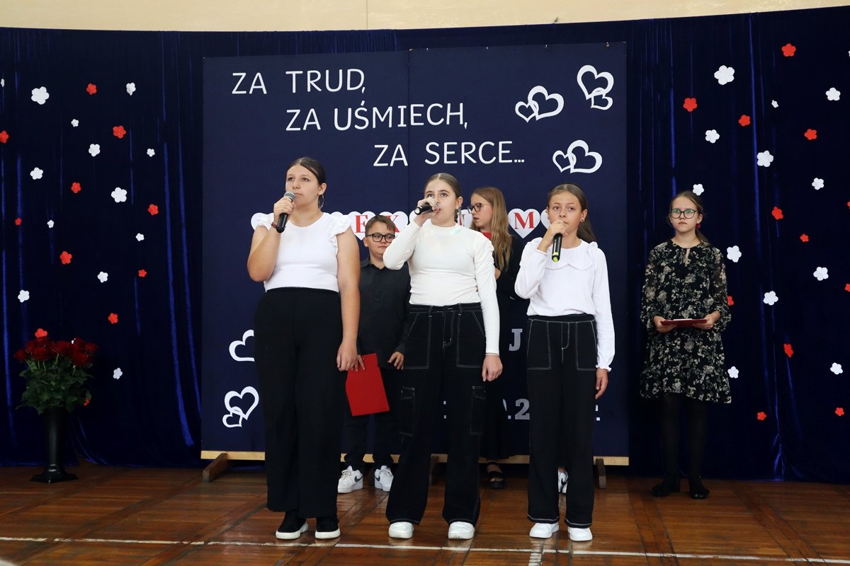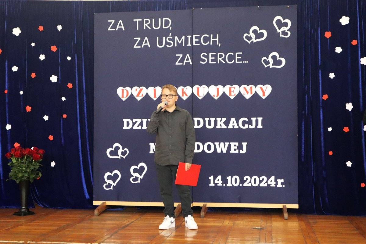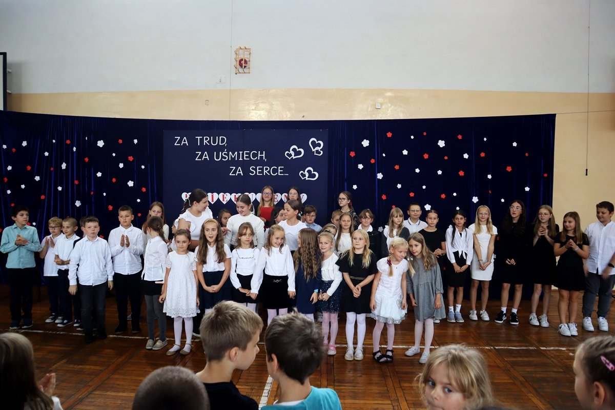 11 października w naszej szkole odbyła się akademia zorganizowana pod czujnym okiem nauczycieli języka angielskiego. Uczniowie uświetnili ten wyjątkowy dzień piosenkami, wierszykami oraz życzeniami w kierunku nauczycieli i pracowników obsługi, którzy dbają o to, aby w szkole było bezpiecznie. Na część artystyczną uroczystości składały się humorystyczne scenki z życia szkoły, a także wiązanka refleksji na temat życia szkoły i zawodu nauczyciela. Na zakończenie pięknej uroczystości głos zawarł dyrektor szkoły Jan Majewski, który złożył najserdeczniejsze życzenia wszystkim pracownikom szkoły, podziękował za trud włożony każdego dnia w kształcenie i wychowanie młodych pokoleń oraz wręczył Nagrody Dyrektora wyróżnionym pracownikom szkoły.