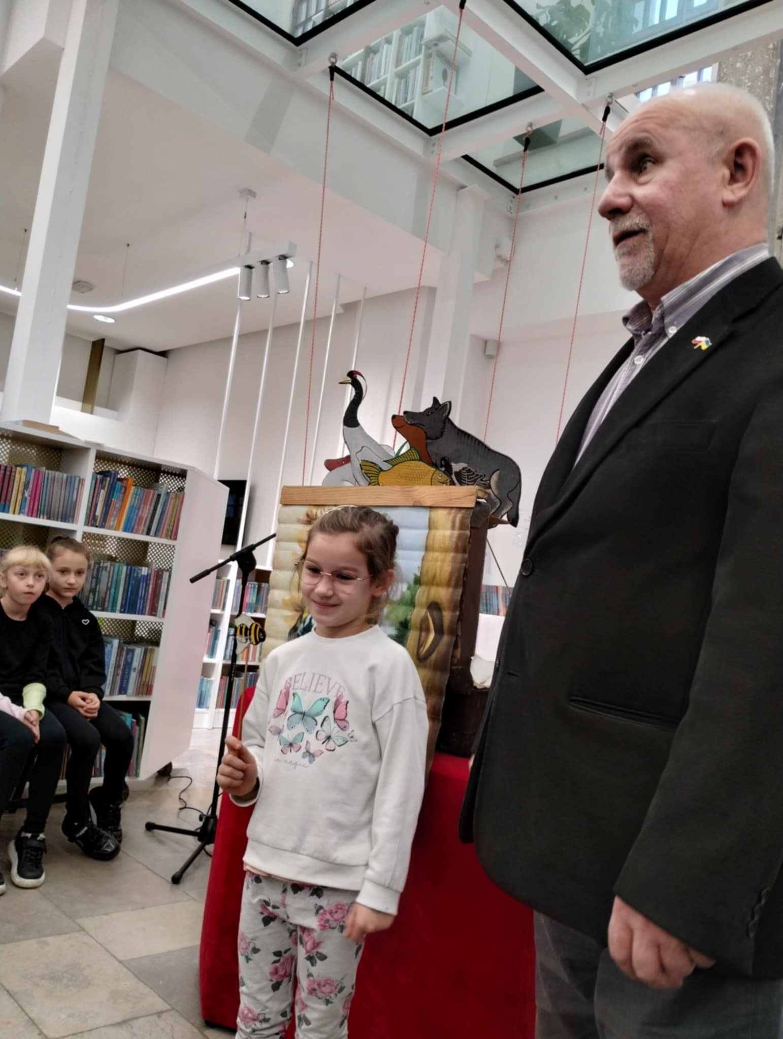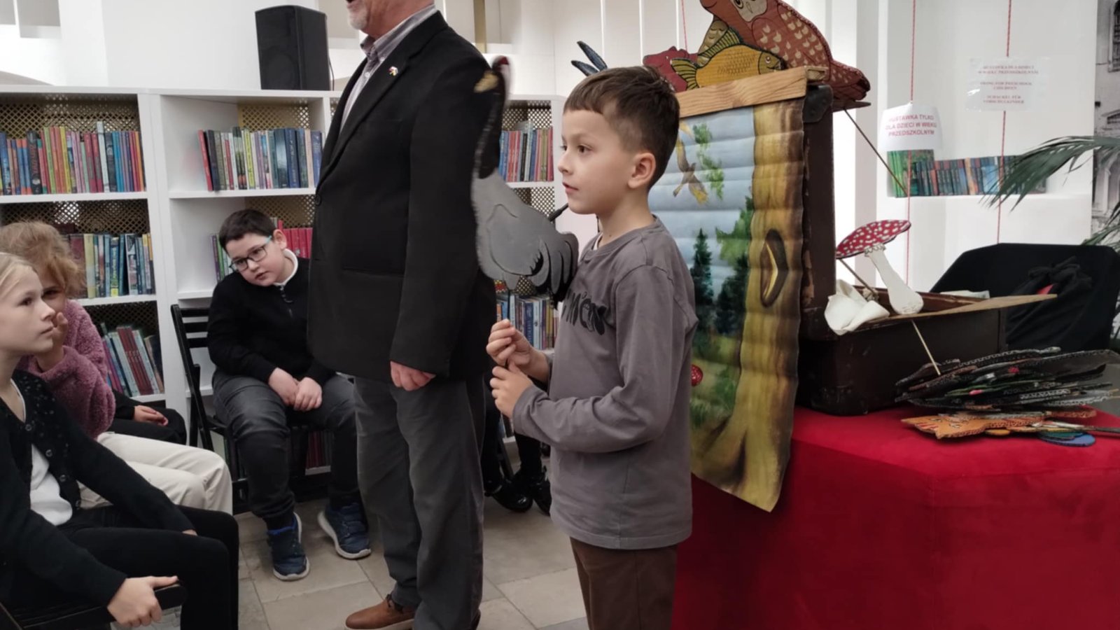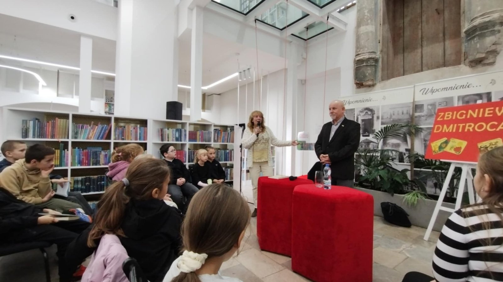 Spotkanie miało miejsce w Miejskiej Bibliotece Publicznej w Tarnogrodzie. Odrestaurowana biblioteka mieszcząca się w zabytkowej synagodze i znajdujące się w niej Muzeum Nożyczek zrobiły na nas ogromne wrażenie. Spotkanie autorskie przebiegało w bardzo przyjemnej atmosferze. Dowiedzieliśmy się kim jest poeta, ile autor napisał wierszy i opowiadań, czy ciężko się pisze wiersze. Na zaproszenie Pana Dimitrocy kilkoro z nas mogło wziąć udział w inscenizacji wiersza, prezentując pacynki – bohaterów wierszy wykonanych przez Panią Magdalenę – żonę pisarza.