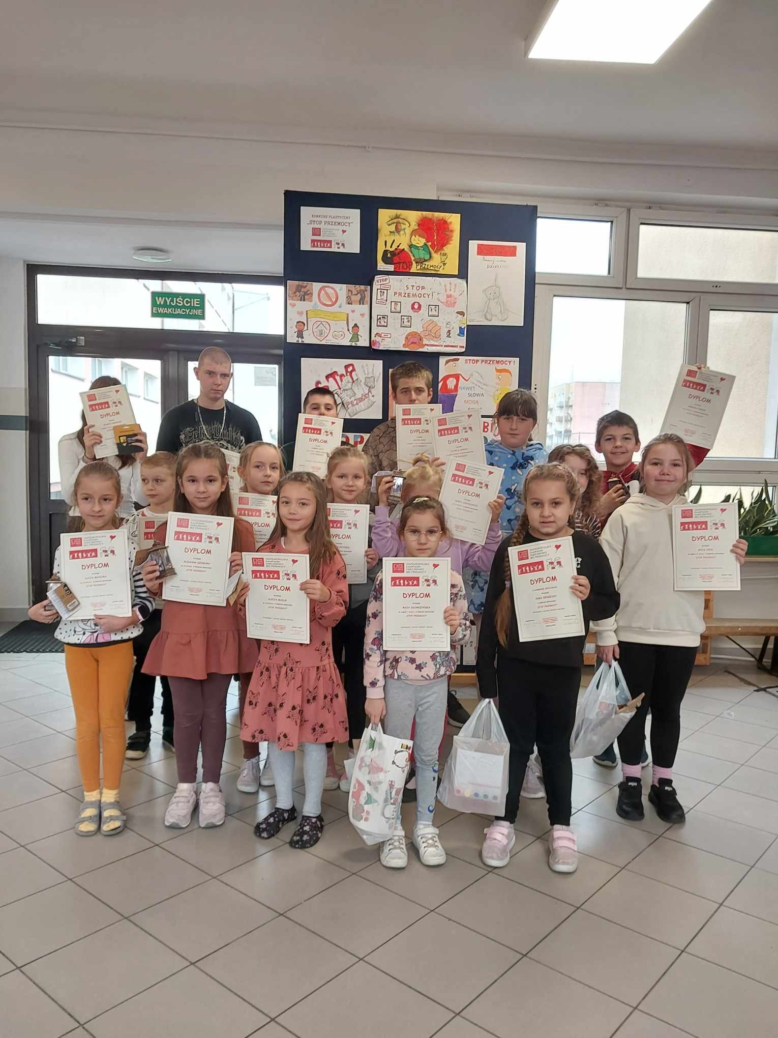 Wprawdzie Ogólnopolska Kampania Dzieciństwo Bez Przemocy dobiegła końca i wiele działań już za nami, to mamy przyjemność poinformować o wynikach konkursu "Stop Przemocy", który skierowany był do uczniów naszej szkoły. Zdajemy sobie sprawę, że jego tematyka nie była łatwa, tym bardziej cieszymy się, że uczniowie podjęli to wyzwanie i na konkurs wpłynęło 52 prace. Wszyscy wykazali się kreatywnością i ogromną wrażliwością na temat przewodni konkursu. Nagrodzonych zostało 20 prac. Dziękujemy za zaangażowanie i życzymy wielu twórczych sukcesów.