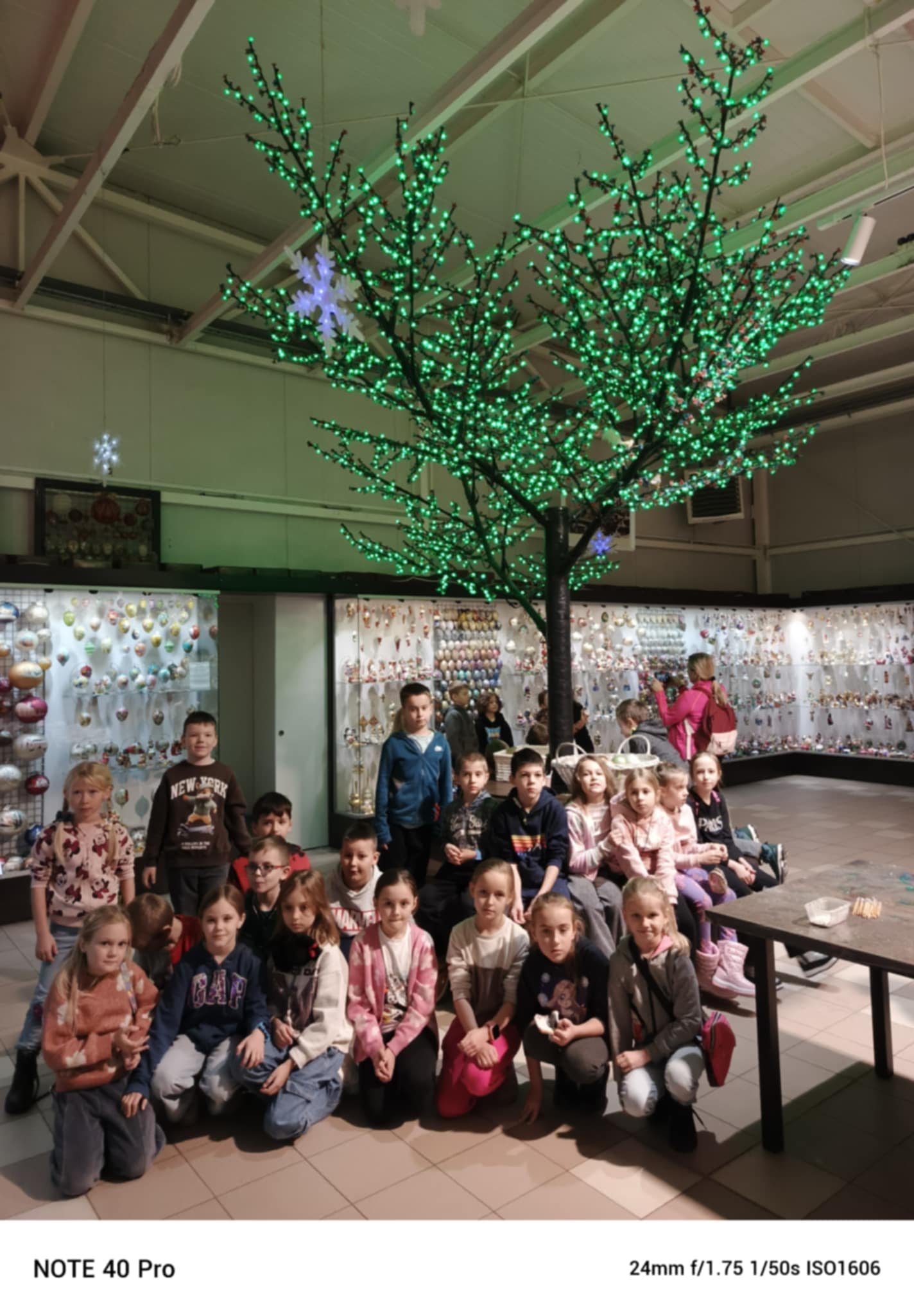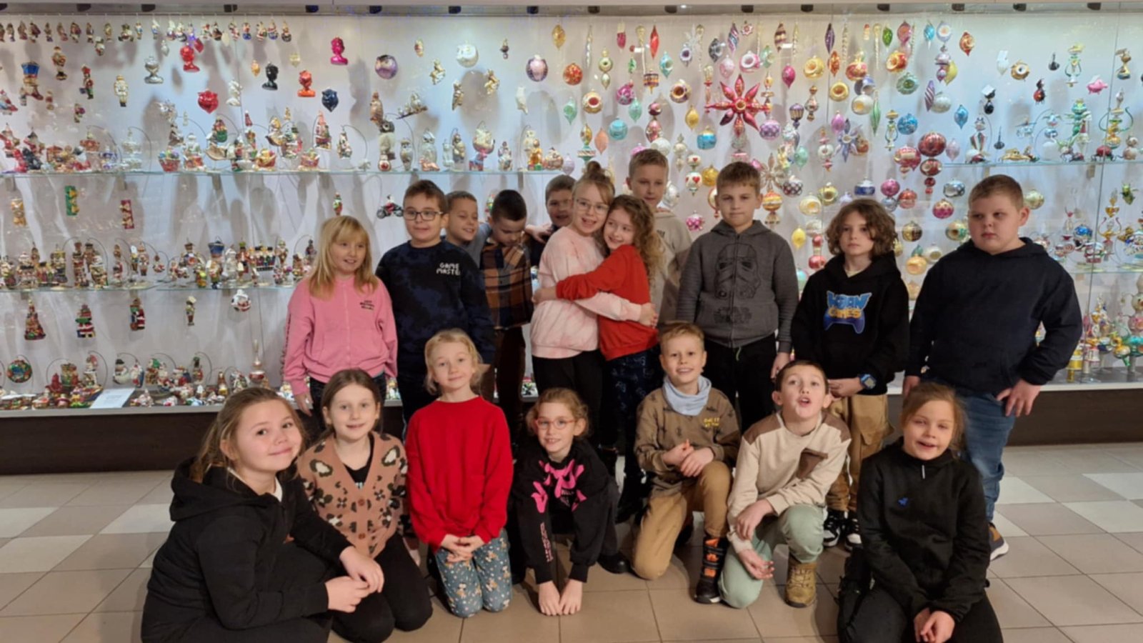 W listopadowy dzień uczniowie klas 2a,2b oraz 3c wybrali się na wyjątkową wycieczkę do Muzeum Bombki Choinkowej w Nowej Dębie. To magiczne miejsce pozwoliło dzieciom przenieść się w świat świątecznych tradycji, pełen barw, błyszczących ozdób i niesamowitych historii.