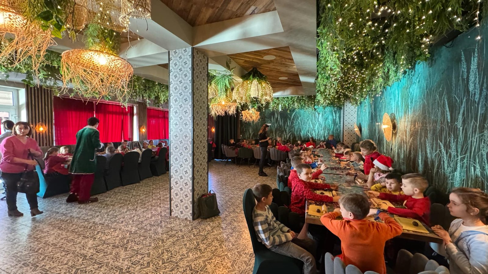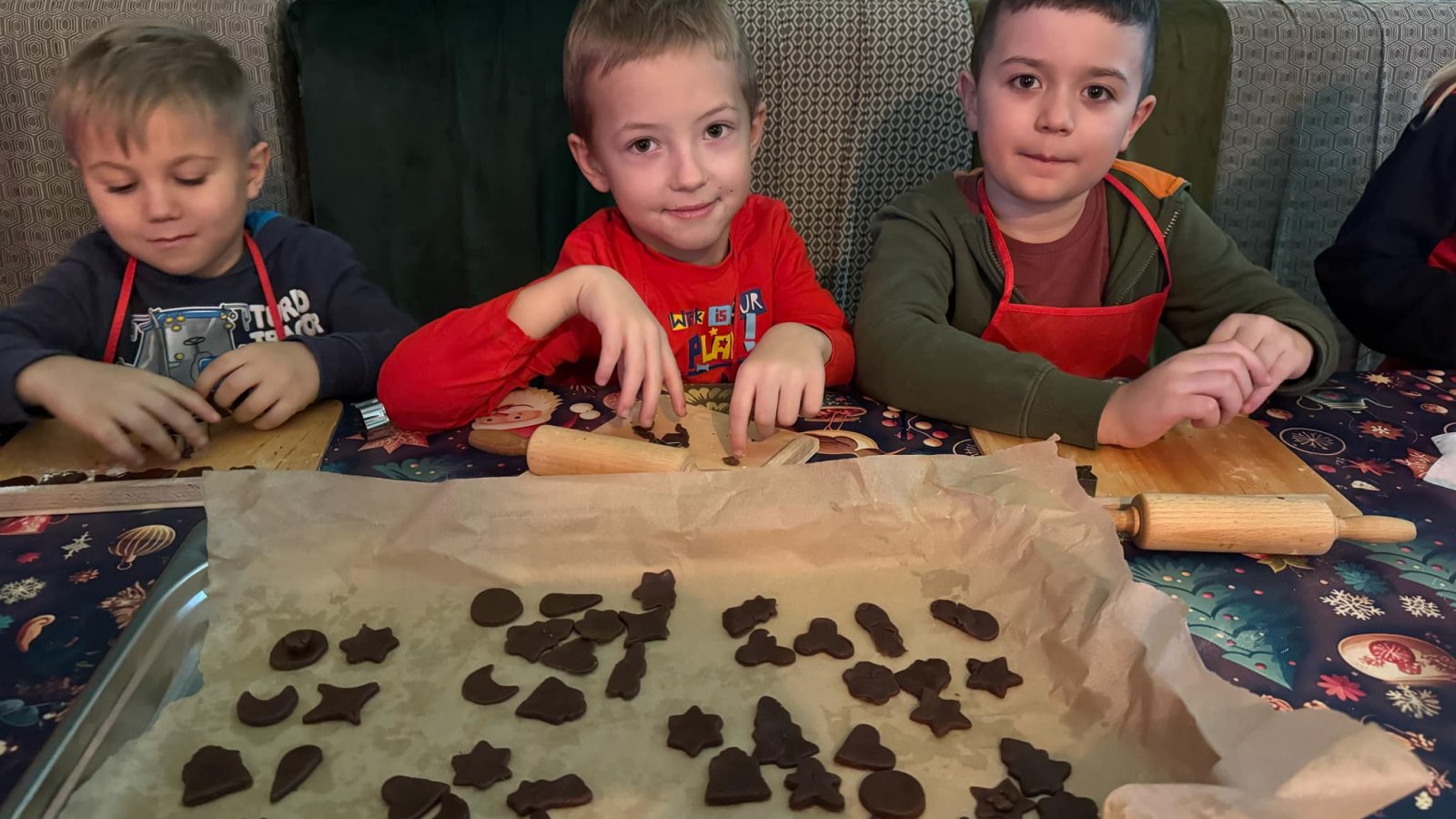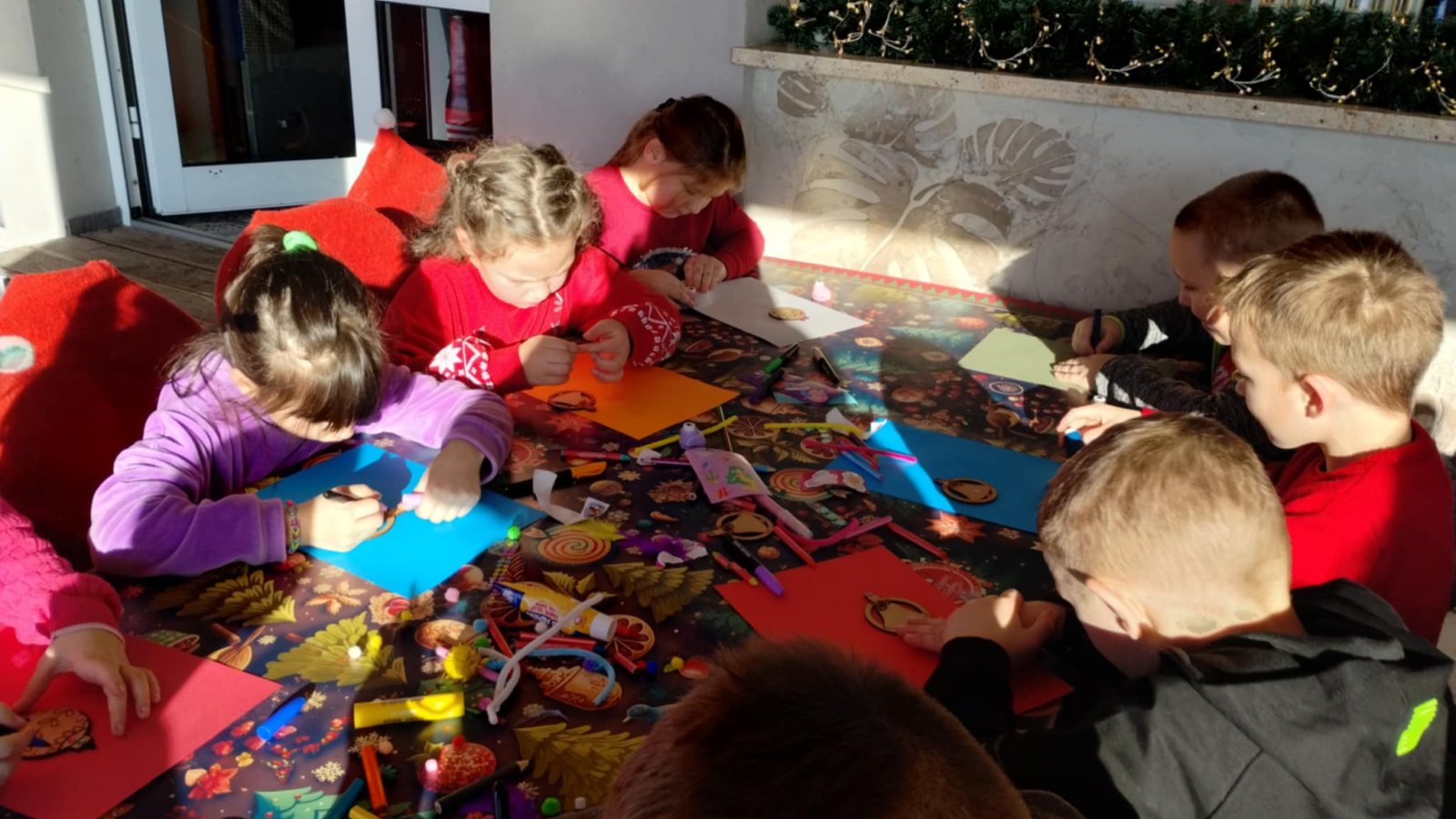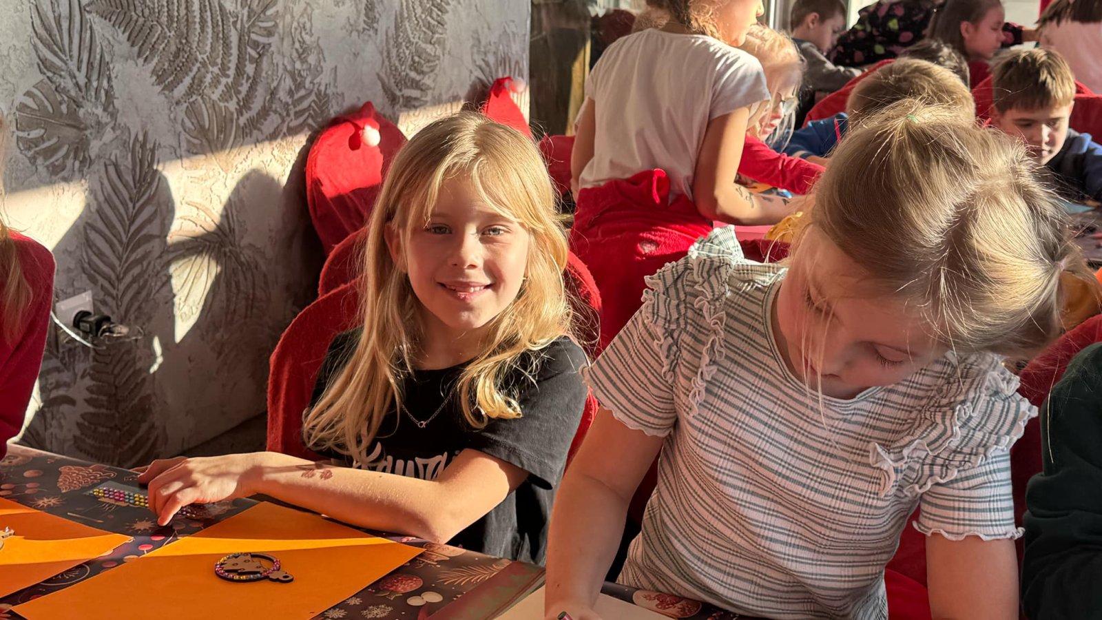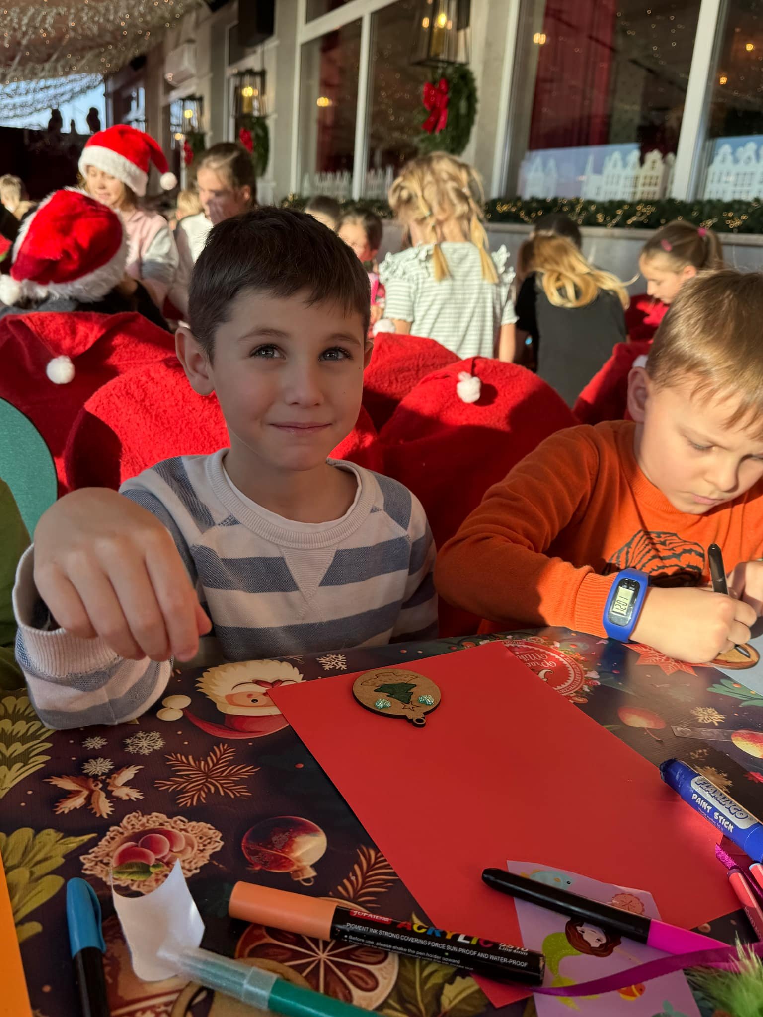 Pierwszym punktem programu były warsztaty pieczenia pierniczków. Dzieci z zapałem wałkowały ciasto, wycinały kształty choinek, gwiazdek i serduszek. Gotowe pierniczki, jeszcze ciepłe, nie tylko pięknie wyglądały, ale i smakowały wyśmienicie! Po słodkich warsztatach uczniowie wzięli udział w konkursie na zgadywanie świątecznych zagadek. Pytania dotyczyły tradycji bożonarodzeniowych, kolęd i postaci związanych ze świętami. Wspólne zgadywanie wywołało mnóstwo śmiechu i rywalizacji. Kolejną atrakcją było dekorowanie bombek. Dzieci, z pomocą elfów, malowały kule różnokolorowymi farbami i ozdabiały je brokatem. Każda bombka była wyjątkowa i odzwierciedlała kreatywność małych artystów. Poza tym uczniowie przygotowali piękne laurki dla Świętego Mikołaja, na których dziękowali za prezenty i składali mu życzenia świąteczne.