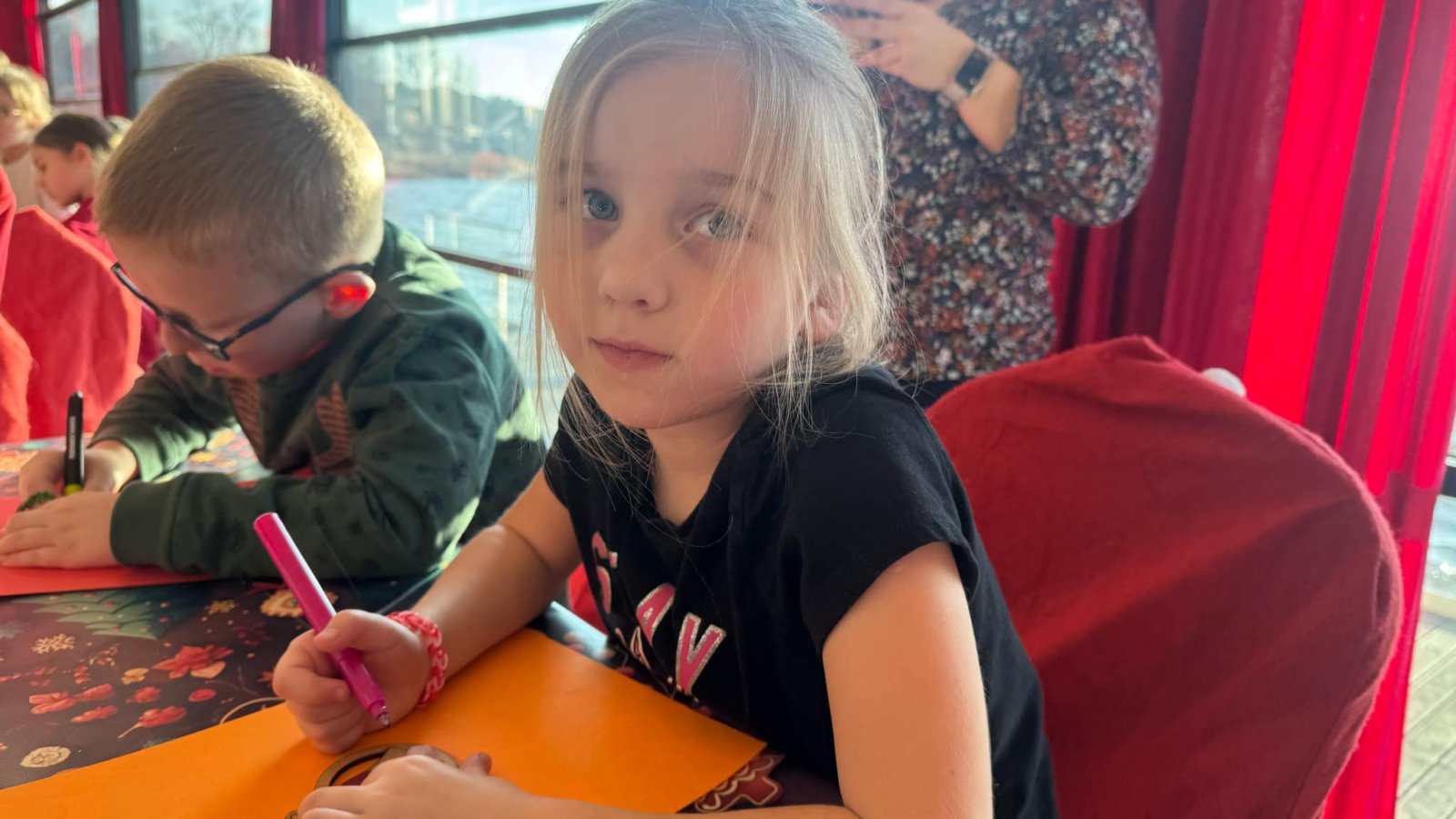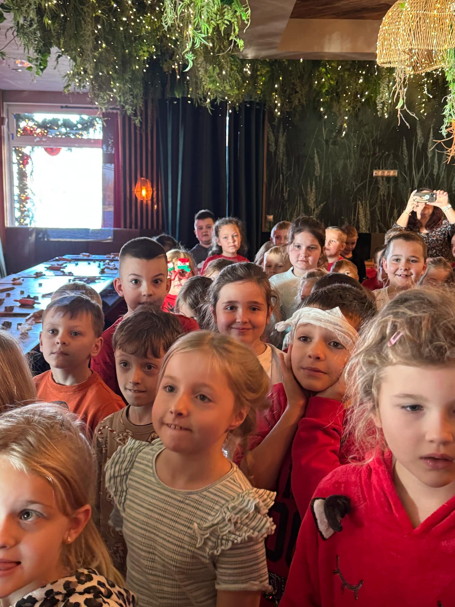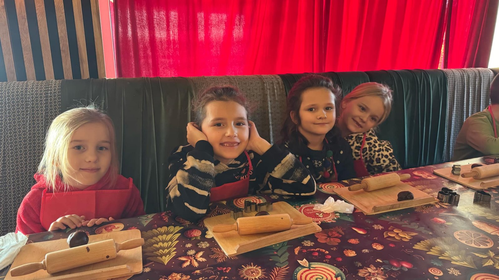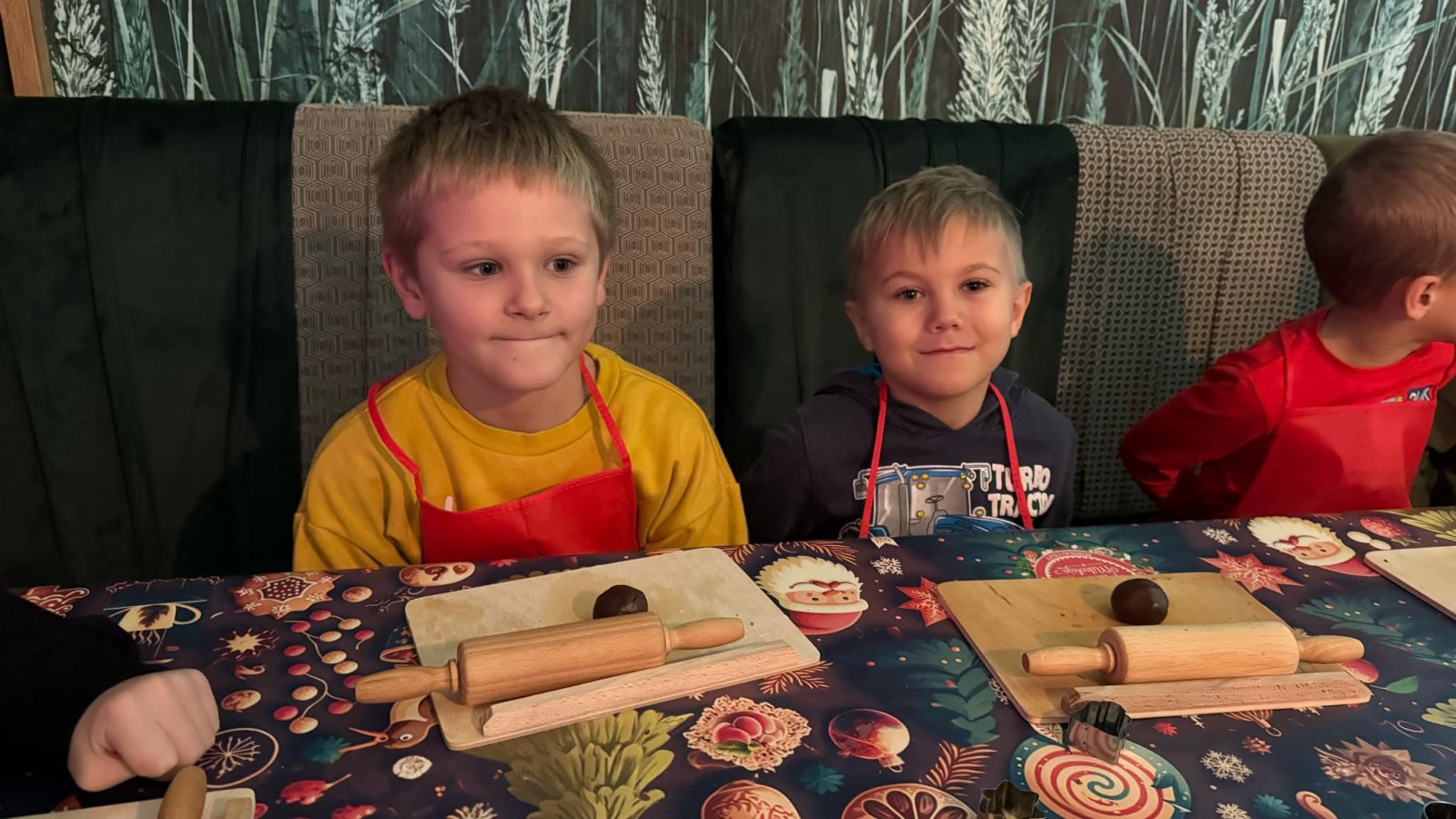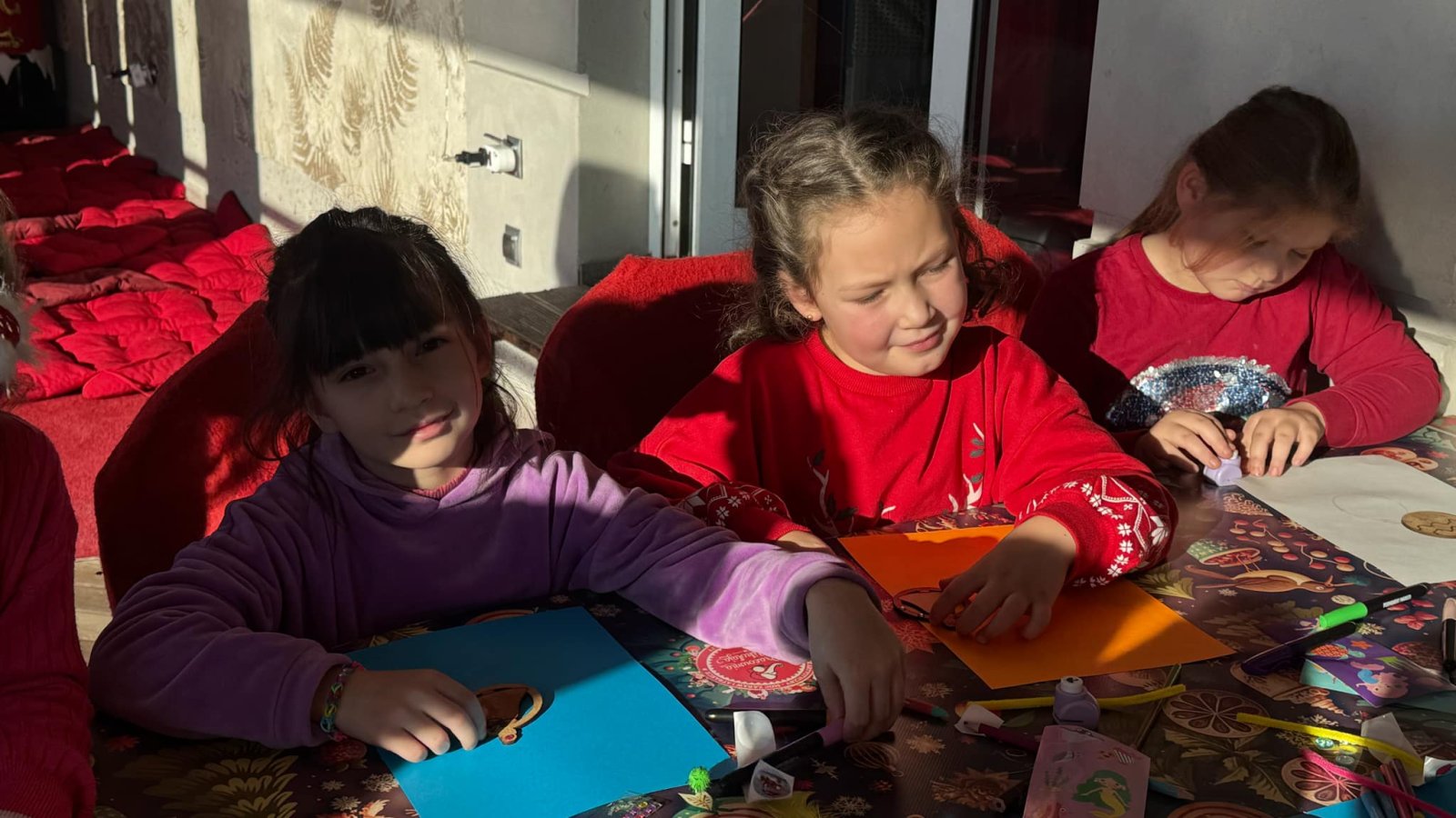 Pierwszym punktem programu były warsztaty pieczenia pierniczków. Dzieci z zapałem wałkowały ciasto, wycinały kształty choinek, gwiazdek i serduszek. Gotowe pierniczki, jeszcze ciepłe, nie tylko pięknie wyglądały, ale i smakowały wyśmienicie! Po słodkich warsztatach uczniowie wzięli udział w konkursie na zgadywanie świątecznych zagadek. Pytania dotyczyły tradycji bożonarodzeniowych, kolęd i postaci związanych ze świętami. Wspólne zgadywanie wywołało mnóstwo śmiechu i rywalizacji. Kolejną atrakcją było dekorowanie bombek. Dzieci, z pomocą elfów, malowały kule różnokolorowymi farbami i ozdabiały je brokatem. Każda bombka była wyjątkowa i odzwierciedlała kreatywność małych artystów. Poza tym uczniowie przygotowali piękne laurki dla Świętego Mikołaja, na których dziękowali za prezenty i składali mu życzenia świąteczne.
