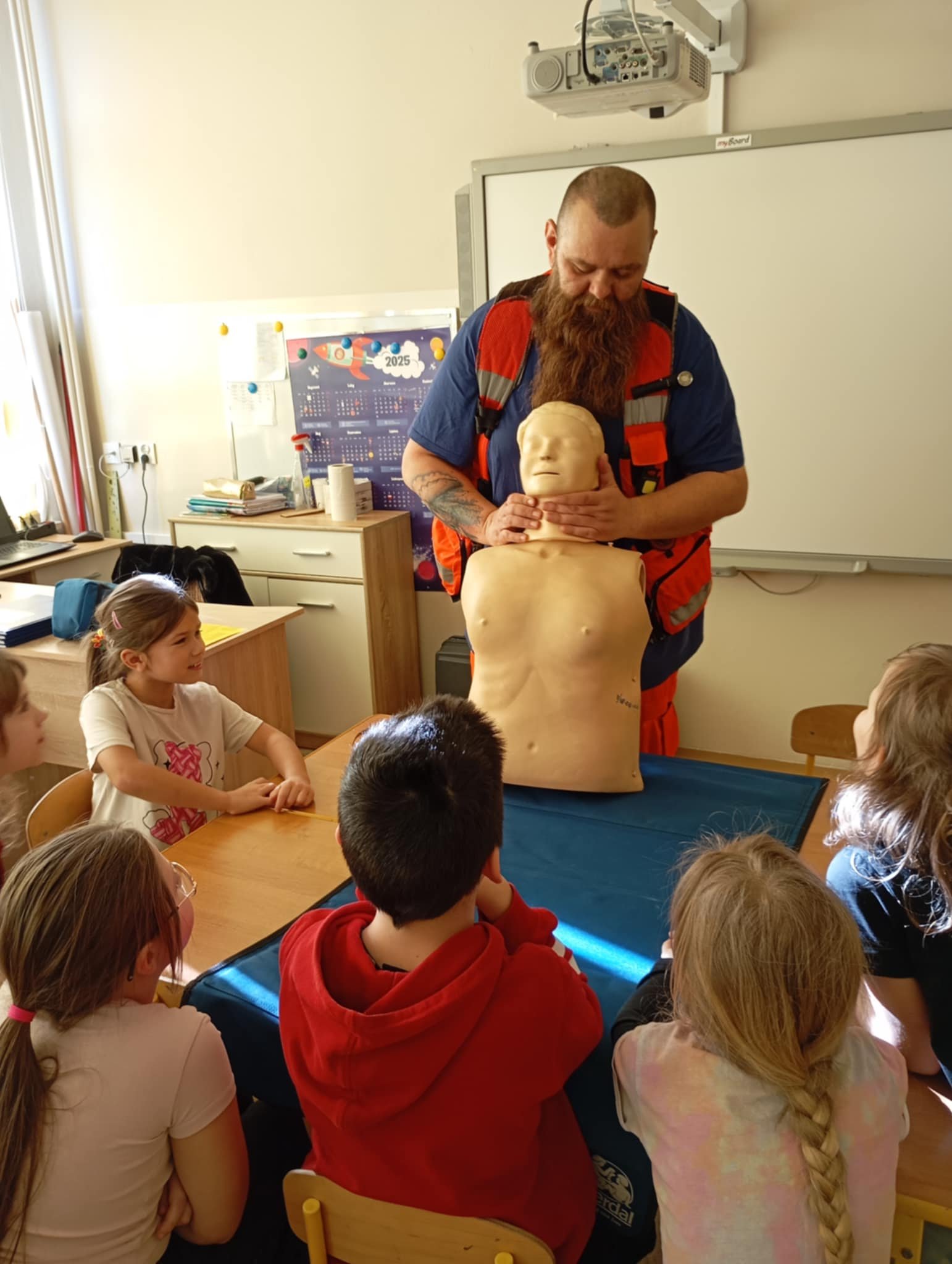 We współpracy z Rejonową Stacją Pogotowia Ratunkowego i Transportu Sanitarnego w Biłgoraju wychowankowie świetlicy szkolnej wzięli udział w warsztatach na temat zasad udzielania pierwszej pomocy przedmedycznej, podczas których mieli okazję nauczyć się podstawowych, ale kluczowych umiejętności, które mogą uratować życie. Celem zajęć było uwrażliwienie uczniów na potrzeby osób chorych na padaczkę, zrozumienie ich potrzeb, rozwijanie empatii oraz likwidowanie uprzedzeń i stereotypów.
