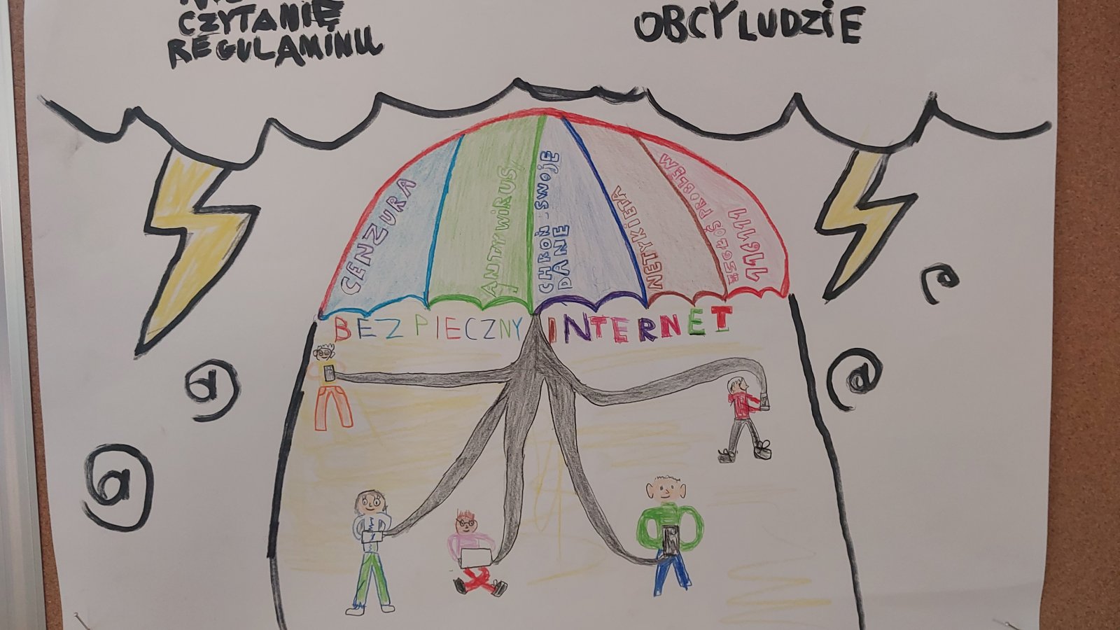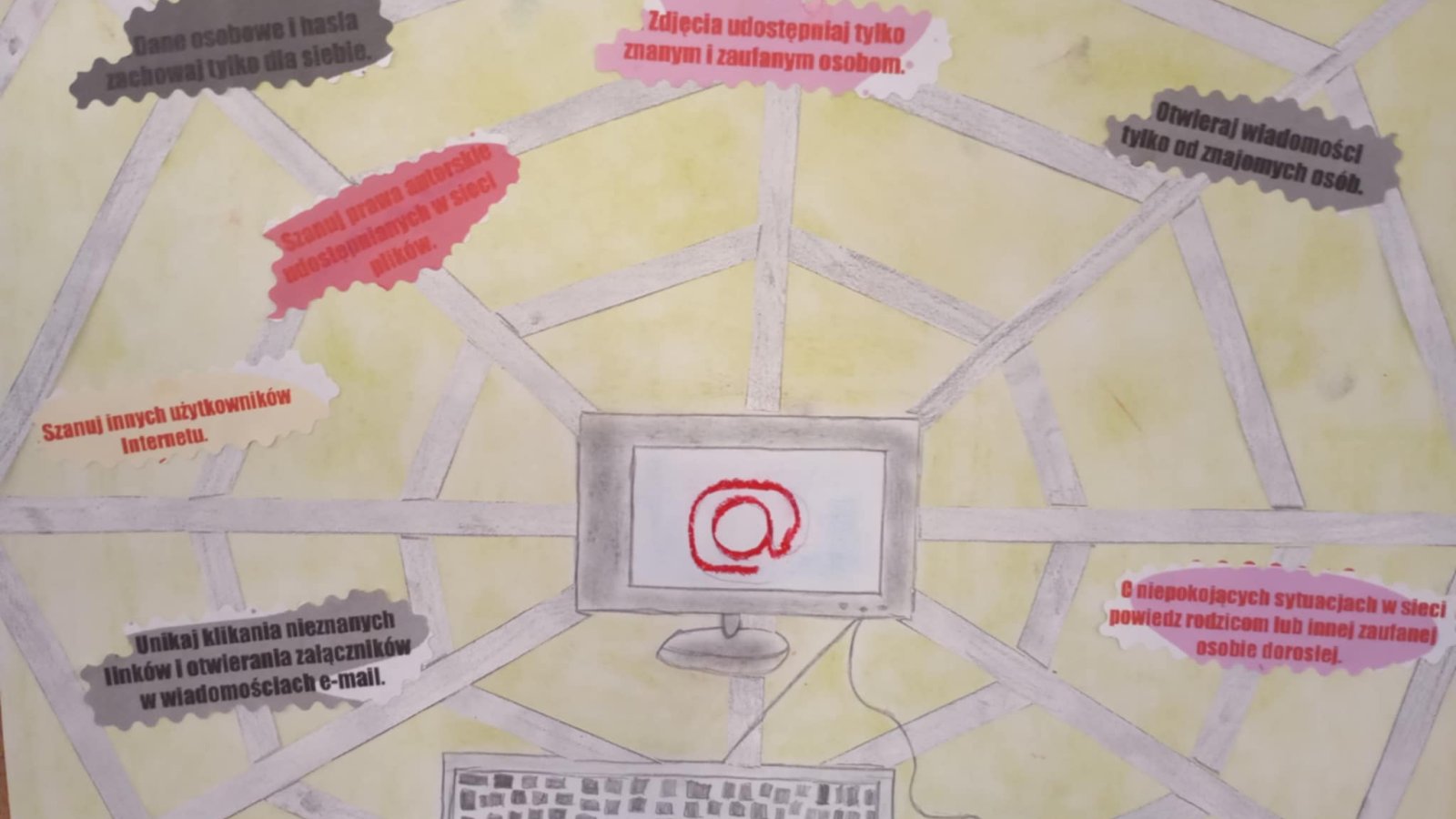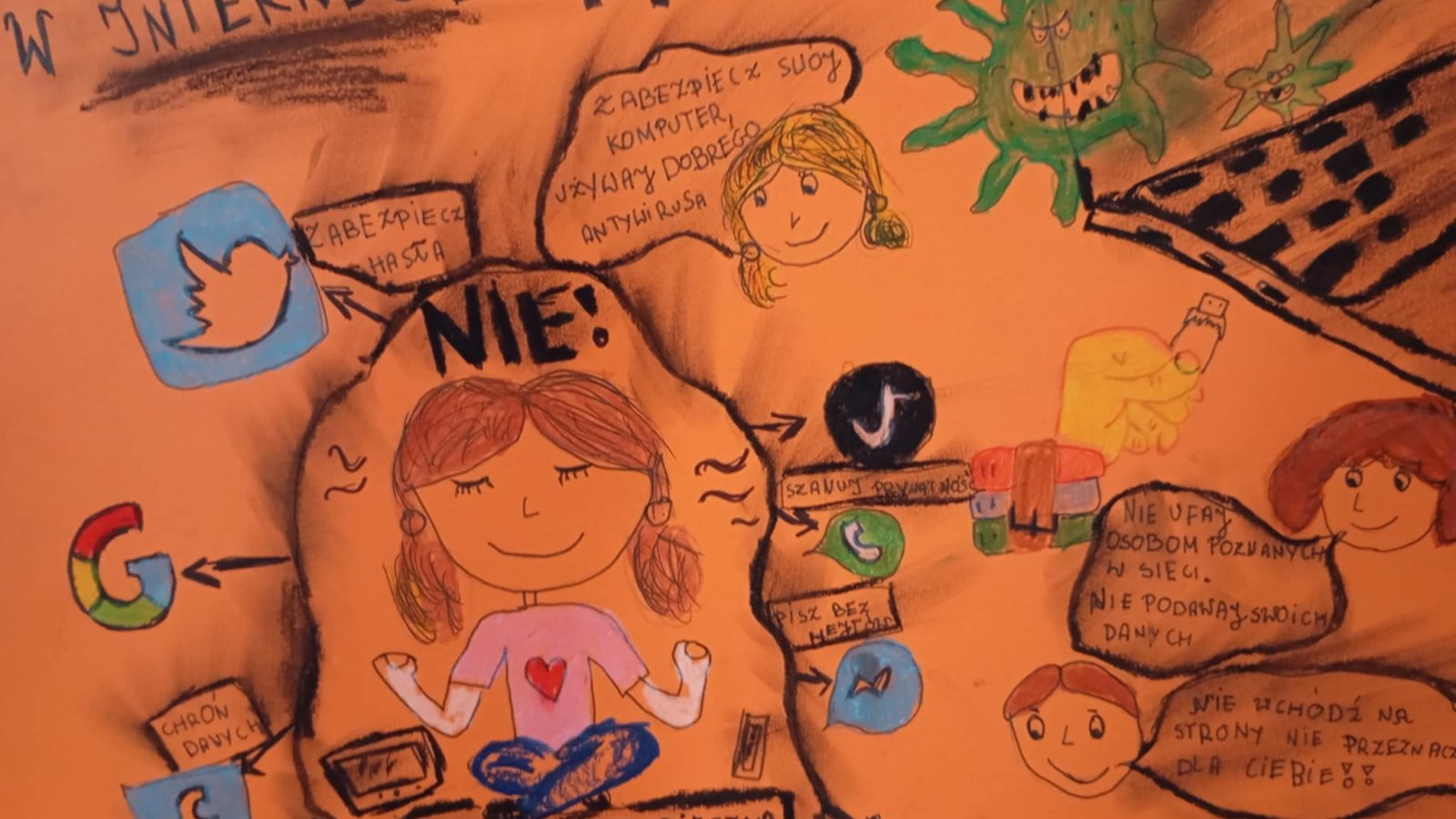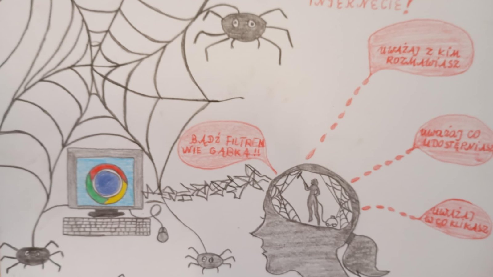 Z radością informujemy, że konkurs plastyczny „Bądź bezpieczny w Internecie” został rozstrzygnięty. Jego celem było przede wszystkim propagowanie wiedzy o Internecie i jego zagrożeniach, ale też rozwijanie pasji malowania czy rysowania jaką mają nasi uczniowie. Cieszy nas fakt zmierzenia się tak naprawdę z niełatwym tematem, ale bardzo ważnym. Świadomość zagrożeń internetowych jest dziś niezbędną wiedzą dla bezpieczeństwa dzieci i młodzieży. Wykonane prace mówią o tym jasno i czytelnie, a hasła w nich zawarte są cennym przekazem dla nas wszystkich.