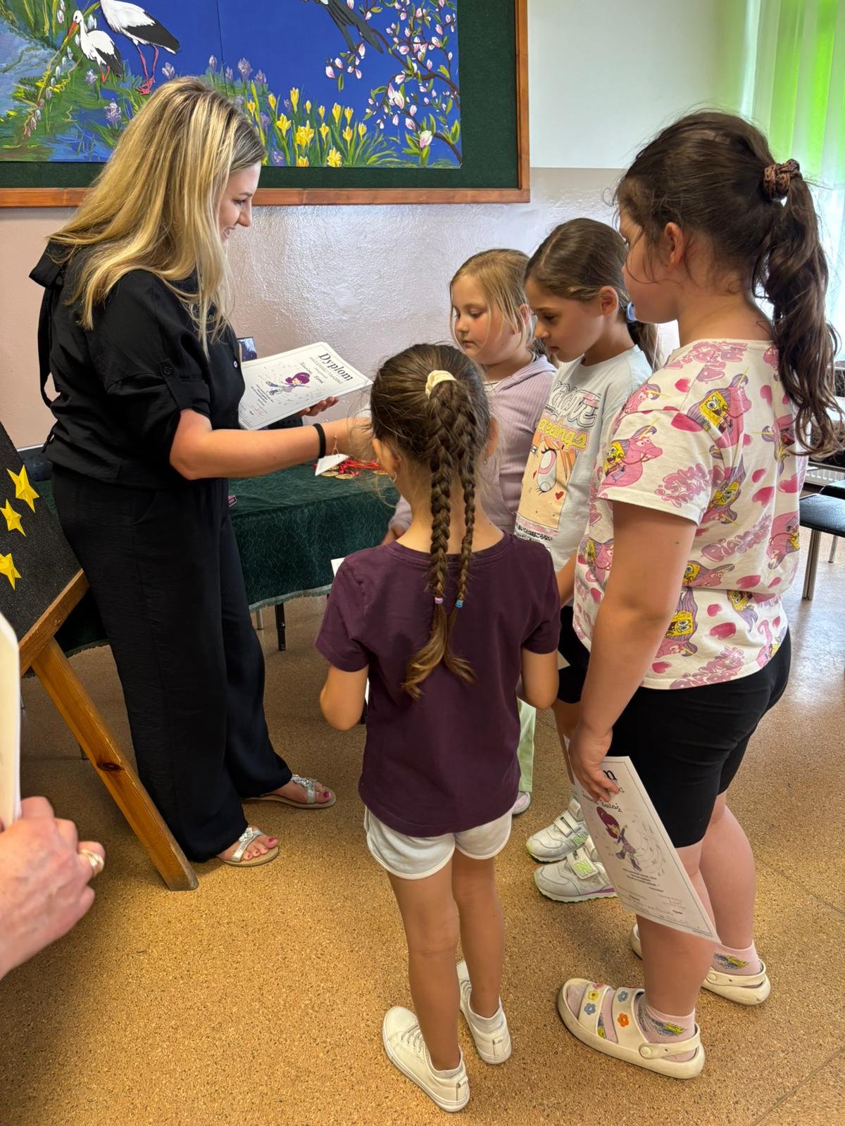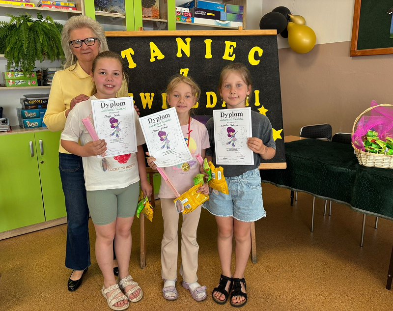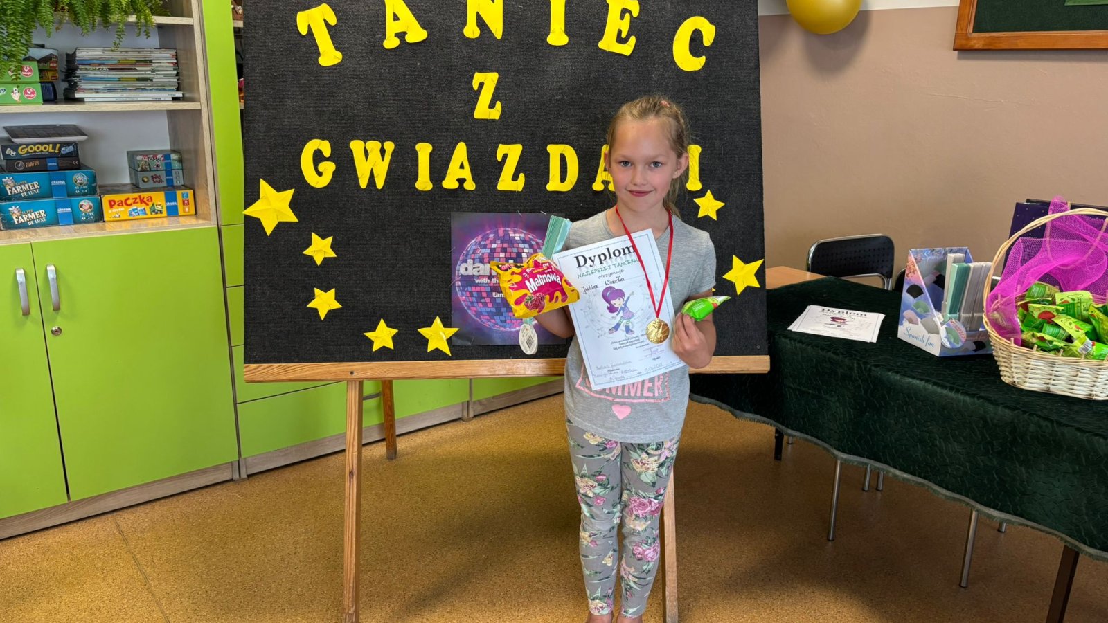 W naszej szkole również tanecznych talentów nie brakuje. Przekonaliśmy się o tym podczas świetlicowego konkursu „Taniec z gwiazdami” dla uczniów z klas I – III. Konkurs odbył się 17 czerwca i przyciągnął zespoły taneczne oraz indywidualnych tancerzy. Każdy uczestnik zaangażował wszystkie partie ciała i wykazał się poczuciem rytmu, a co najważniejsze taniec sprawił mu ogromną radość. Nad przebiegiem konkursu czuwało jury, które oceniało tancerzy. To nie było łatwe zadanie. Każdy zasłużył na najwyższe miejsce. Dnia 24 czerwca ogłoszone zostały wyniki. Tancerze otrzymali medale, dyplomy i drobne upominki. Wszystkim towarzyszył uśmiech i poczucie, że warto było zatańczyć w konkursie.
