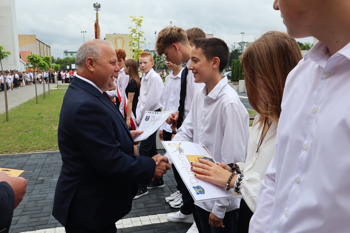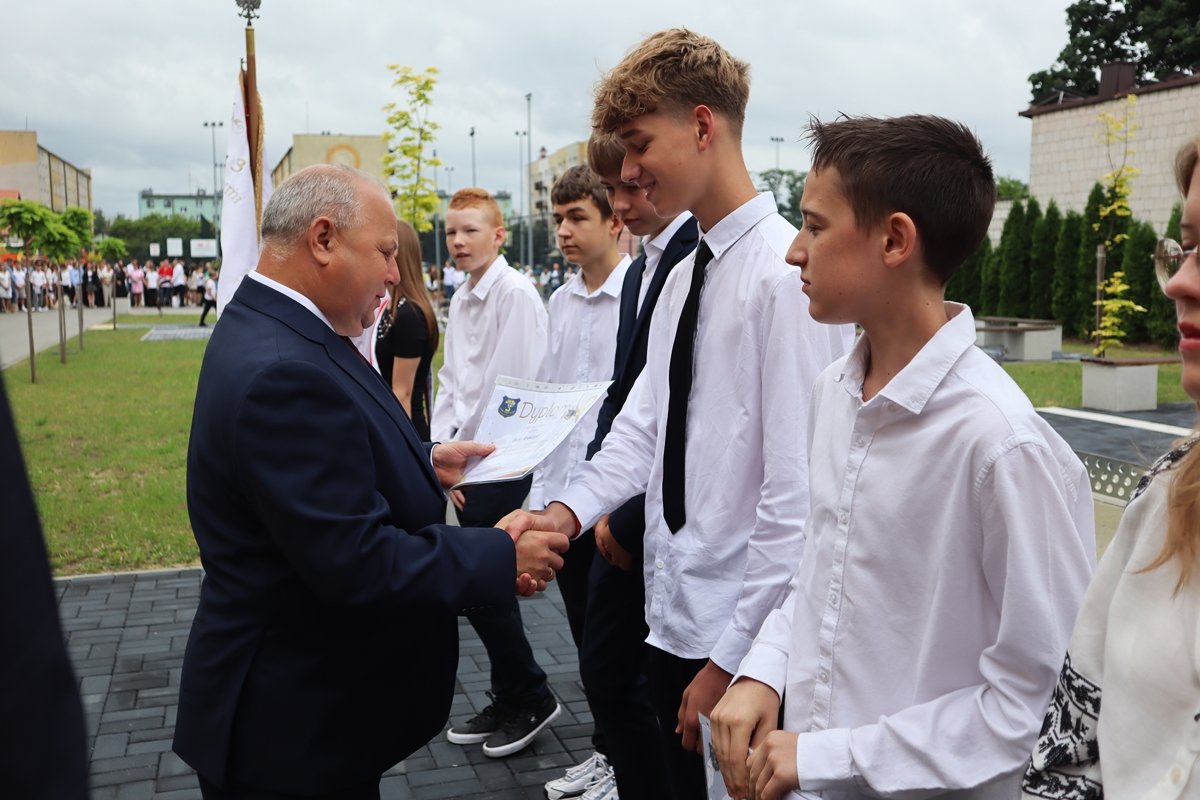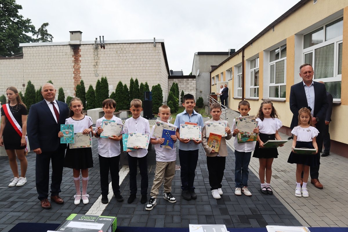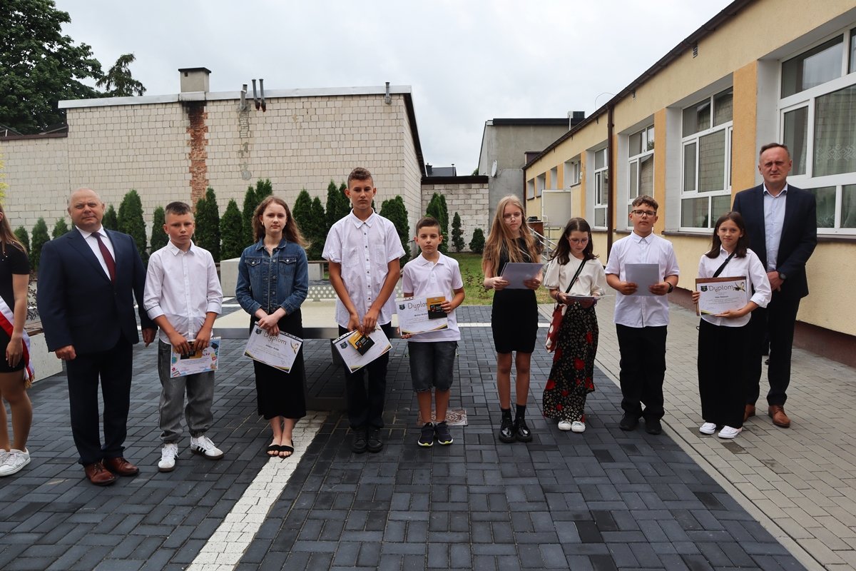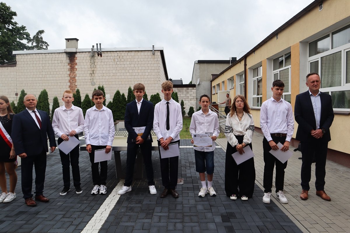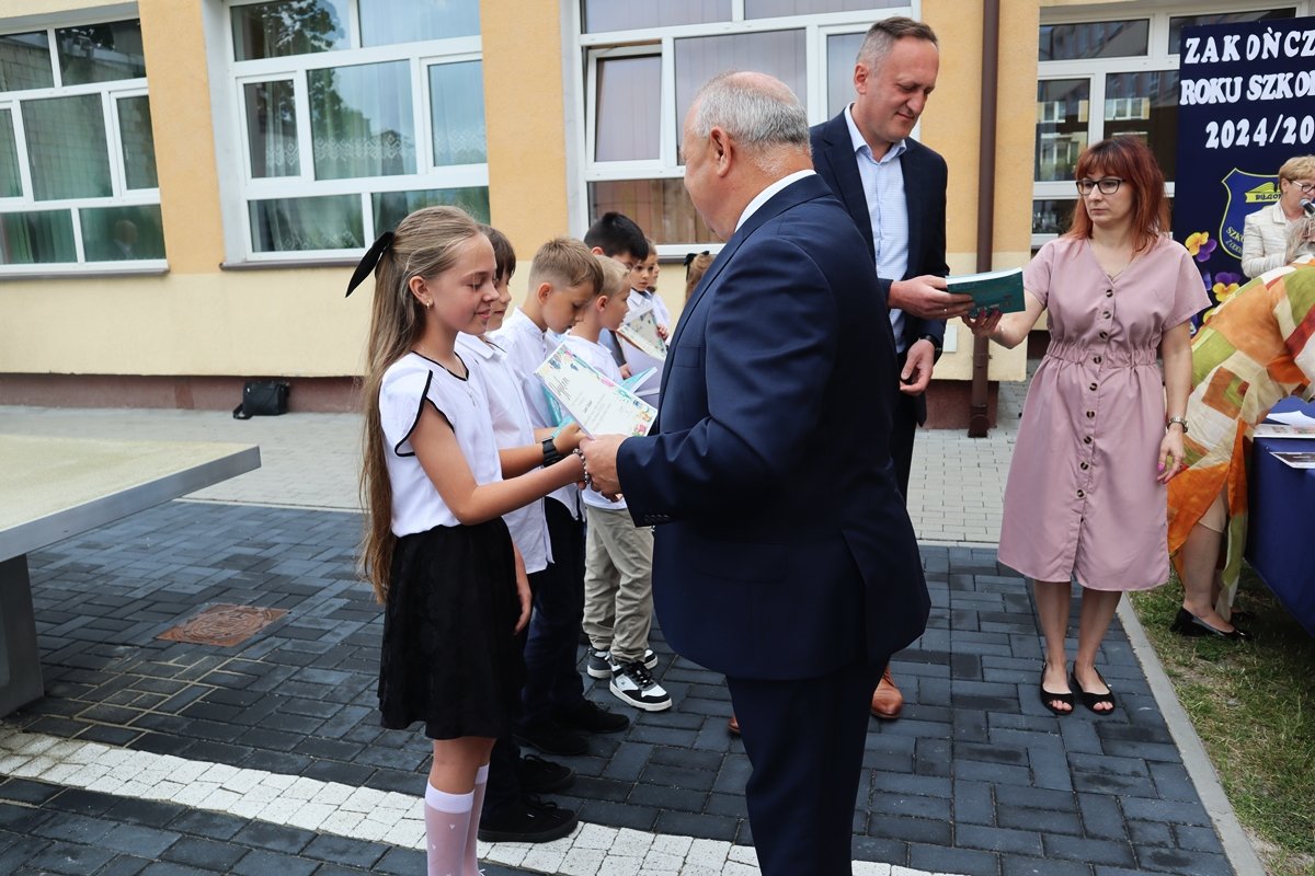 W piątek, 27 czerwca, w wyjątkowej atmosferze zakończyliśmy rok szkolny 2024/2025. Tegoroczna uroczystość odbyła się na świeżym powietrzu, w miejscu nowo powstałego skweru tuż przy naszej szkole. To piękne, zielone otoczenie nadało wydarzeniu szczególny, uroczysty charakter.