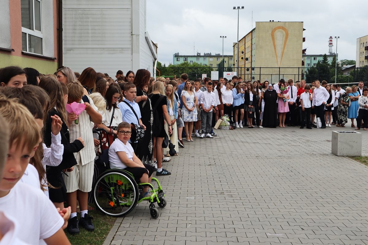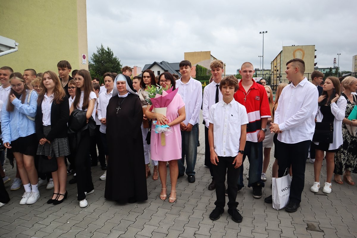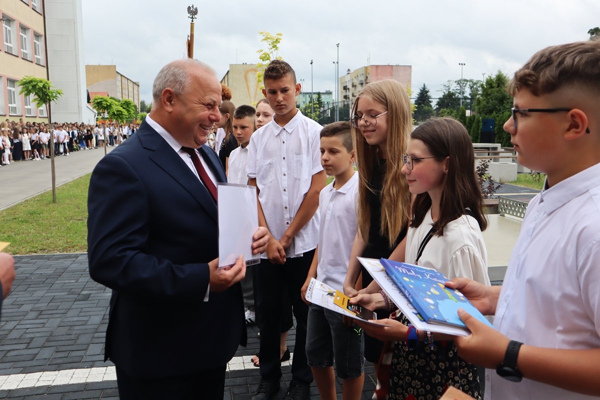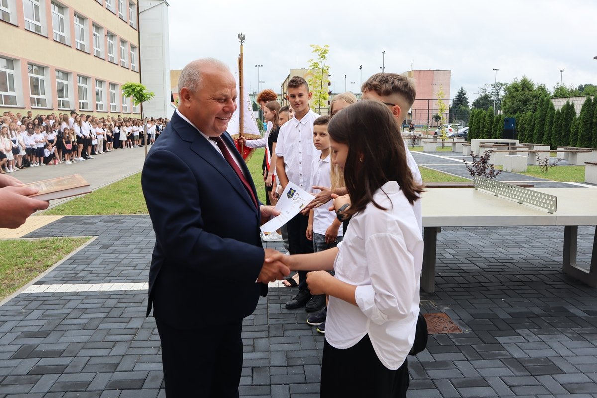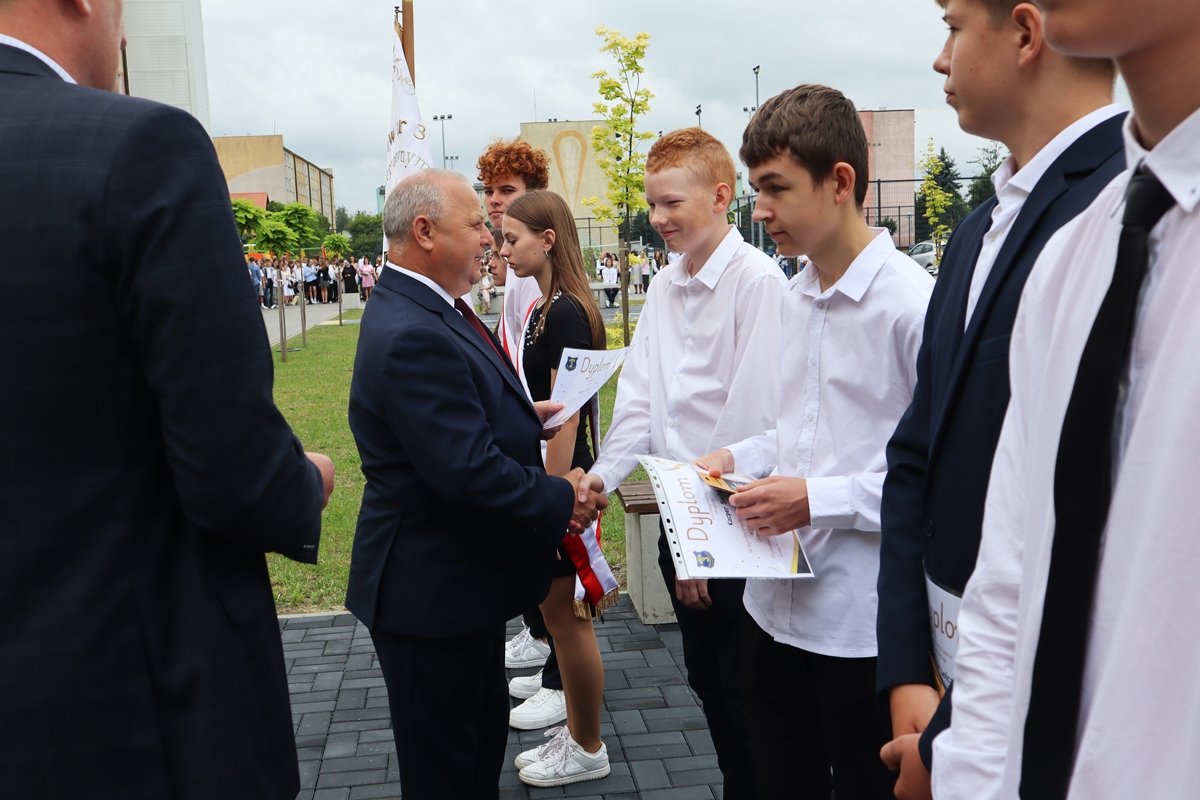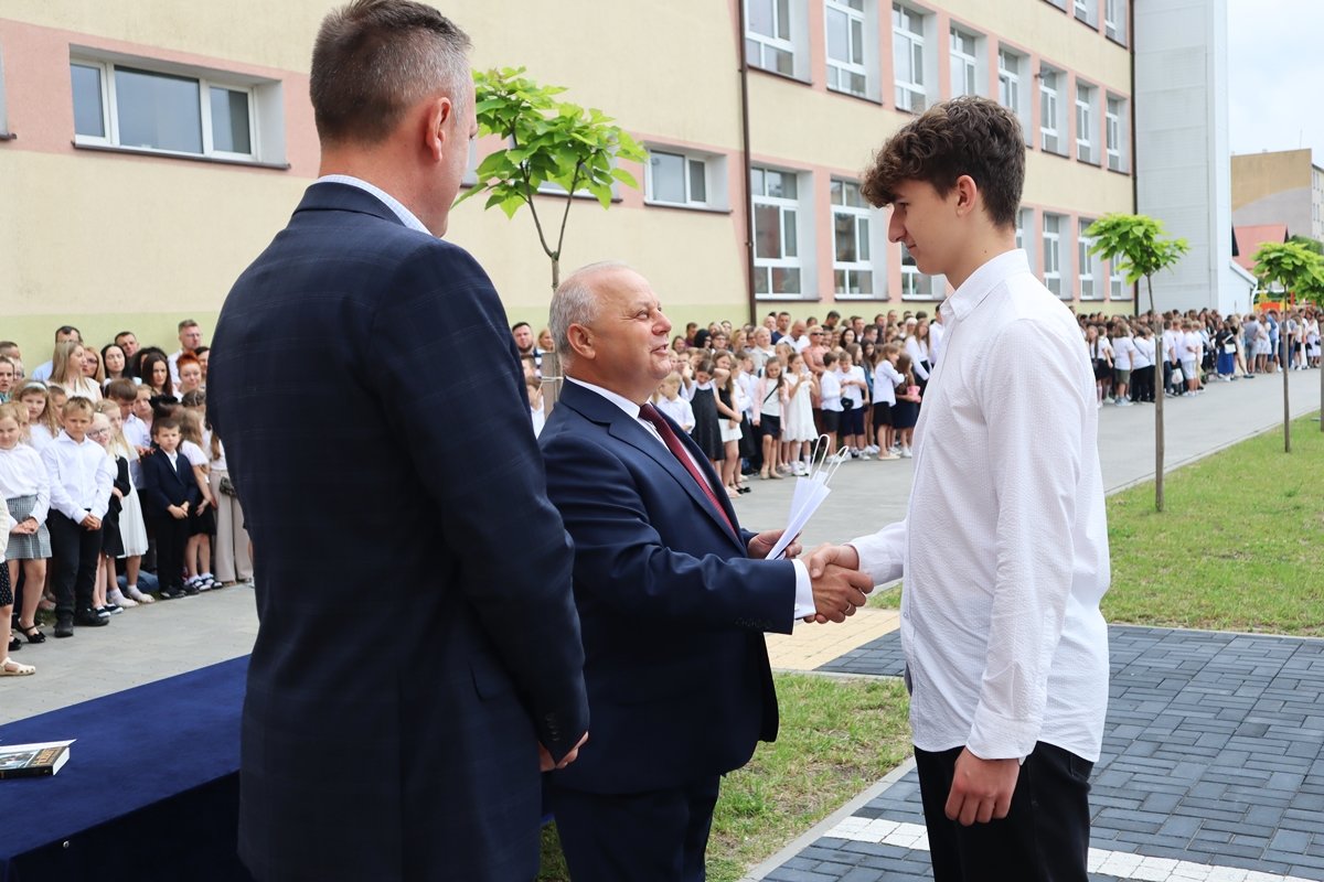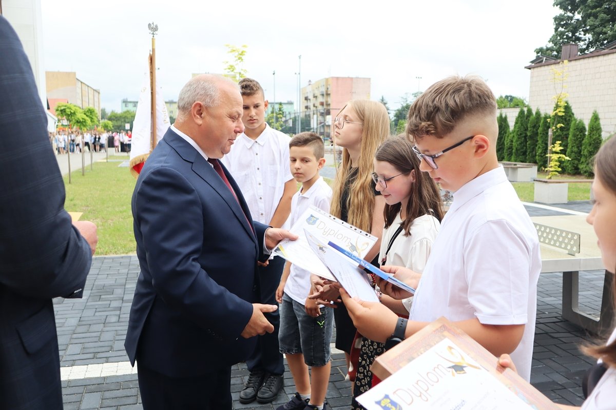 W piątek, 27 czerwca, w wyjątkowej atmosferze zakończyliśmy rok szkolny 2024/2025. Tegoroczna uroczystość odbyła się na świeżym powietrzu, w miejscu nowo powstałego skweru tuż przy naszej szkole. To piękne, zielone otoczenie nadało wydarzeniu szczególny, uroczysty charakter.