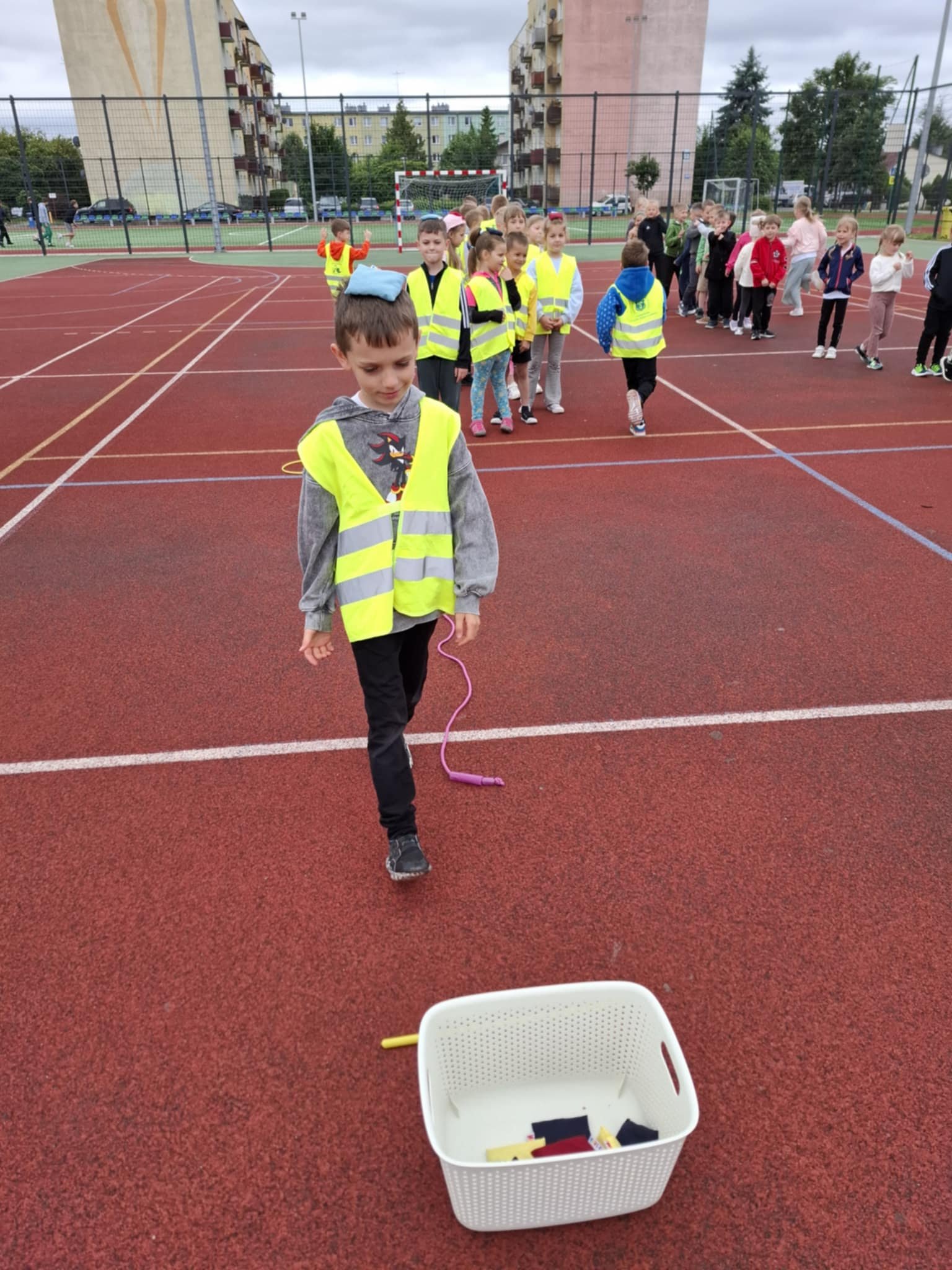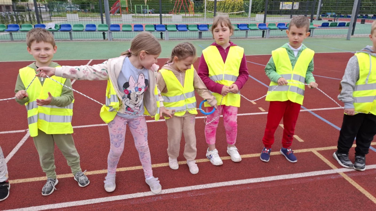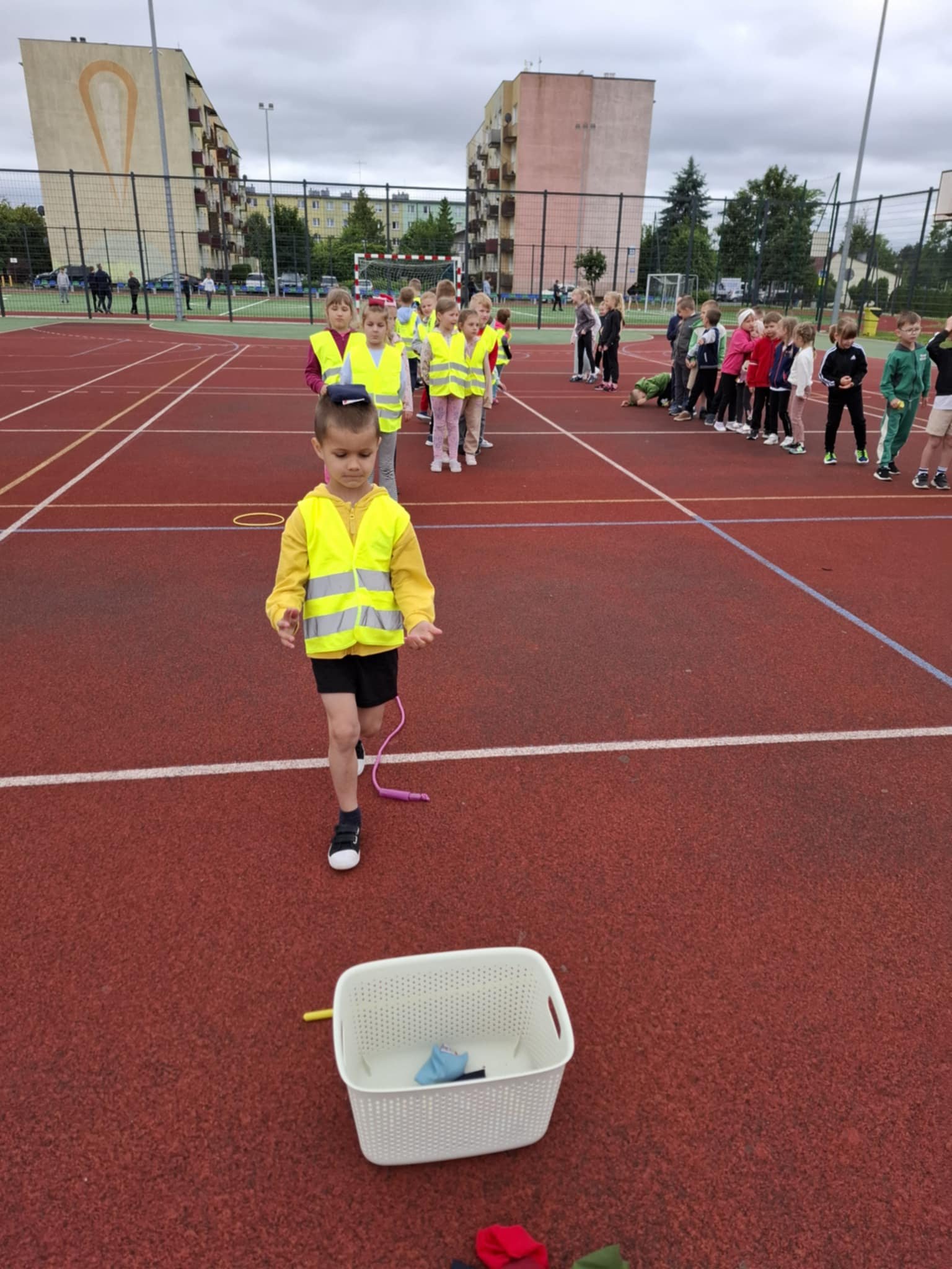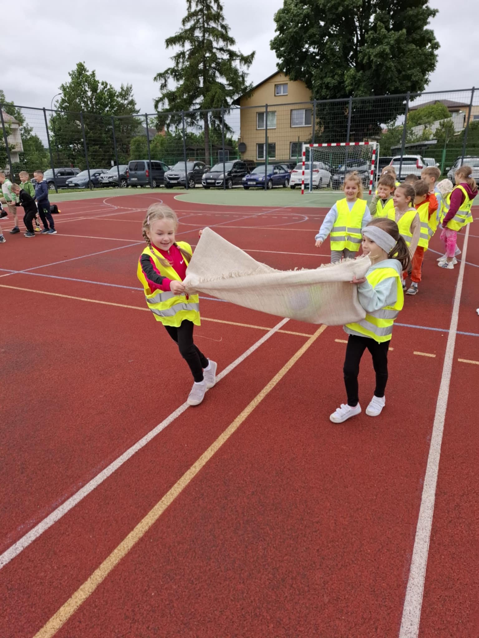 13.06.2025 r. odbyła się Spartakiada, w której udział wzięły dzieci z naszej zerówki oraz zerówki z Samorządowego Przedszkola nr 3. Spotkanie rozpoczęło się od wspólnej rozgrzewki, która wprowadziła uczestników w sportowy nastrój i przygotowała do kolejnych konkurencji sportowych. Na dzieci czekały różnorodne zadania m.in. przejście z woreczkiem na głowie, wyścigi slalomem, rzuty do celu, podawanie piłki górą, przekładanie kółka przez sznurek oraz przenoszenie piłki na materiale. Było mnóstwo zdrowej rywalizacji i świetnej zabawy.