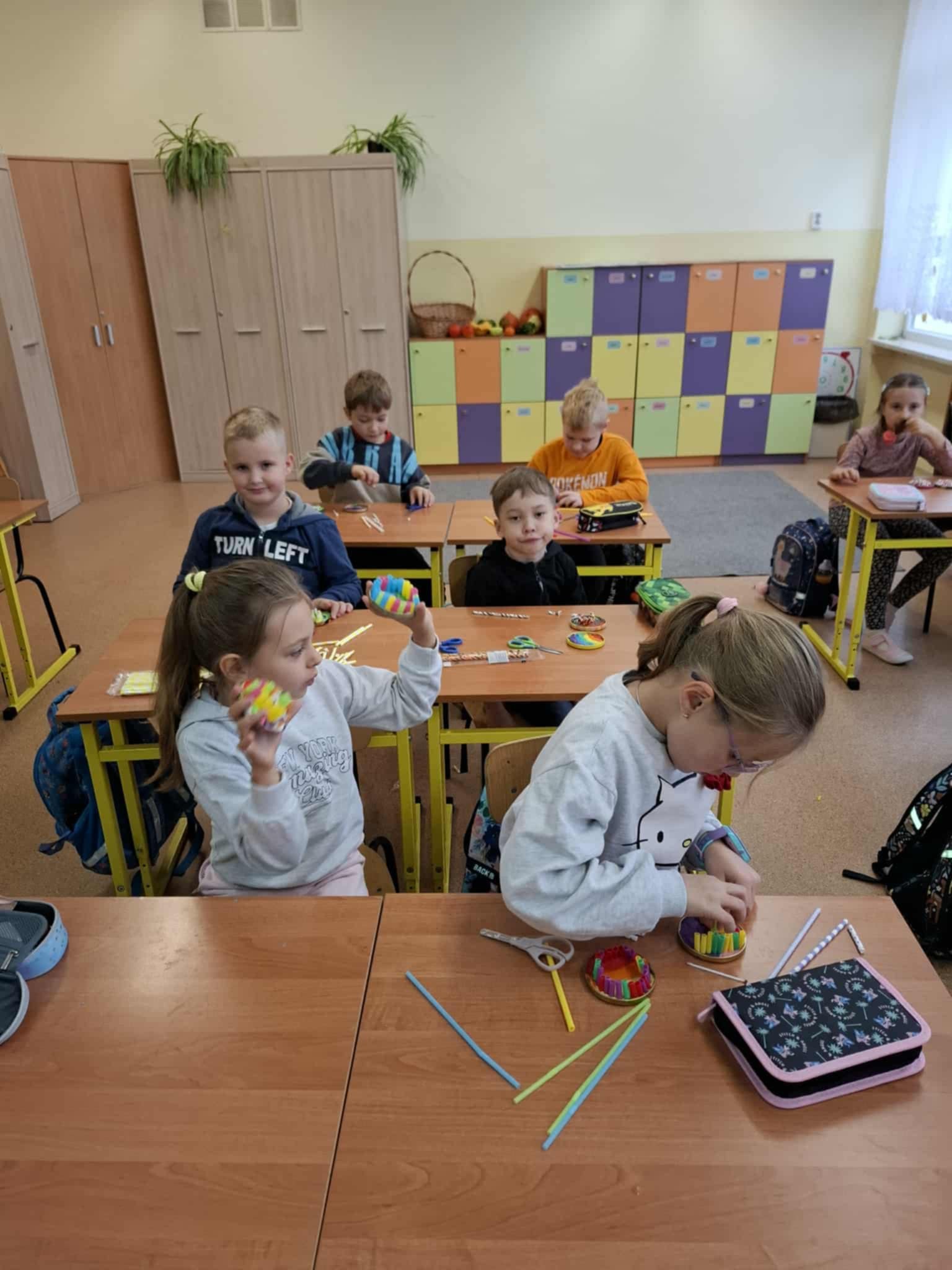Podczas zajęć uczniowie nie tylko ćwiczyli rozpoznawanie liter, ale także rozwijali małą motorykę, koordynację wzrokowo-ruchową oraz umiejętność skupienia uwagi. Zabawa z plasteliną i słomkami okazała się doskonałą formą aktywności sensorycznej, która sprzyja rozwojowi zdolności manualnych potrzebnych w nauce pisania.
