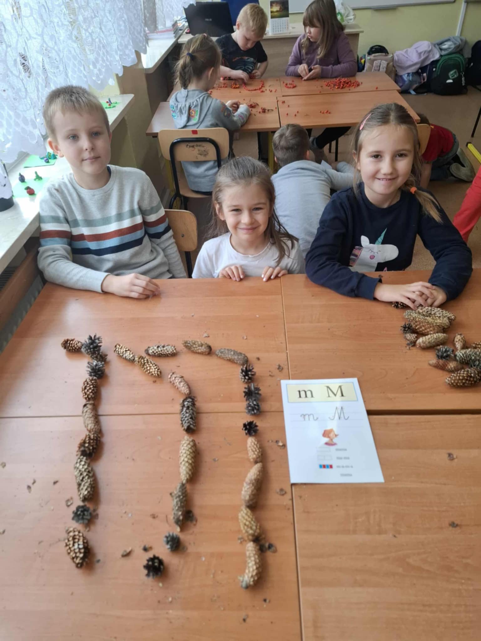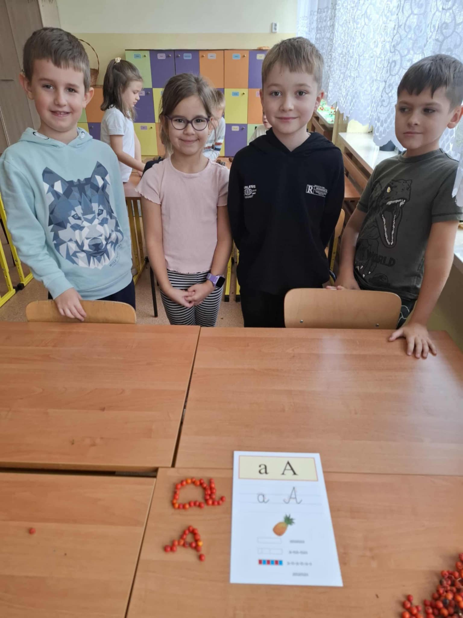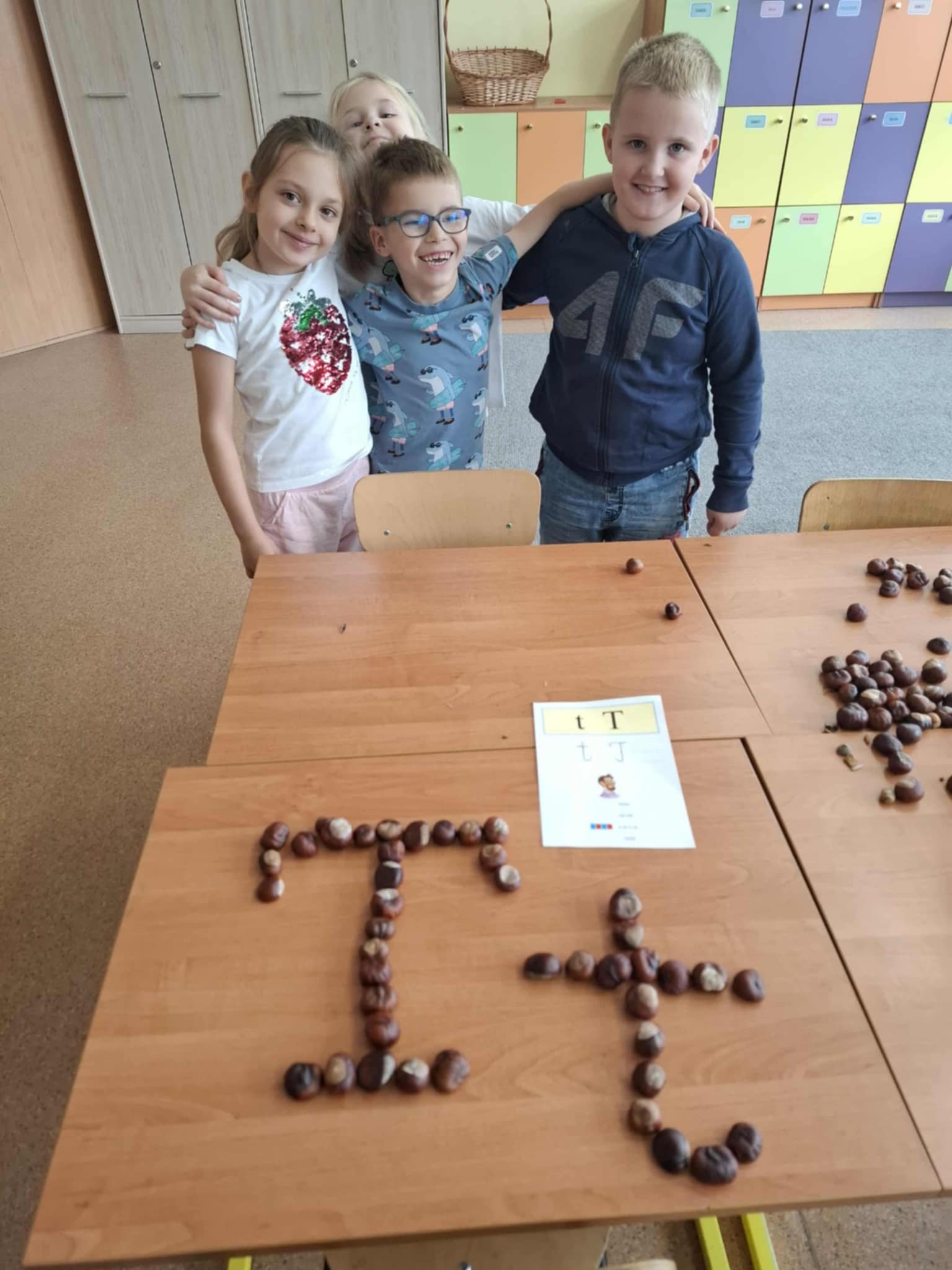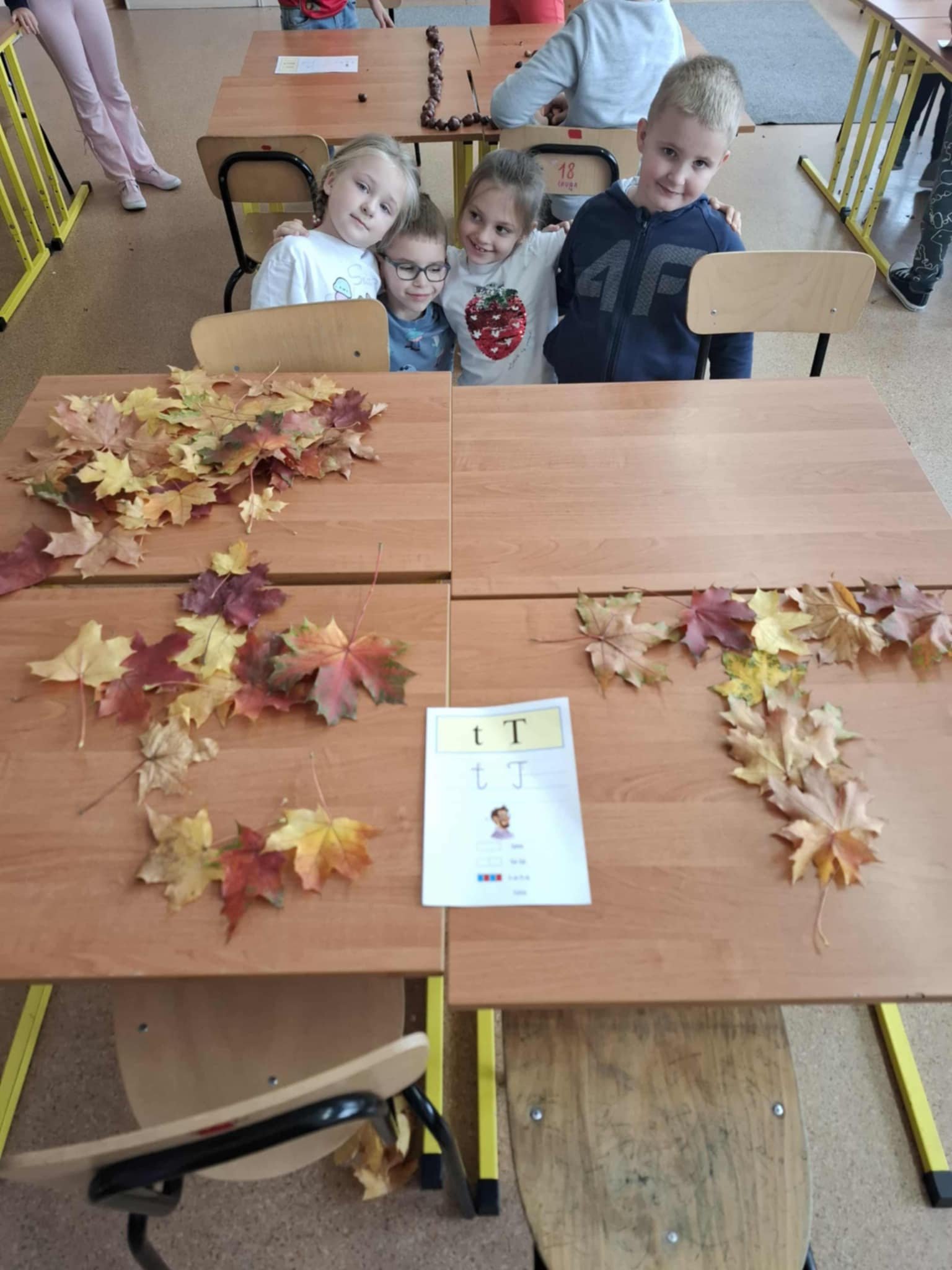 Uczniowie klasy 1a wzięli udział w kolejnym etapie międzynarodowego projektu edukacyjnego „LITERKI W AKCJI”. Tym razem zadanie było wyjątkowo kreatywne i pachniało jesienią! Pierwszaki miały za zadanie ułożyć poznane litery z darów jesieni – takich jak kasztany, żołędzie, liście, szyszki czy jarzębina. Dzieci z ogromnym zaangażowaniem przystąpiły do pracy, a sala lekcyjna zamieniła się w prawdziwą jesienną pracownię. Powstały przepiękne kompozycje literowe. Uczniowie mogli powtórzyć poznane litery, rozwijać swoją wyobraźnię oraz współpracować w grupach. Zadanie przyniosło wszystkim wiele radości i stało się świetną okazją do nauki przez zabawę.