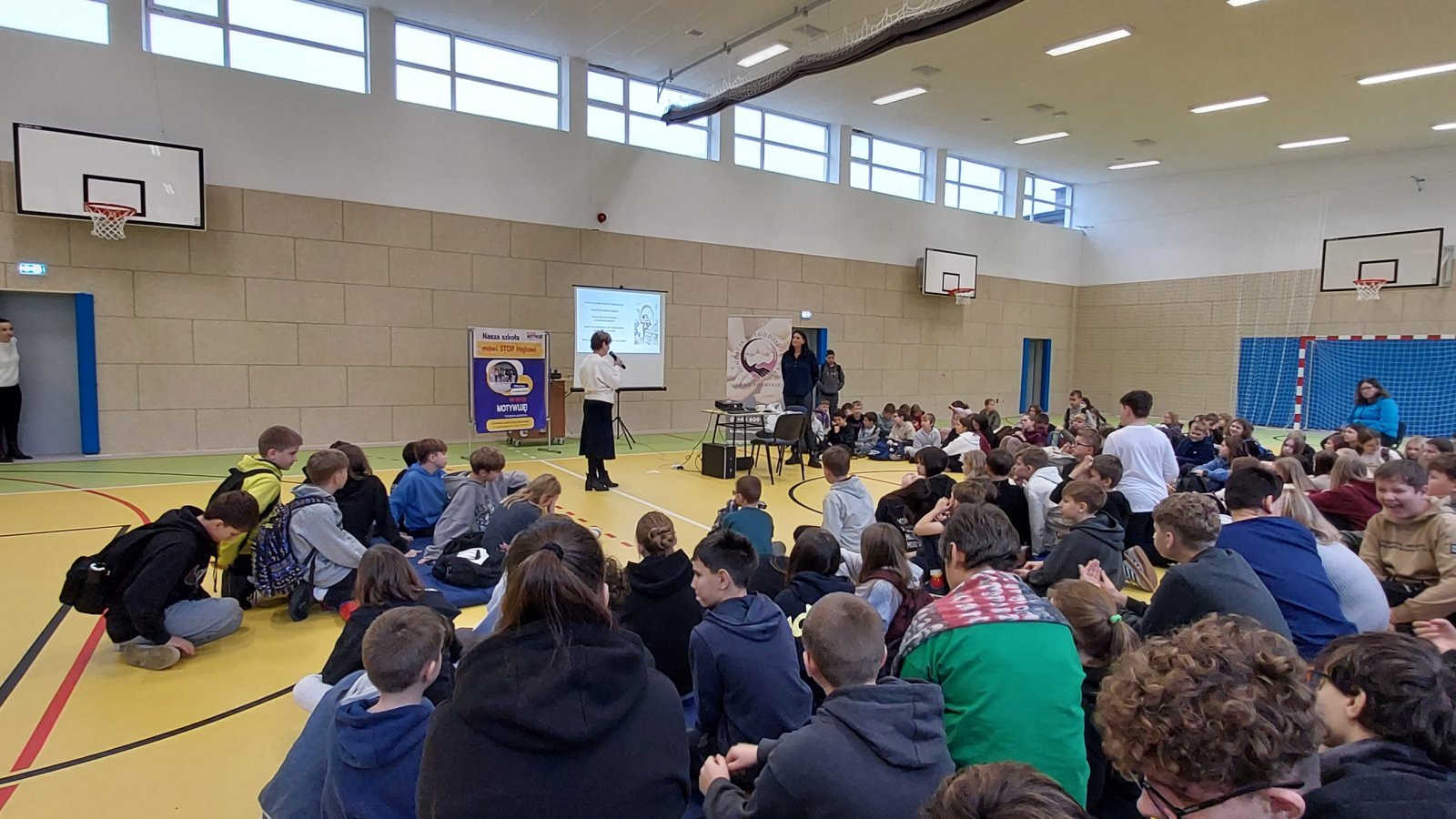 Warsztaty spotkały się z dużym zainteresowaniem uczniów. Pani Ilona od pierwszych minut przyciągnęła uwagę młodzieży, łącząc treści teoretyczne z osobistymi doświadczeniami. Dzięki temu uczestnicy mogli lepiej zrozumieć, jakie konsekwencje niesie za sobą agresja słowna oraz jak ważna jest odpowiedzialność za wypowiadane słowa. Spotkanie odbyło się w ramach ogólnopolskiej kampanii „Nie hejtuję – motywuję”, nad którą patronat honorowy objęli: Minister Edukacji Narodowej, Minister Sprawiedliwości oraz Rzecznik Praw Dziecka.