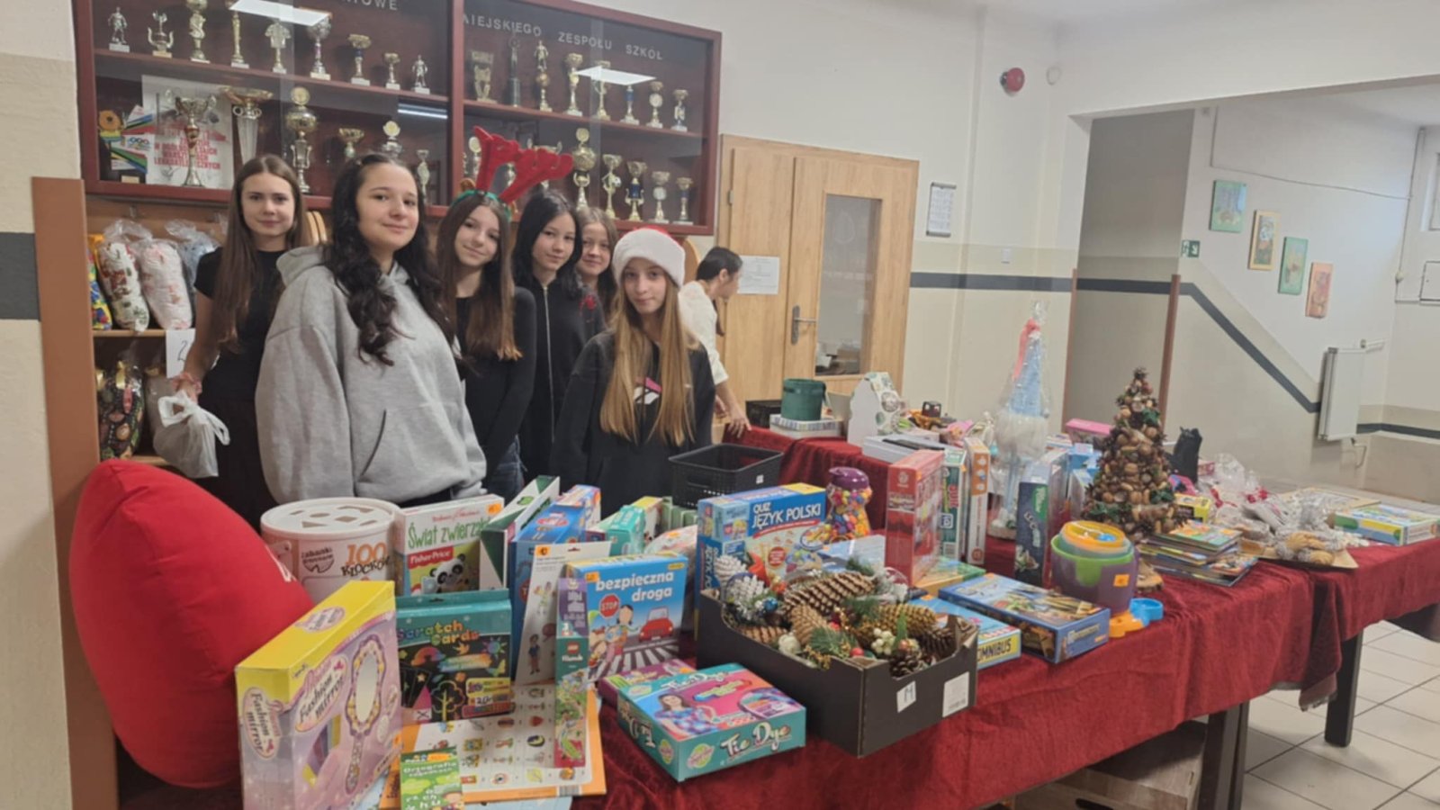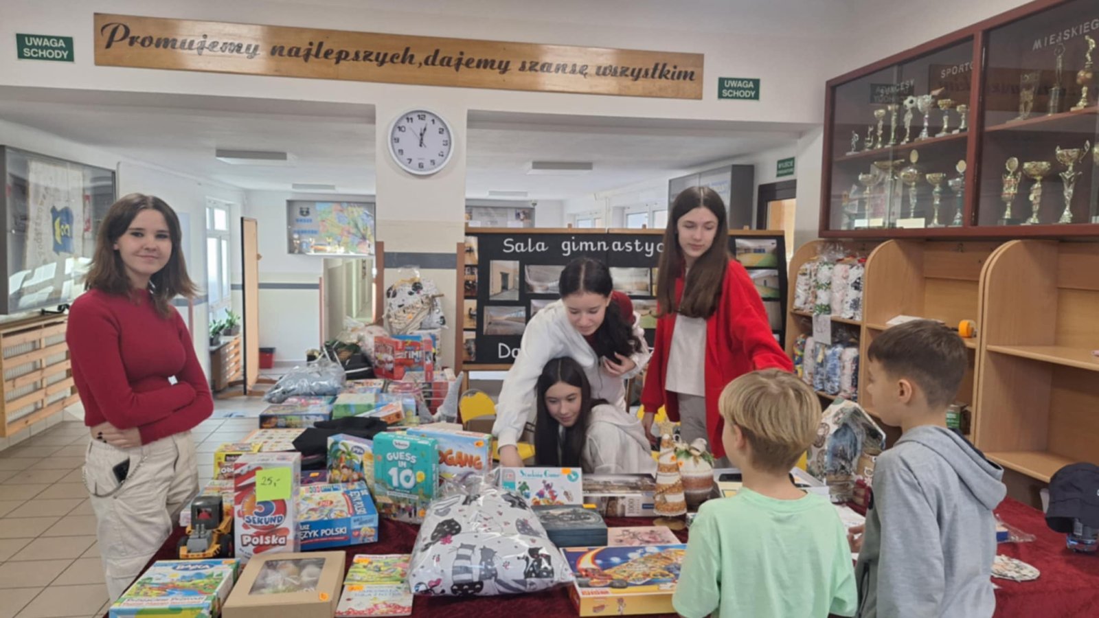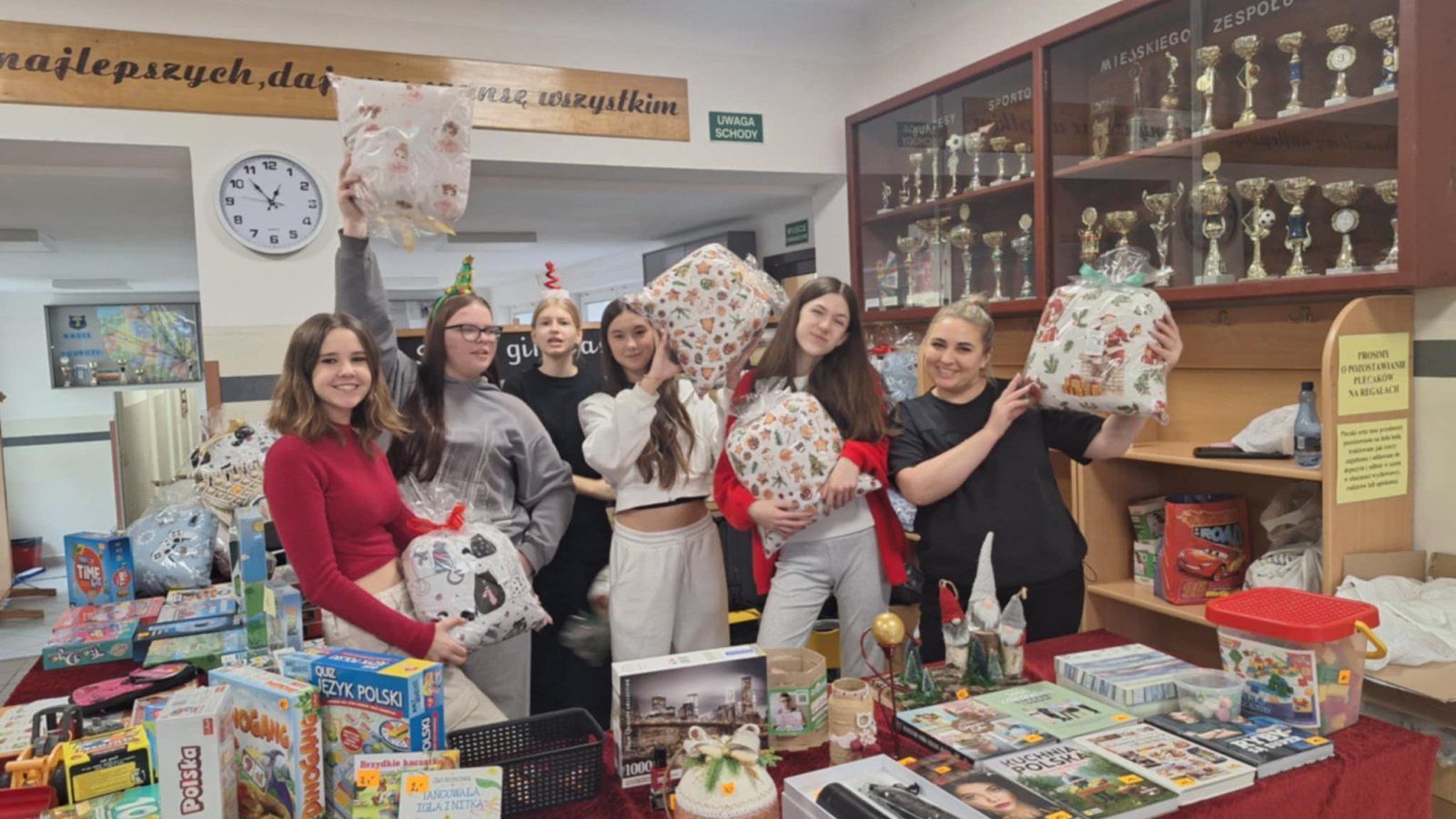 Z okazji Mikołajek w dniu 4 grudnia 2025r. nasza szkoła zorganizowała wyjątkową loterię fantową, której celem było wsparcie naszego ucznia Adama Iwanejko, który zmaga się z chorobą DMD (dystrofia mięśniowa Duchenne’a). Inicjatywę tę podjęła pani Sylwia Hankus, nauczycielka naszej szkoły, z wielkim sercem i zaangażowaniem. Panie Anna Łubiarz, Anna Pałubska oraz uczniowie klas 7b i 8b również aktywnie uczestniczyli w akcji. Loteria cieszyła się ogromnym zainteresowaniem wśród uczniów, nauczycieli i rodziców. Wspólne działania przyniosły nie tylko radość z możliwości wygrania fantów, ale przede wszystkim pokazały, jak wielka jest moc wspólnego dobra i solidarności. Udało się zebrać 8 215, 36 zł. Całkowity dochód z loterii zostanie przeznaczony na zbiórkę na leczenie Adama, który potrzebuje naszej pomocy i wsparcia w walce z chorobą.