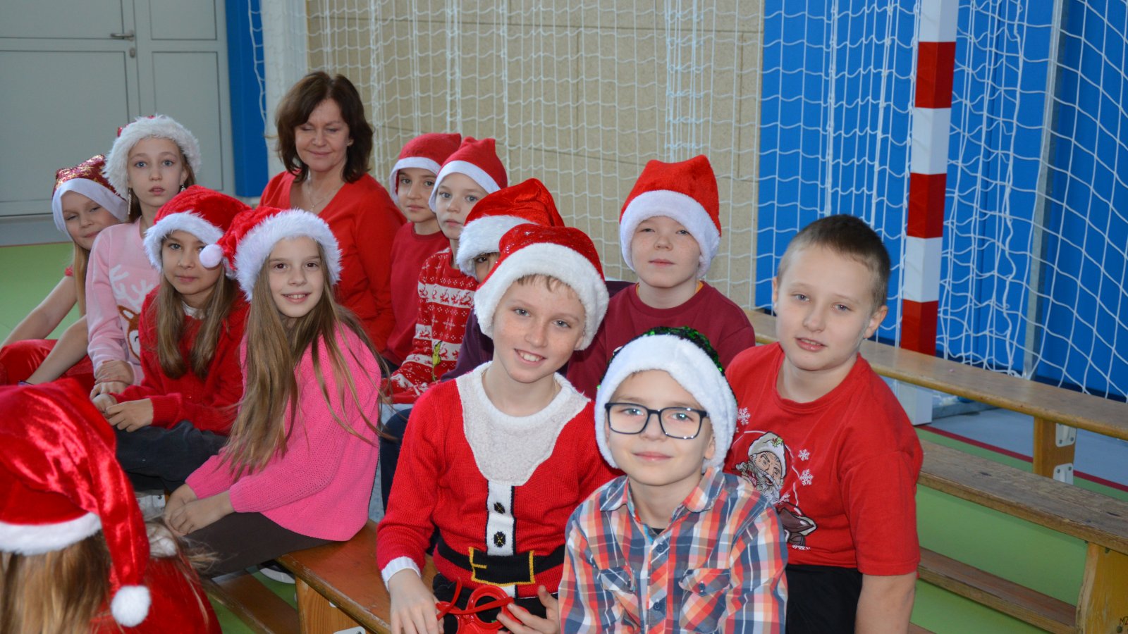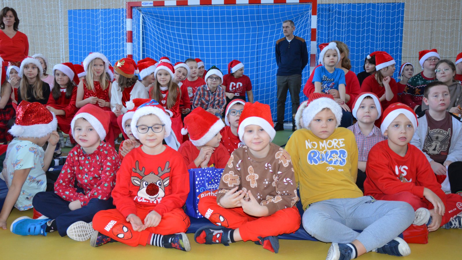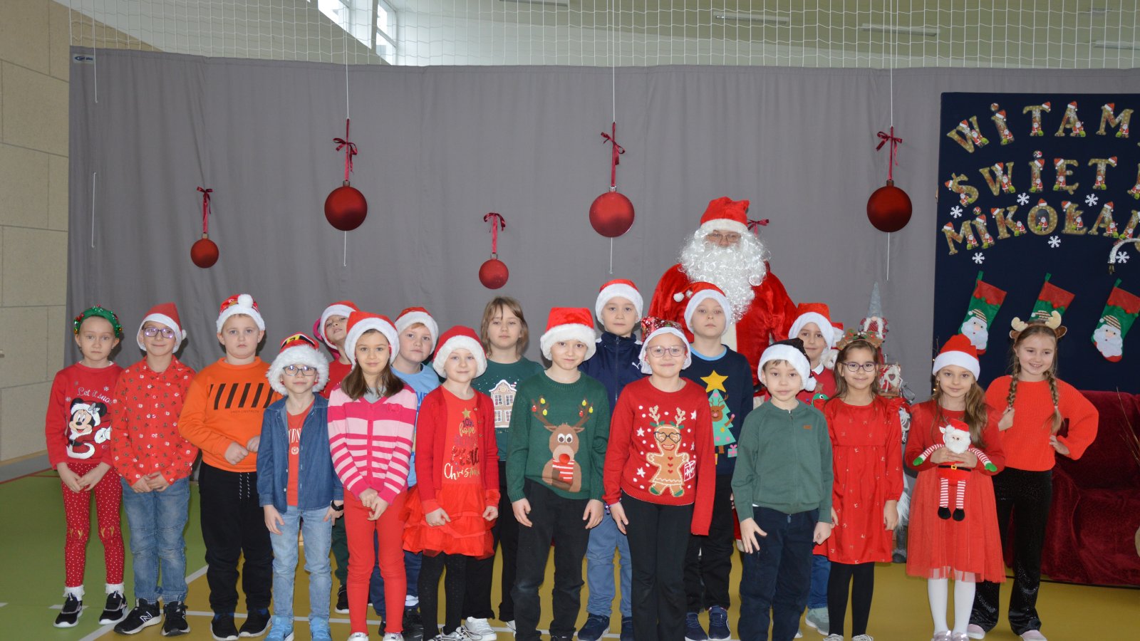 Święty Mikołaj spotkał się z uczniami najmłodszych klas, którzy z wielkim zaangażowaniem zaprezentowali przygotowane piosenki oraz wierszyki. Nie zabrakło również wspólnych, pamiątkowych zdjęć, które na długo pozostaną miłym wspomnieniem tego dnia. Najwięcej radości sprawiły oczywiście mikołajkowe upominki – wywołały one wiele emocji, śmiechu i szczerych uśmiechów. Wizyta św. Mikołaja była dla dzieci niezapomnianym przeżyciem i wprowadziła całą społeczność szkolną w świąteczny nastrój.