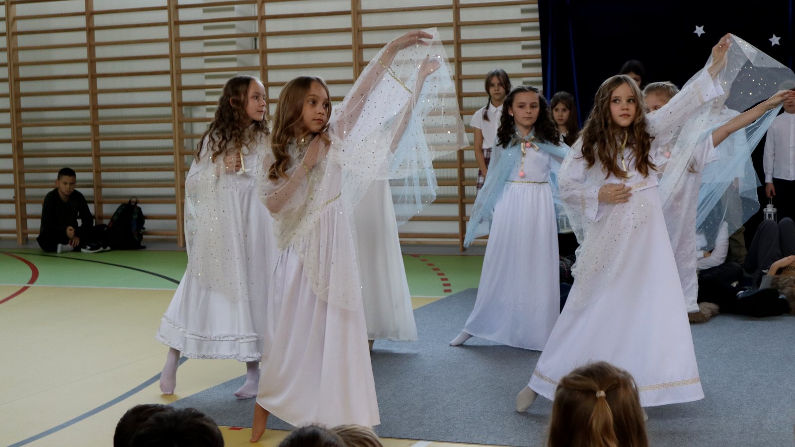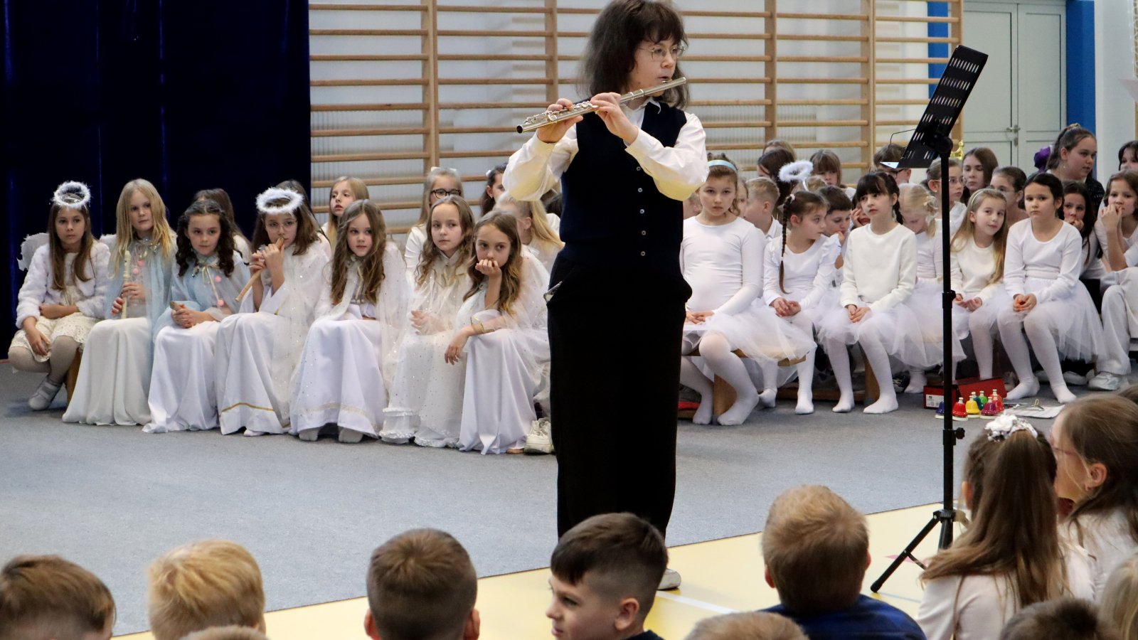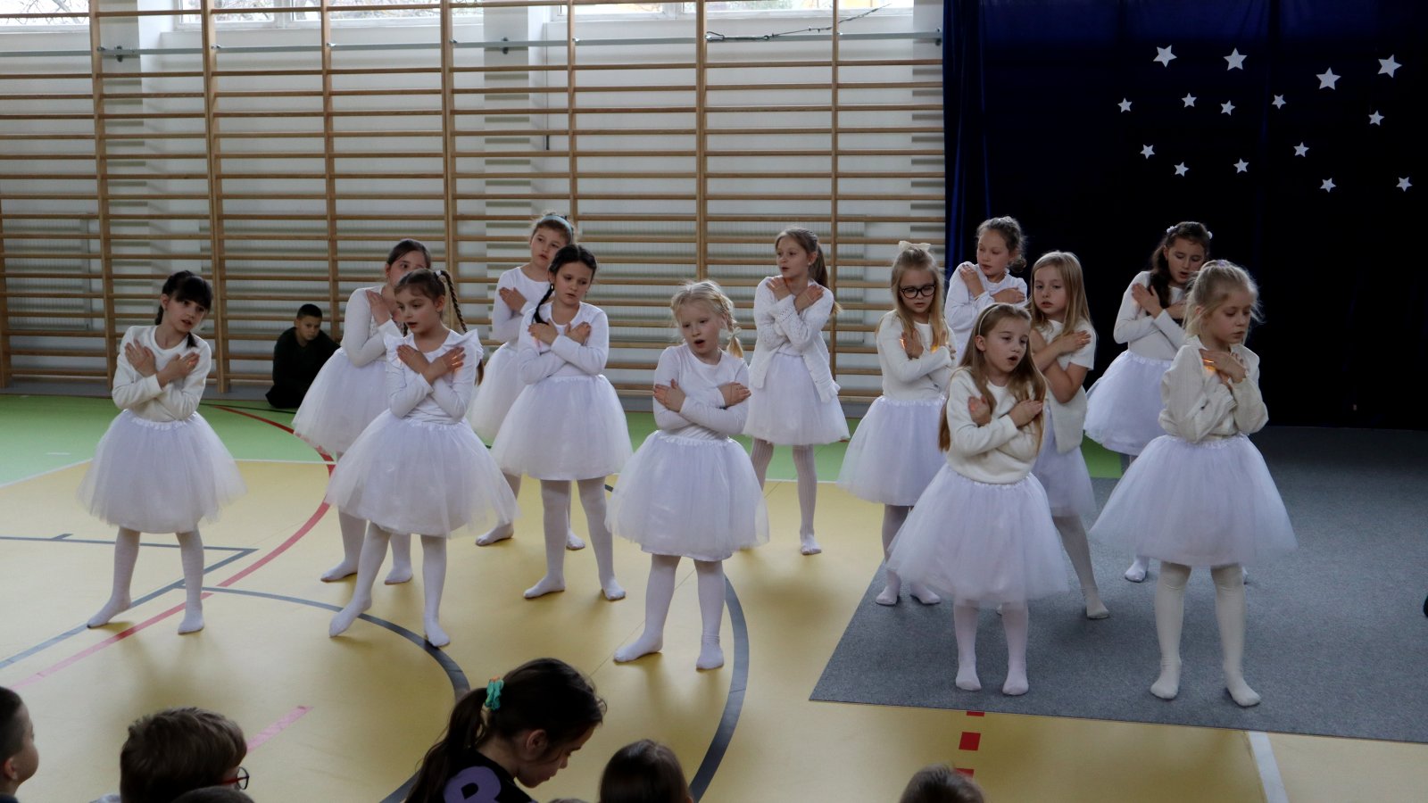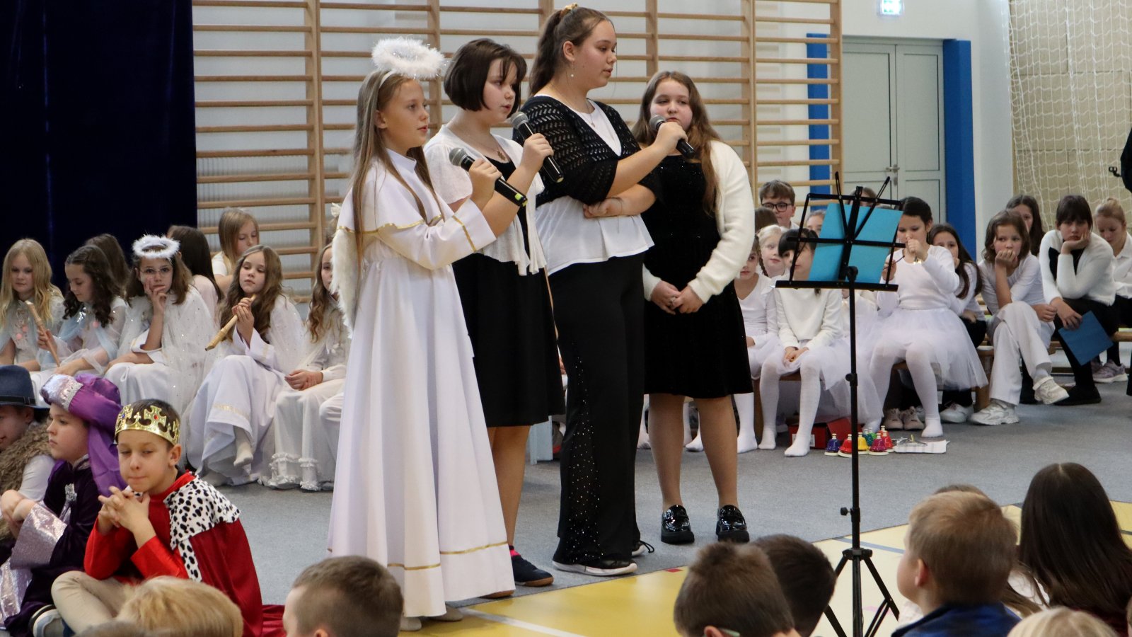 Uczniowie z wielkim zaangażowaniem zaprezentowali historię narodzin Jezusa, wcielając się w role Maryi, Józefa, pasterzy, aniołów oraz Trzech Króli. Przedstawienie zostało wzbogacone pięknymi kolędami i pastorałkami, które stworzyły podniosłą i ciepłą atmosferę. Starannie przygotowane stroje, dekoracje oraz oprawa muzyczna sprawiły, że występ na długo pozostanie w pamięci widzów. Jasełka były nie tylko artystycznym wydarzeniem, ale również okazją do wspólnego przeżywania wartości takich jak dobro, miłość, pokój i wzajemna życzliwość. Publiczność nagrodziła młodych artystów gromkimi brawami, doceniając ich trud, talent i odwagę sceniczną.