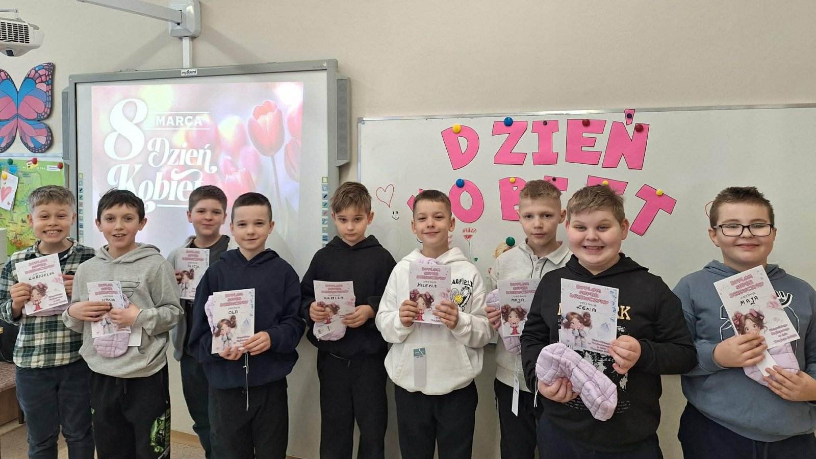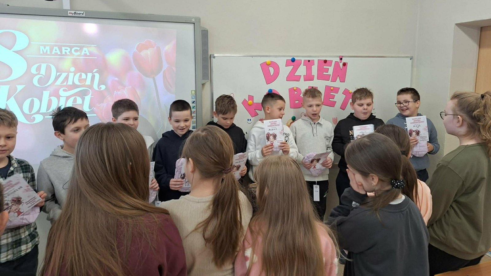 W naszej szkole Dzień Kobiet obchodzony był w bardzo miłej i radosnej atmosferze. Uczniowie zadbali o to, aby wszystkie dziewczynki poczuły się wyjątkowo. Chłopcy z klas 2a i 3a przygotowali dla swoich koleżanek drobne upominki, a także specjalne dyplomy i miłe niespodzianki. Każda dziewczynka została wyróżniona, obdarowana uśmiechem oraz serdecznymi życzeniami.